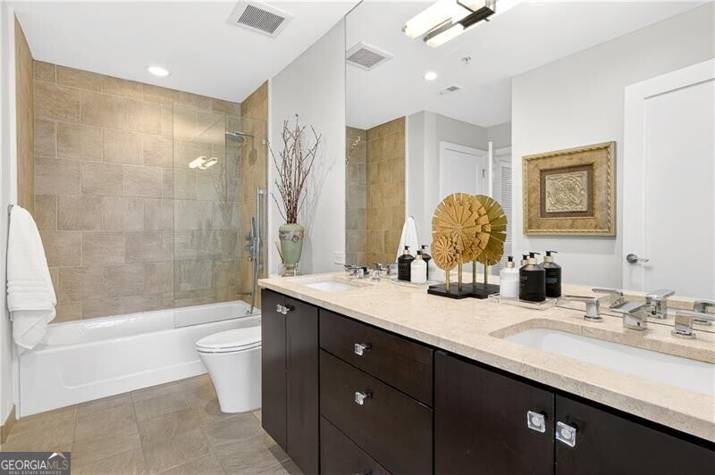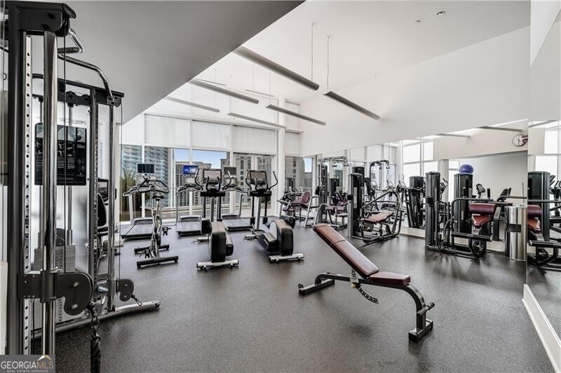 Why spend your life in Atlanta traffic when you could already be home? Welcome to Unit #1710 at 10 Terminus, where "Live-Work-Play" isn't just a buzzword-it's a daily reality. Imagine waking up to floor-to-ceiling skyline views, grabbing coffee downstairs, and having the world's best dining, shopping, and essentials literally at your doorstep. This oversized one-bedroom, 930 sq. ft. floor plan is a masterclass in high-rise luxury, featuring fresh paint and stunning, low-maintenance porcelain tile flooring with a hardwood aesthetic throughout. The chef's kitchen is a true showstopper, with a professional-grade Wolf gas range and oven, a Sub-Zero refrigerator, a Bosch dishwasher, and a microwave drawer, all complemented by a massive island and solid surface counters. Experience the lifestyle you've worked for with a fully integrated Bluetooth Alexa smart-home setup and a primary suite that features a custom California Closet, double vanity, and a private covered balcony perfect for watching the Buckhead lights flicker on. 10 Terminus offers an unmatched amenity package on the 14th floor, featuring a saltwater pool, jacuzzi, a professional gym, fire pit seating, rec room, and a clubroom with a caterer's kitchen and grilling stations. Residents also enjoy a movie sitting area, dog walk, massage room, package room, and two oversized guest suites for your visitors. With 24/7 concierge, full-time management, secured deeded parking, and VALET services, every detail is handled. The HOA includes ALL THESE AMAZING AMENITIES INCLUDING Gas, Internet, and Upgraded Cable, making this the ultimate location for everything-literally either in the building or very close. Enjoy being steps away from so much, to name a few, Industry Tavern, The Bank Bar, Bistro Niko, Burton's, Whole Foods, the world's best shopping at Buckhead Village. With a Publix, concierge doctor, dentist offices and more literally across the street, everything you need is right down the street.
