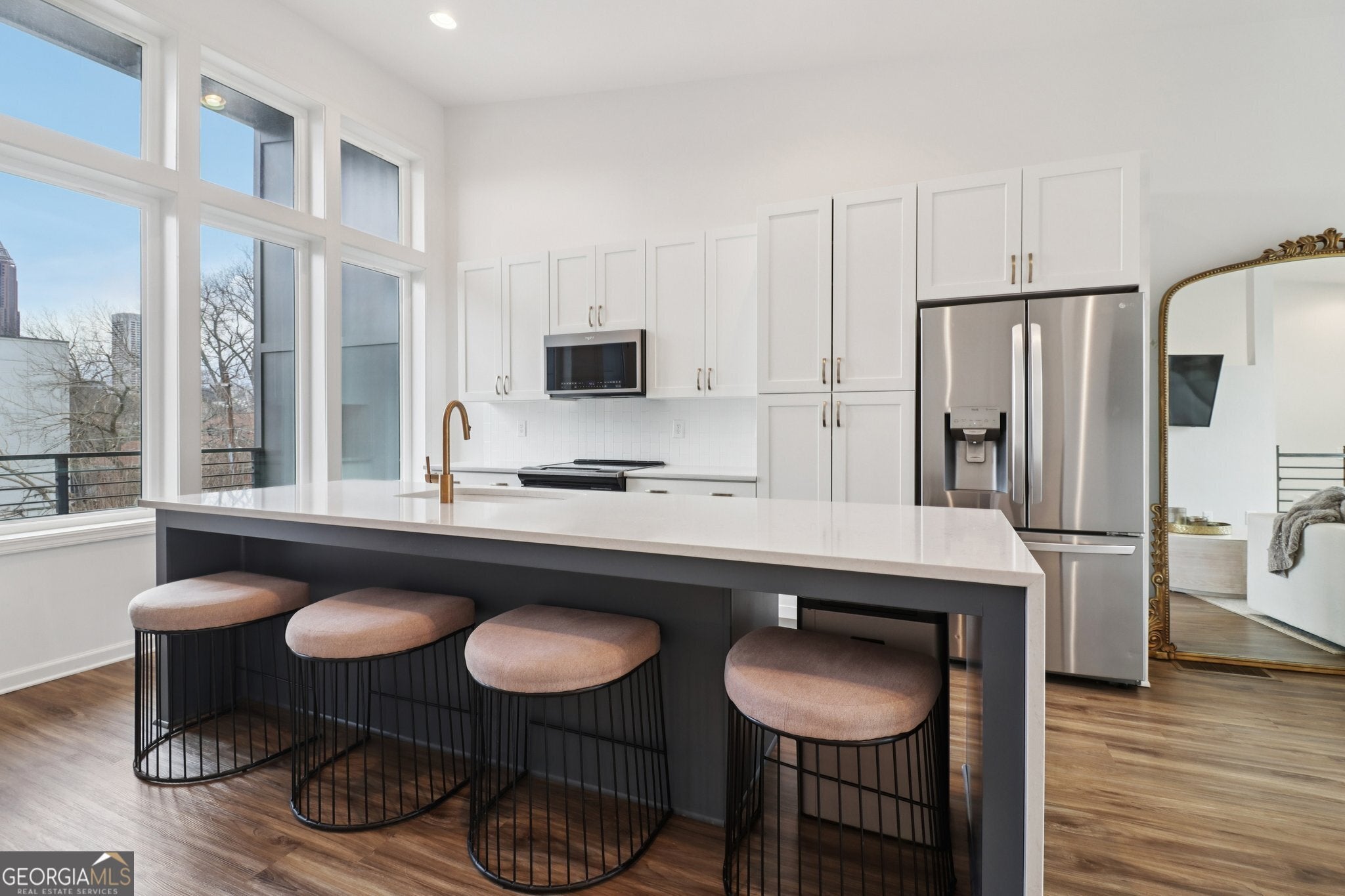 Refined city living in the heart of Old Fourth Ward. Perfectly positioned near the Atlanta BeltLine, Piedmont Park, and Ponce City Market, this exceptional townhome offers the perfect blend of walkable urban convenience and modern sophistication. Originally designed as the model home, it showcases curated upgrades, expansive windows filled with natural light, and a sleek contemporary aesthetic throughout. The open-concept main level flows seamlessly into a chef-inspired kitchen featuring an OVERSIZED QUARTZ ISLAND, high-end stainless appliances, and abundant cabinetry. Just off the kitchen, a spacious COVERED BALCONY provides a rare private retreat with city views framed by greenery. Two generously sized bedroom suites each offer well-appointed en-suite baths. NO CARPET ANYWHERE delivers clean, low-maintenance living, and the dedicated LAUNDRY ROOM is thoughtfully tucked behind stylish barn doors. An OVERSIZED GARAGE offers exceptional flexibility for a home gym, storage, or future customization. This is elevated intown living at its finest.