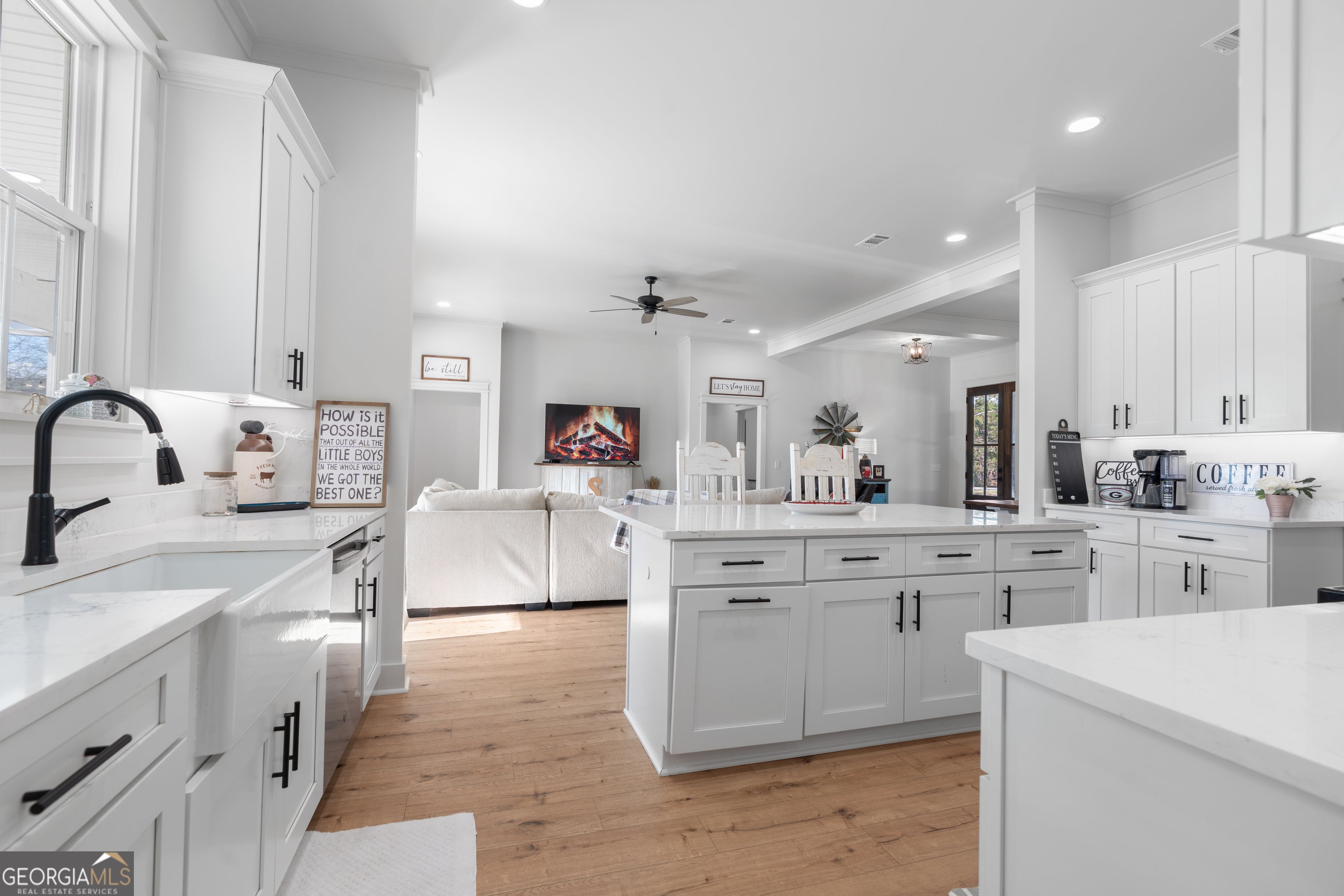 Modern Farmhouse Style Charm on 1.6 Acres in Pierce County. Welcome to this stunning modern farmhouse situated on 1.6 beautifully open acres in the heart of Pierce County. With timeless white board-and-batten siding, brick accents, and a welcoming front porch framed by rich wood columns, this home offers curb appeal that immediately impresses. Located Golf Cart riding distance to Lakeview Golf Course. Step inside to an airy, open-concept floor plan featuring wide plank hardwood flooring, soft neutral tones, and abundant natural light throughout. The spacious living area flows seamlessly into the gourmet kitchen, complete with quartz countertops, custom shaker cabinetry, oversized island, farmhouse sink, stainless steel appliances, walk-in pantry, and stylish black hardware that creates a clean, modern finish. The Master is a private with tray ceilings, large windows overlooking the property, and a spa-inspired bath featuring dual vanities, sleek fixtures, and elegant finishes. Enjoy peaceful mornings and relaxing evenings on the covered Front of back porch, perfect for entertaining or simply soaking in the quiet surroundings. With 1.6 acres, there's plenty of room to add a pool, workshop, garden, or outdoor living space of your dreams. This home offers the perfect blend of modern comfort and country charm - all just minutes from town. 4005 Golfview Dr, Blackshear, GA 1.6 Acres Schedule a showing with your favorite agent today! Seller is a license real estate broker.