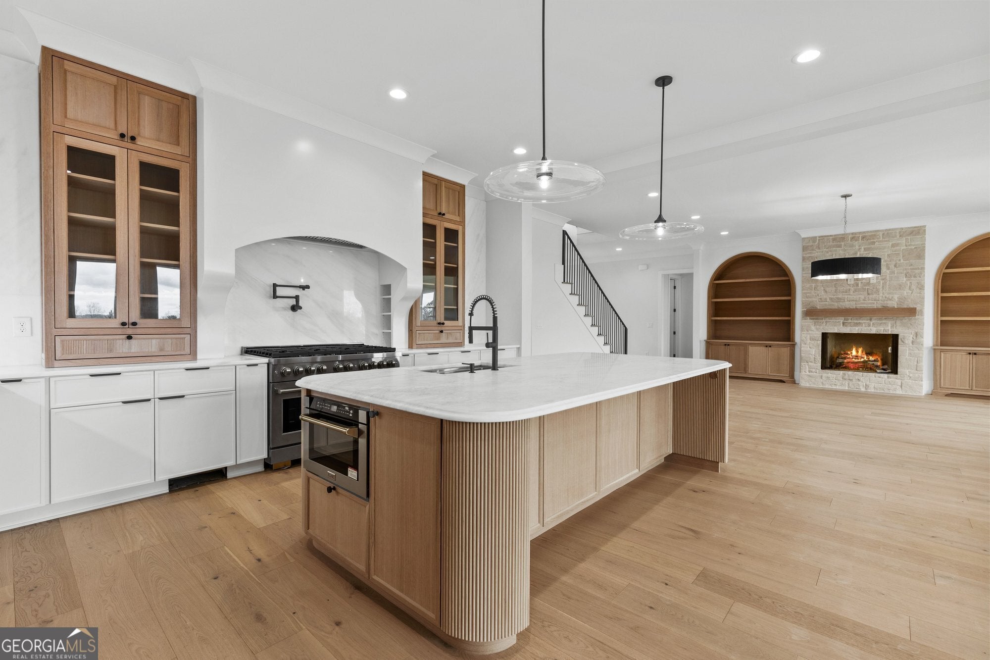 Brand new 7500 square foot estate home with in the City of Buford. A stunning covered front porch and custom glass entry door welcome you into an elegant interior with over 5100 square feet of finished space. As you step inside, you'll find the private study and a separate formal dining room - ideal for everyday living and entertaining. The open-concept chef's kitchen is a showstopper, complete with a large gas range, abundant cabinetry, beautiful countertops, and a statement custom hood. Real Taj Mahal stone on all counters throughout. 48" SS Fridge included. A secondary kitchen offers additional space for appliances, prep, and storage, making hosting effortless. The adjoining breakfast room and living room flow seamlessly into the large sunroom overlooking the serene backyard. Step outside to the covered rear porch, perfect for relaxing year-round. The main level owner's suite features a spa-inspired bathroom with a massive walk-through shower, luxurious soaking bath and an expansive closet with space for a washer and dryer. Upstairs, a second owner's retreat offers a private en-suite with a frameless shower, soaking tub, dual vanities, and a walk-in closet with a dedicated makeup vanity. Three additional generously sized bedrooms each include a private full bathroom and a walk-in closet with custom shelving. A large media room with fireplace and a second oversized laundry room add exceptional convenience and functionality. Additional highlights include a full, unfinished 12 foot basement, stubbed for a pool bathroom and ready for over 2300 sq ft of customization. A spacious 3-car garage offers ample room for vehicles and storage. The residence boasts a fully enclosed front yard, offering privacy and timeless curb appeal. Ideally located minutes from premier shopping, dining, parks, major interstates and top-rated Buford City schools, this home seamlessly blends modern luxury with everyday convenience.