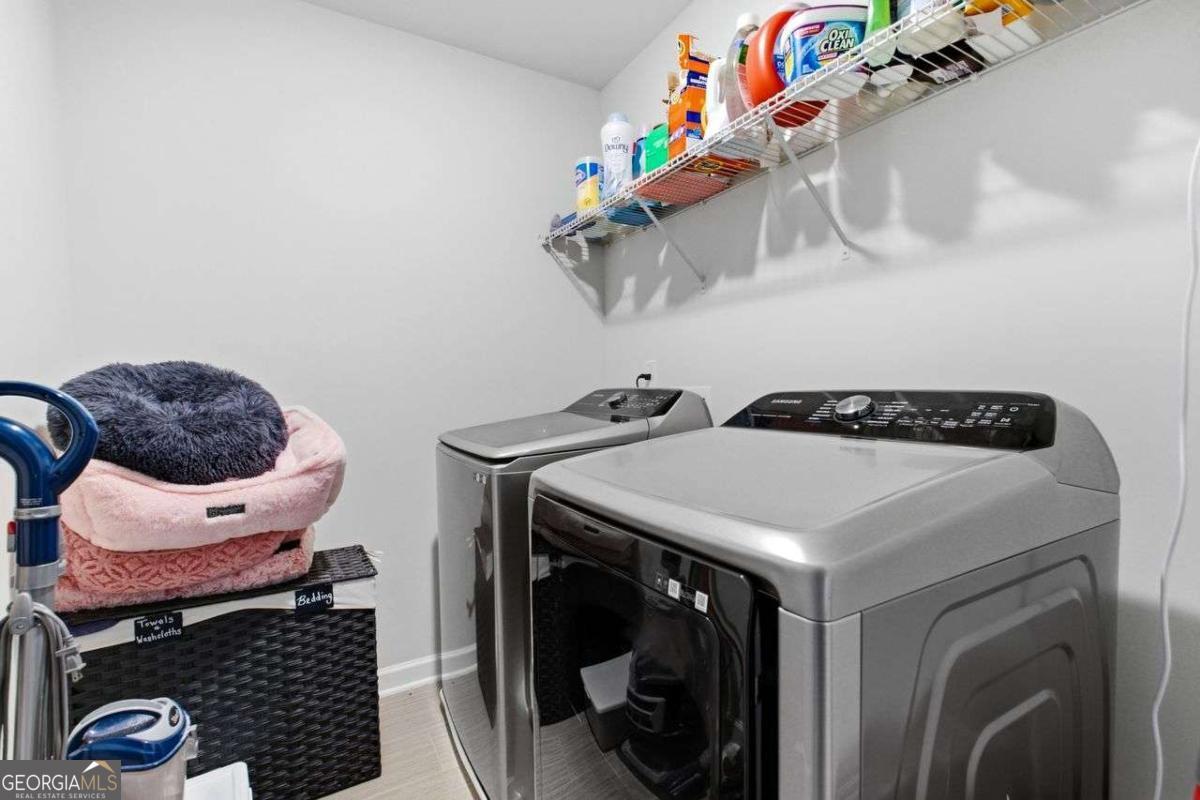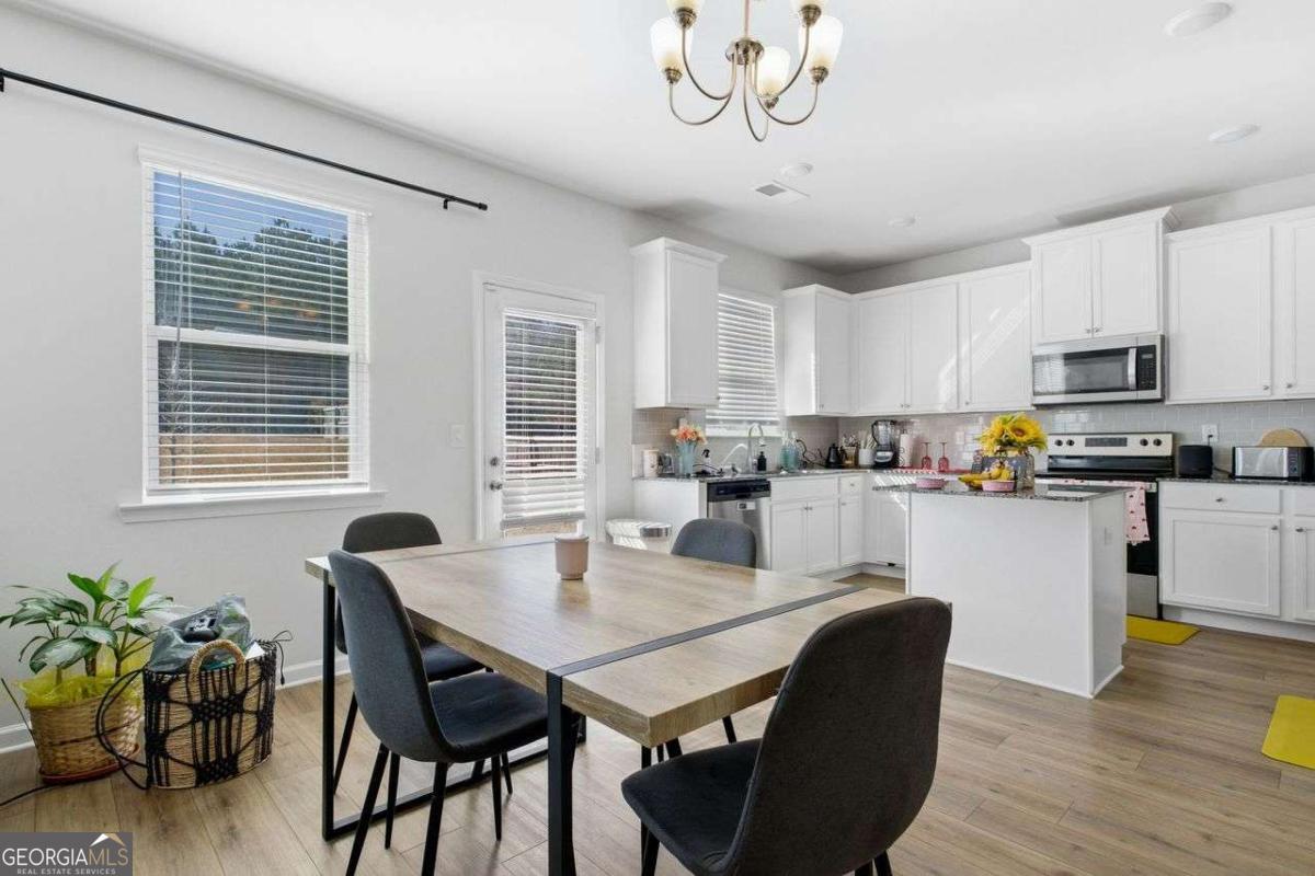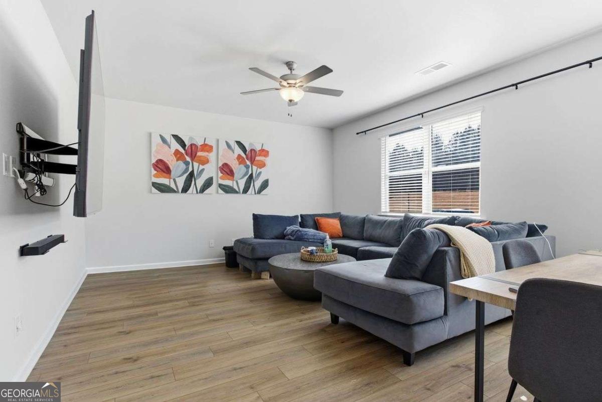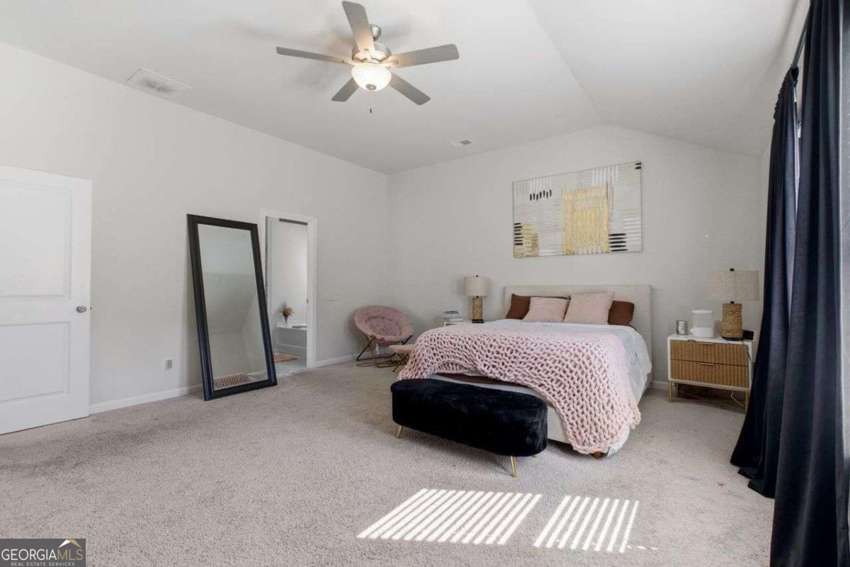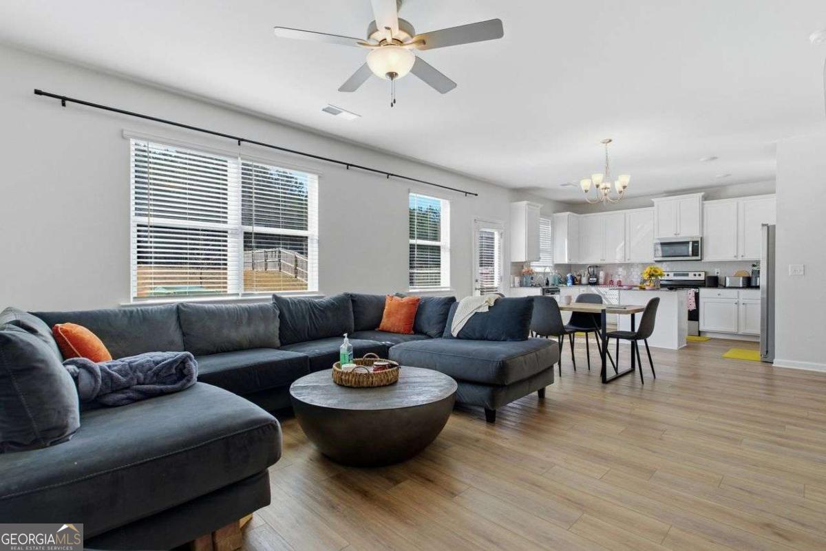 Built in 2022 and meticulously maintained, this exceptional 3-bedroom, 2.5-bath home in the established Tell River community offers the perfect blend of modern design, smart functionality, and true move-in-ready convenience. Located in Southwest Atlanta (30331), Tell River is known for its spacious homesites, attractive curb appeal, and outstanding value - all while offering quick access to I-285, Camp Creek Parkway, Downtown, Midtown, Buckhead, and Hartsfield-Jackson Atlanta International Airport. Inside, you'll find 1,814 square feet of thoughtfully designed living space featuring durable luxury vinyl plank flooring, 9-foot ceilings on the main level, a dramatic two-story foyer, and elegant coffered and tray ceilings. The open-concept layout is ideal for both everyday living and entertaining. The kitchen is a true centerpiece, showcasing granite countertops, stainless steel appliances, 42-inch white cabinets with crown molding, a large island, solid surface counters, and an expansive walk-in pantry - all overlooking the family room for seamless flow. Upstairs, the oversized owner's suite offers a relaxing retreat with vaulted ceilings and a spa-inspired bath complete with double vanities, a soaking tub, and a separate shower. Two generously sized secondary bedrooms provide flexible space for guests, a home office, or family needs. A spacious upper-level laundry room adds everyday convenience. Additional highlights include smart home features, walk-in closets, double-pane insulated windows with shutters, zoned electric heat pump HVAC, and a side-entry two-car garage with automatic opener that is pre-wired for an electric vehicle charging station - a forward-thinking upgrade for modern living. Situated on a private, level 0.31-acre wooded lot, the backyard offers peaceful tree-lined views and a patio perfect for relaxing or entertaining. Residents also enjoy nearby shopping and dining along the Camp Creek corridor, plus outdoor recreation at Ben Hill Park, Deerwood Park, and Cascade Springs Nature Preserve. This home delivers newer construction, generous space, strong community appeal, and a highly connected Southwest Atlanta location - offering comfort, convenience, and long-term value all in one.