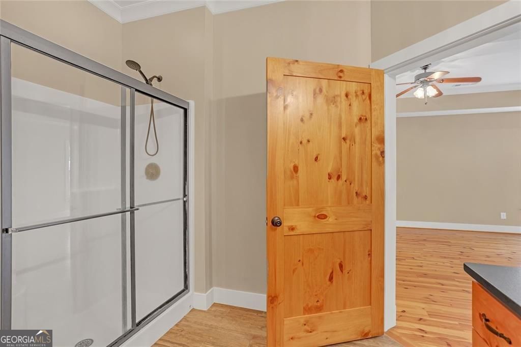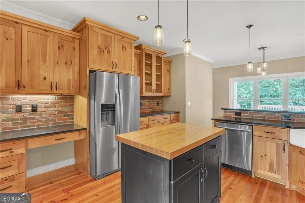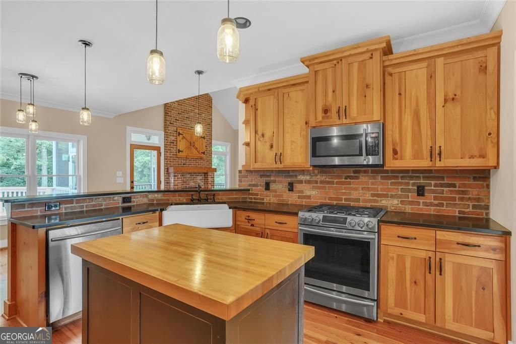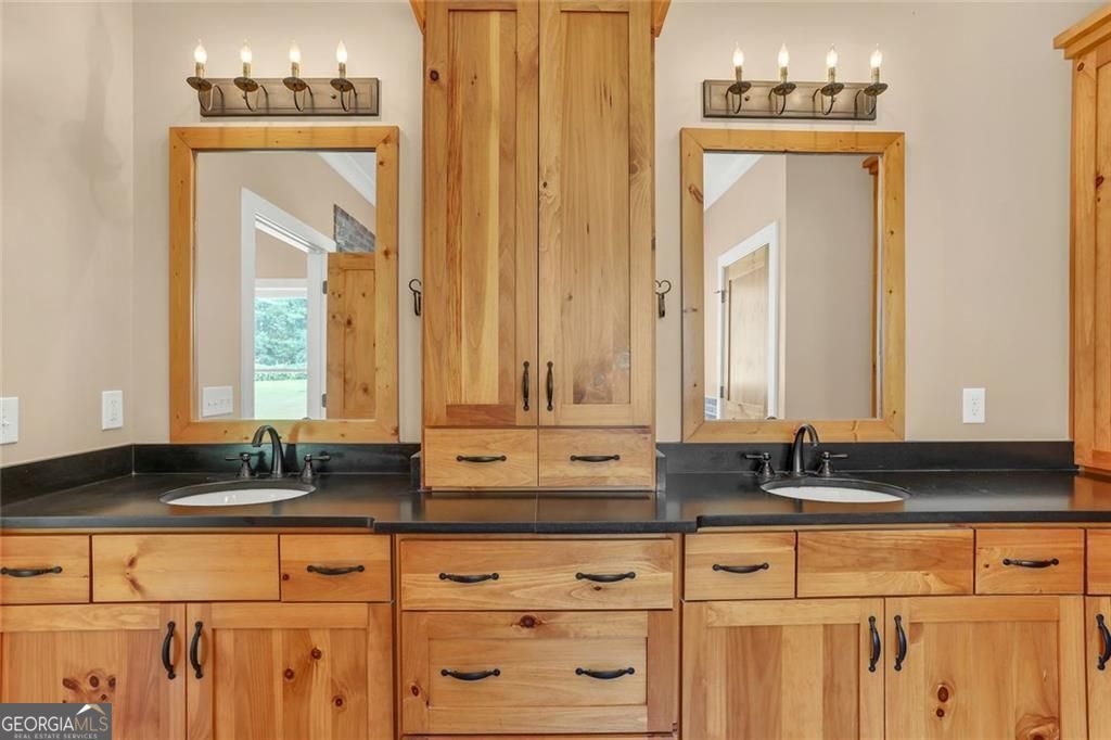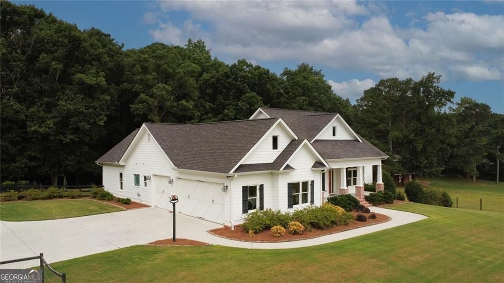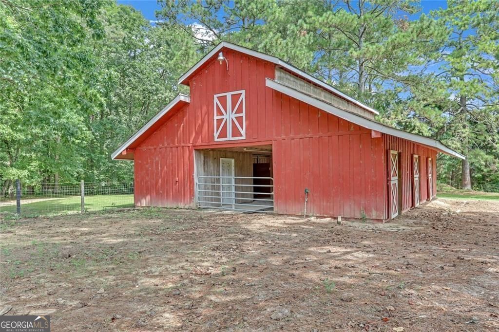 Escape the city to your own private, 10-acre farmhouse estate, where timeless craftsmanship meets modern luxury. Located just a short drive from Atlanta in desirable Loganville, this property offers the perfect balance of serene country living and convenient city access. From the moment you arrive through the gated entrance, past the front fenced pasture to the rocking-chair front porch, this home Welcomes you into a home where every detail is custom. Gorgeous pine floors flow throughout the main level, complemented by oversized solid pine doors and custom cabinetry. The vaulted family room, with its stunning floor-to-ceiling brick fireplace, serves as the heart of the home, offering a warm space for family and guests. The gourmet kitchen is an entertainer's dream, featuring exquisite Black Hone Granite countertops, a classic farmhouse sink, a walk-in pantry, and a sunlit breakfast area. Host holidays in the formal dining room or enjoy morning coffee on the expansive back deck, which includes both open and screened-in portions overlooking your private, fenced backyard. This versatile floor plan includes a luxurious main-level primary suite and a second complete owner's suite in the fully finished terrace level-ideal for multi-generational living or distinguished guests. The basement also features a recreation room, theater, and a separate workshop. For the equestrian or hobby farmer, this property is turn-key. A well-maintained barn includes stalls, a tack room, a chicken coop, and a covered parking area. A dedicated drilled well supports all your outdoor needs. This is more than a home; it is a lifestyle ready to be enjoyed. Schedule your visit today!