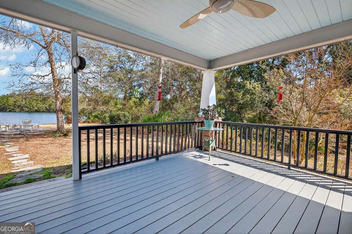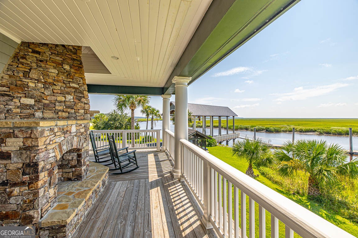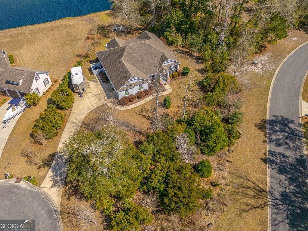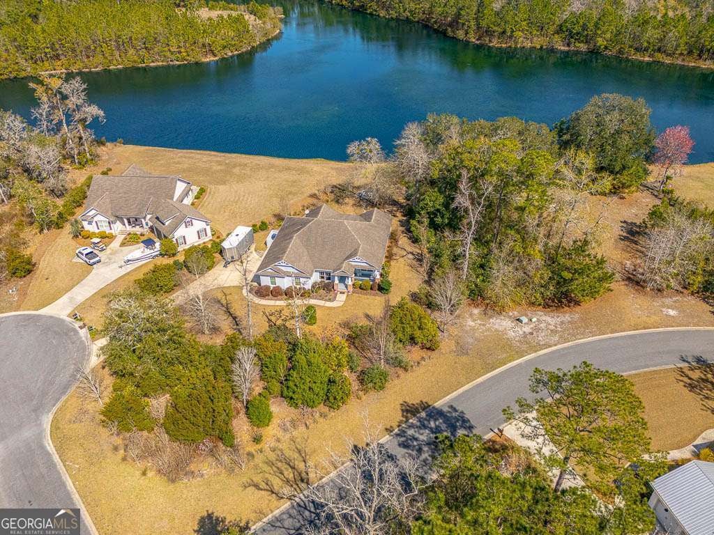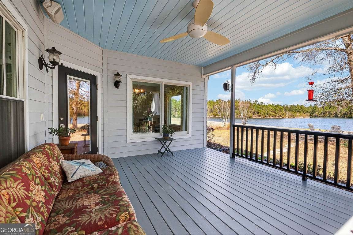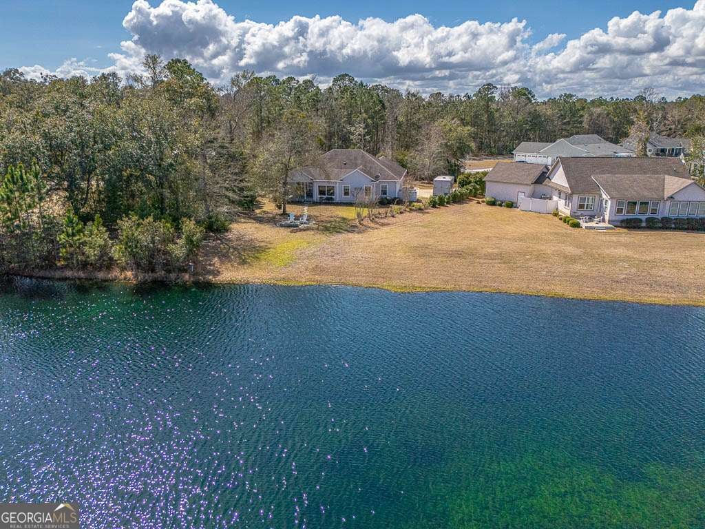 Welcome to private lakefront living in the gated waterfront community of Maiden Creek. This custom built residence is positioned on just over half an acre. Beautifully designed 3-bedroom, 2-bath home offers peaceful water views from nearly every main living space and exceptional privacy. The coastal craftsman exterior welcomes you with classic front porch charm and manicured landscaping. Inside, soaring tray ceilings with cove lighting, extensive crown molding, and wide plank luxury vinyl flooring create a refined yet comfortable atmosphere throughout the open-concept design. The living area features an electric fireplace and is framed by oversized windows that capture stunning lake views. The kitchen is both functional and stylish, offering a gas range, stainless appliances, custom cabinetry, pantry, solid surface countertops, wood-topped island with bar seating, decorative mosaic tile backsplash, and built-in wine storage. The primary suite overlooks the water and features a dramatic tray ceiling and direct access to the laundry room for added convenience. The spa-inspired bath includes a soaking tub with jets, walk-in tiled shower with glass enclosure, marble finishes, and elegant detailing. Step outside to your covered rear porch overlooking the lake - perfect for morning coffee or evening sunsets. The backyard offers direct lake access and a dedicated fire pit area by the water, creating an inviting space for gathering under the stars. Additional upgrades include reverse osmosis water filtration, a separate irrigation well, 50-amp RV hookup, gas appliances, and an attached garage. Maiden Creek residents enjoy gated entry, community pool, clubhouse, fitness center, boat dock, boat lift, and deep water access - offering a true coastal lifestyle experience.
