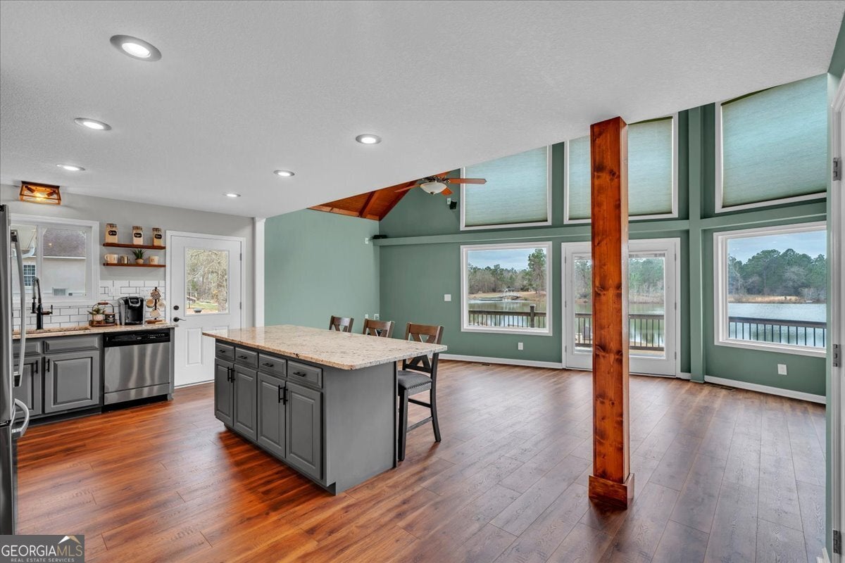 Set gracefully along the water in one of Eastman's most peaceful and established communities, this exceptional 2-acre lakeside property offers a rare blend of refined comfort, privacy, and versatility. Impeccably maintained and thoughtfully updated, this 3-bedroom, 2-bath residence is designed for those who value both elevated living and functional space - all framed by stunning waterfront views. From the moment you arrive, the pride of ownership is unmistakable. The home has been meticulously cared for and recently enhanced with a new roof and new HVAC system, offering modern efficiency and long-term peace of mind. Inside, the open-concept layout is filled with natural light and intentionally positioned to showcase serene water views. The spacious loft provides remarkable flexibility - serving beautifully as a second living area, executive office, or guest retreat - and can also function as a striking primary bedroom suite. From this elevated vantage point, enjoy breathtaking waterfront views and direct access to a private second-floor deck, creating a secluded escape ideal for morning coffee or evening sunsets. Outdoor living is equally compelling. The inground pool is perfectly positioned for entertaining or quiet relaxation, while updated decking enhances the seamless indoor-outdoor flow. A defining feature of this property is the impressive 40x60 heated and cooled workshop with multiple bay doors - an amenity rarely found in residential offerings. Whether accommodating a car collection, home-based business, recreational equipment, or hobby space, this climate-controlled structure delivers unmatched flexibility. Located within a small, quiet, established community with minimal through traffic, the setting provides both privacy and a true sense of retreat - all while remaining convenient to town. This is more than a home - it is a lifestyle property offering elevated waterfront living, thoughtful updates, and exceptional functionality in one of Eastman's most desirable settings.
