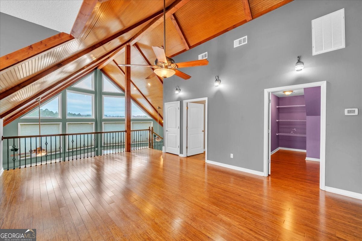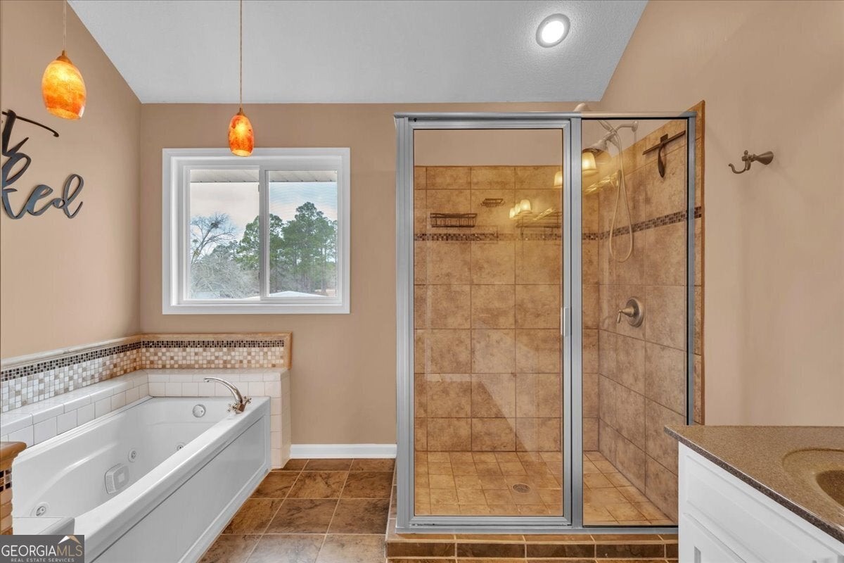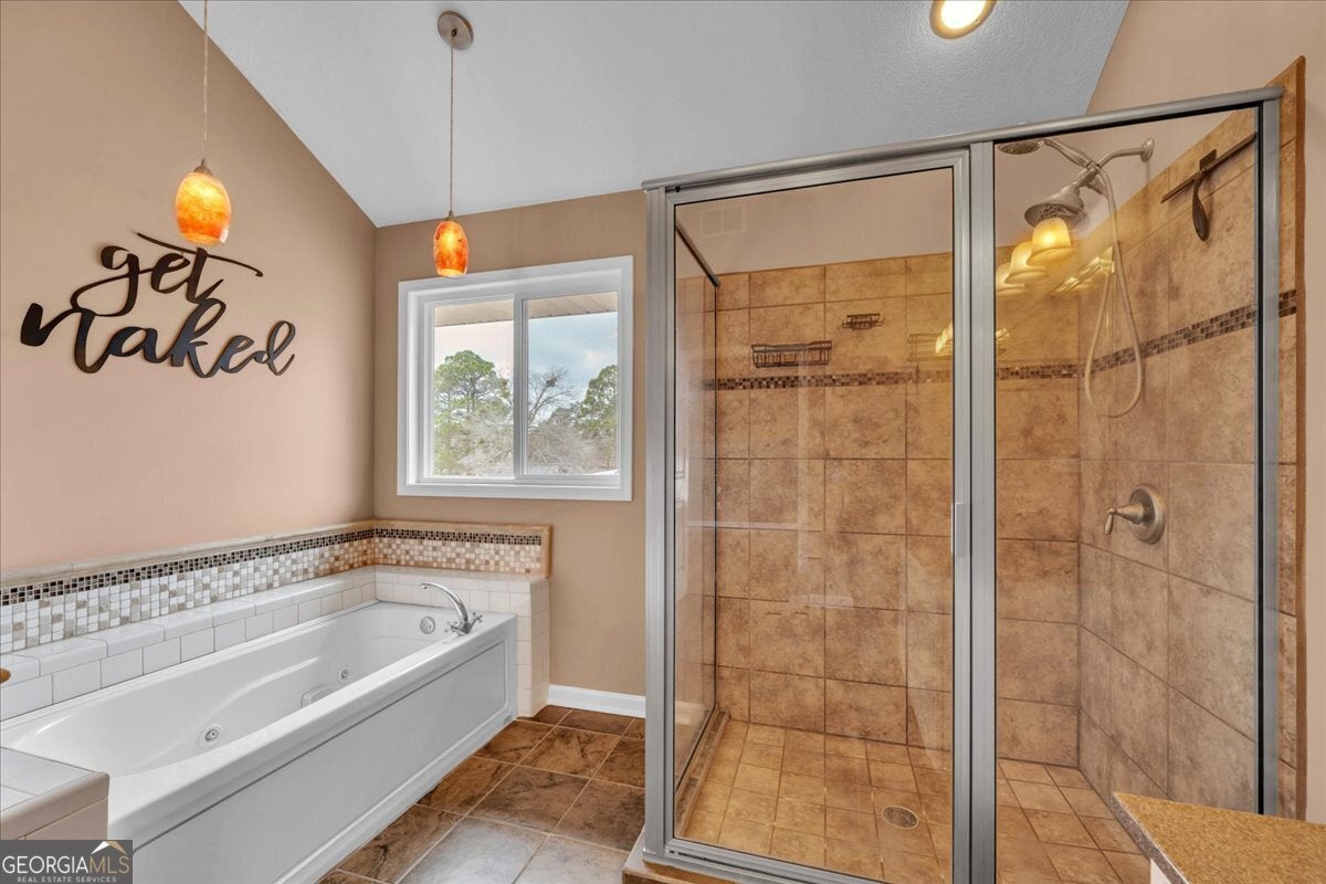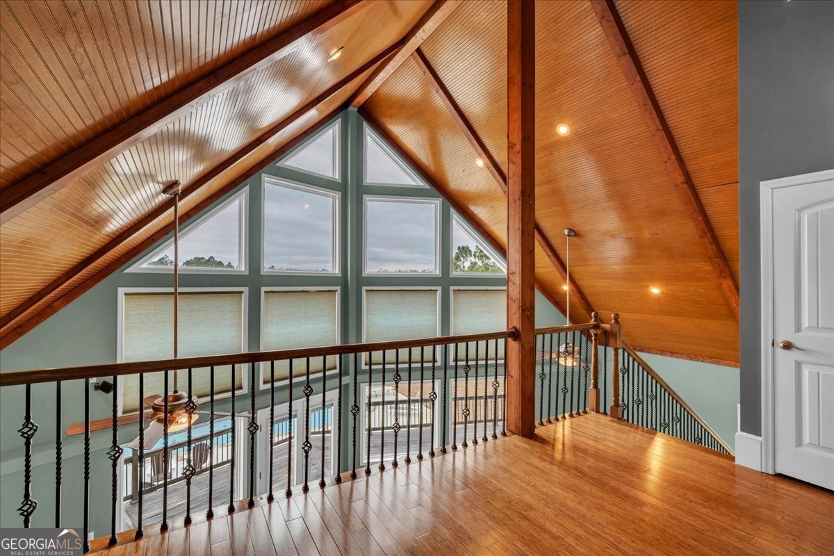 - Interior FeaturesBeamed Ceilings, Double Vanity, High Ceilings, Separate Shower, Soaking Tub, Vaulted Ceiling(s), Walk-In Closet(s)