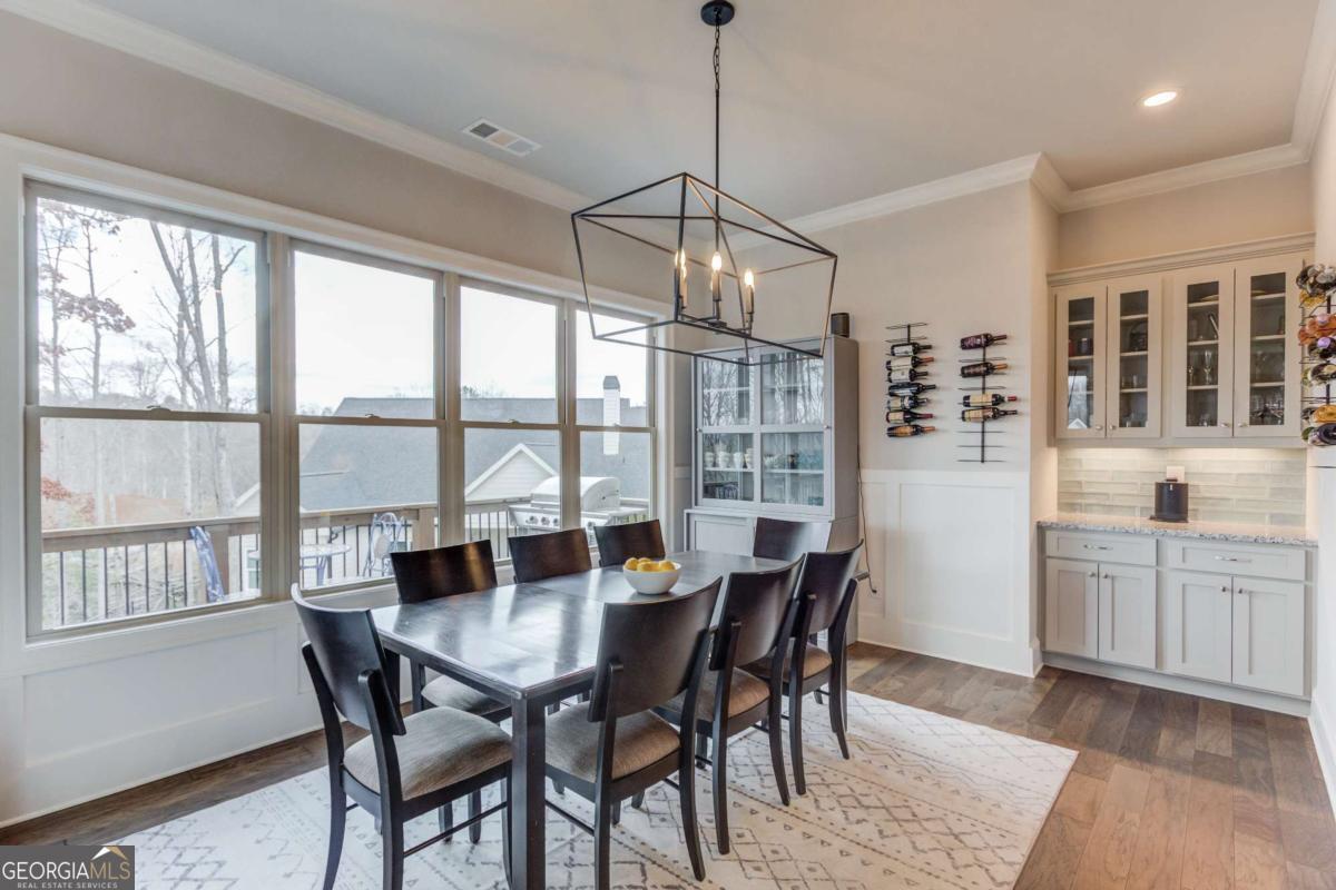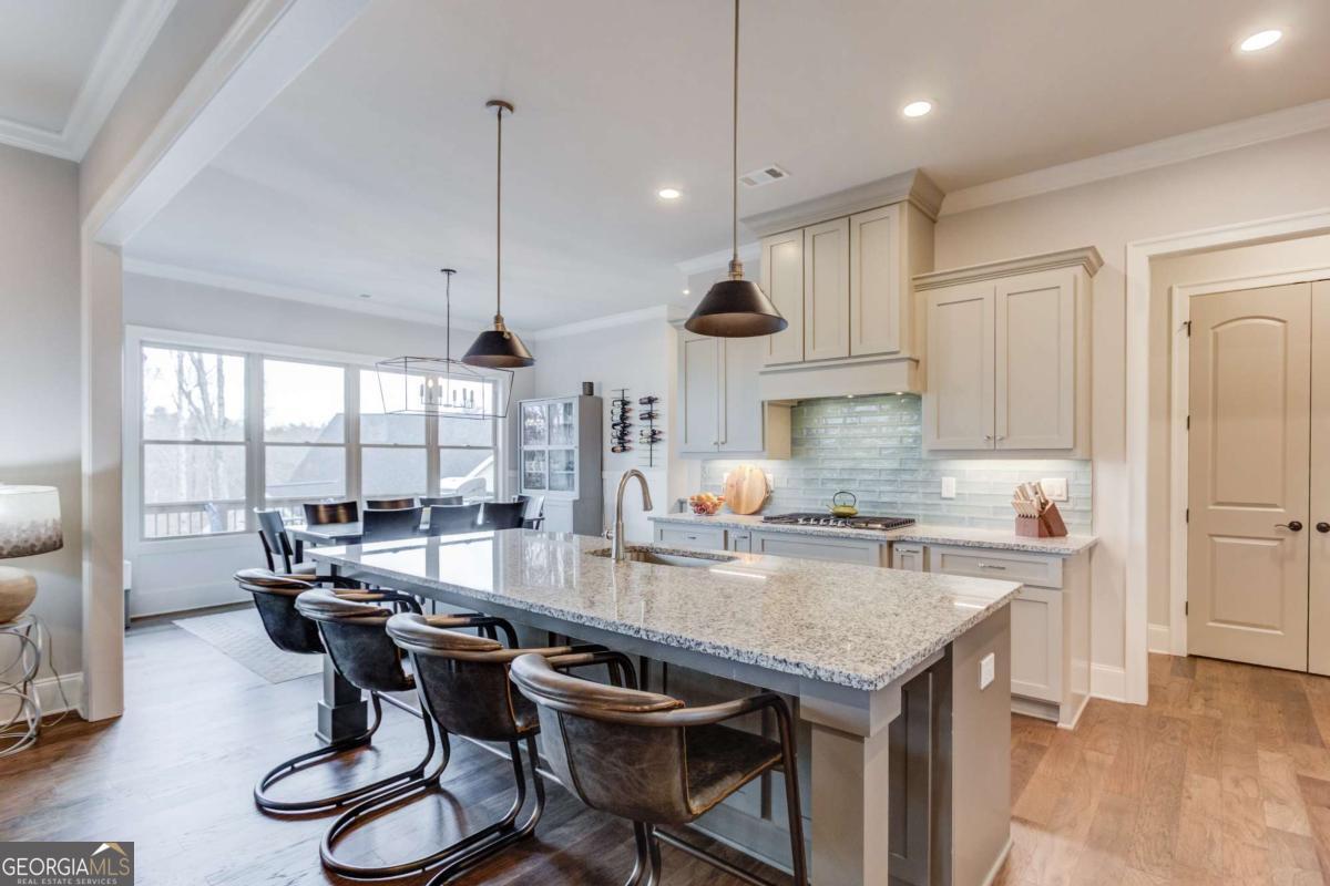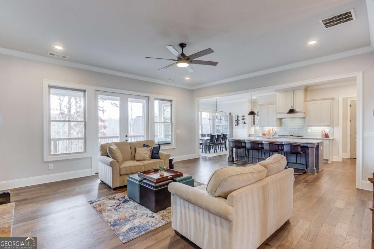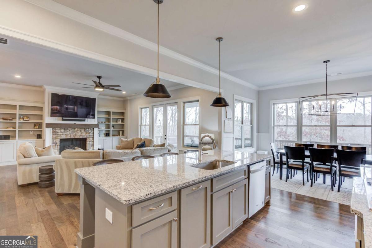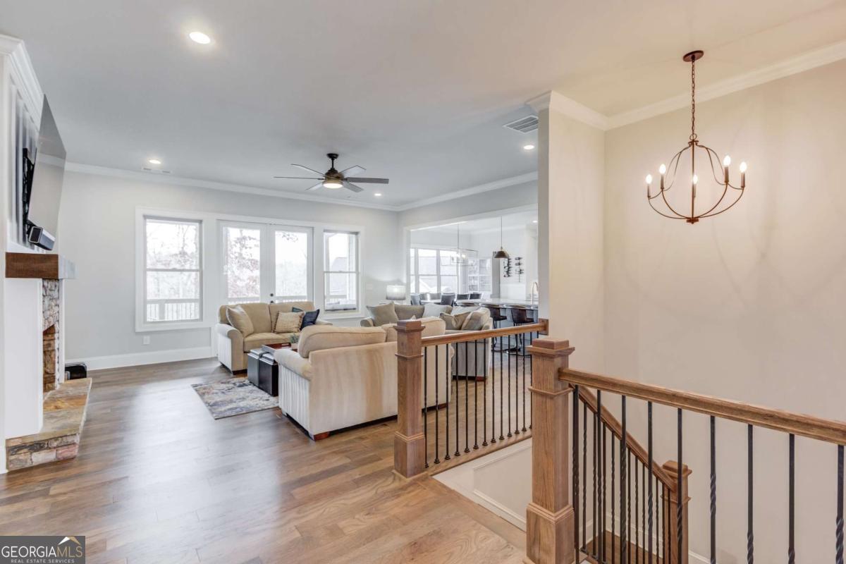 Resort living meets refined design in this 3,400 sq ft home in Marina Bay - complete with a deeded boat slip on Lake Lanier valued at $95,000 and included with the sale. Inside, you'll find a smart layout with two bedrooms on the main level and two additional bedrooms downstairs, each level offering full baths and generous living space. The finished terrace level expands your options with a large second living area, abundant storage, and a fully finished 400 sq ft craft or bonus room with matching hardwood floors and dedicated HVAC - ideal for hobbies, a studio, or private office. The kitchen was upgraded for both function and style with added cabinetry in the butler's pantry, under-cabinet lighting, upgraded appliances with mobile control, a large single-bay sink, custom pull-outs, extra outlets, and enhanced lighting throughout . Built-ins frame the family room fireplace, and professional TV installations upstairs and down keep spaces clean and organized . Every bedroom features upgraded ceiling fans, carpet, wired internet, and added window treatments . Outdoor living takes center stage. A brand-new spa (never used) sits on an extended concrete pad with a privacy wall and dedicated electrical hookup . The upper deck showcases an extra-large cathedral roof, while the expanded grilling deck and upgraded Zoysia lawn create space to gather . Landscaping lighting, a mobile-controlled irrigation system, a backyard drainage system, and prepaid 2026 lawn treatments add long-term value . The marina upgrades include a boat lift, built-in dock features, and added enhancements to maximize your time on the water . A Generac electrical module for backup power, Leaf Gutter system with transferable warranty, epoxy garage floors, storage racks, and MyQ smart garage controls round out the practical improvements . Life in Marina Bay feels like a private resort. Residents enjoy a gated entrance, clubhouse, tennis and pickleball courts, fitness center, pool, walking trails, and an active calendar of social clubs and events that make it easy to connect with neighbors. From pickleball matches to community gatherings, the lifestyle here goes beyond the home itself. Located in Hall County, you'll benefit from lower property taxes compared to many surrounding counties, along with generous senior tax exemptions that can significantly reduce your annual tax burden. A deeded boat slip, high-end upgrades from 2024-2026, prepaid landscape services, and a turnkey spa setup - all positioned in one of Lake Lanier's premier gated communities - make this a rare opportunity to own both the home and the lifestyle.