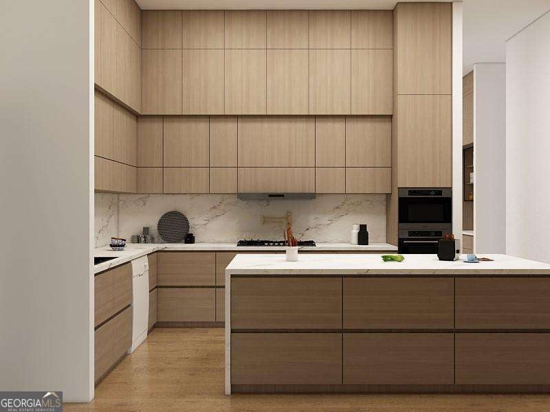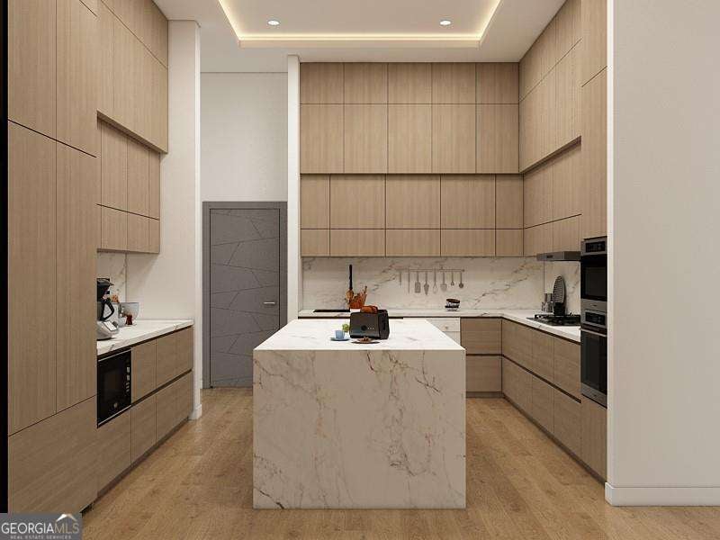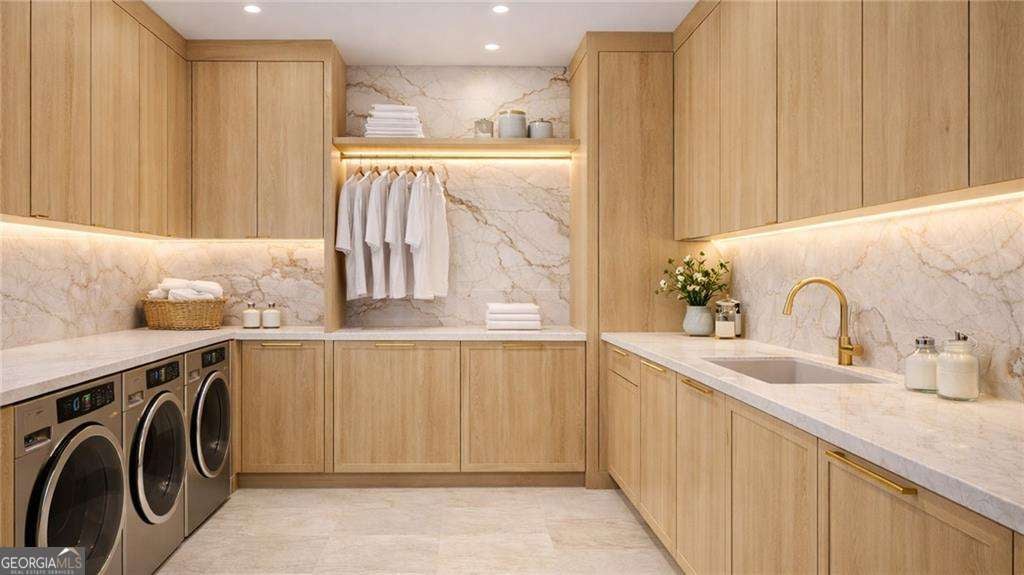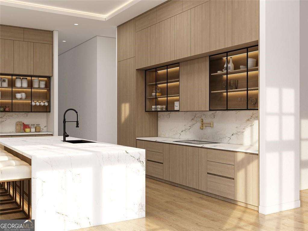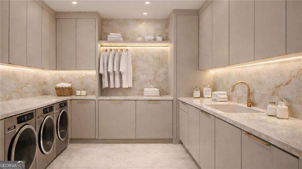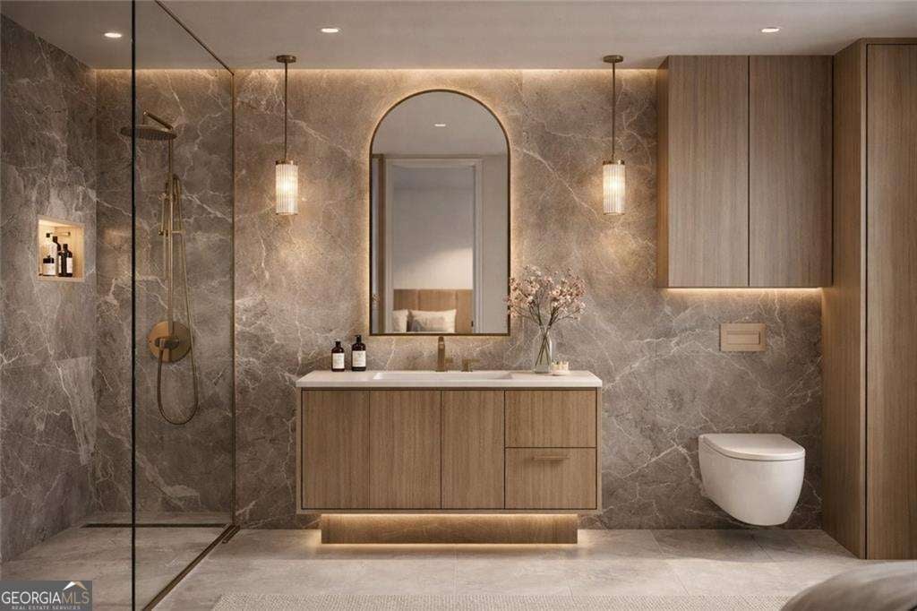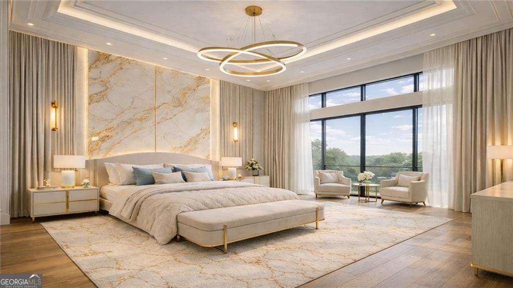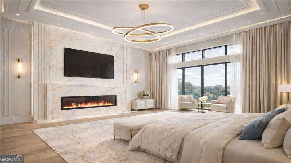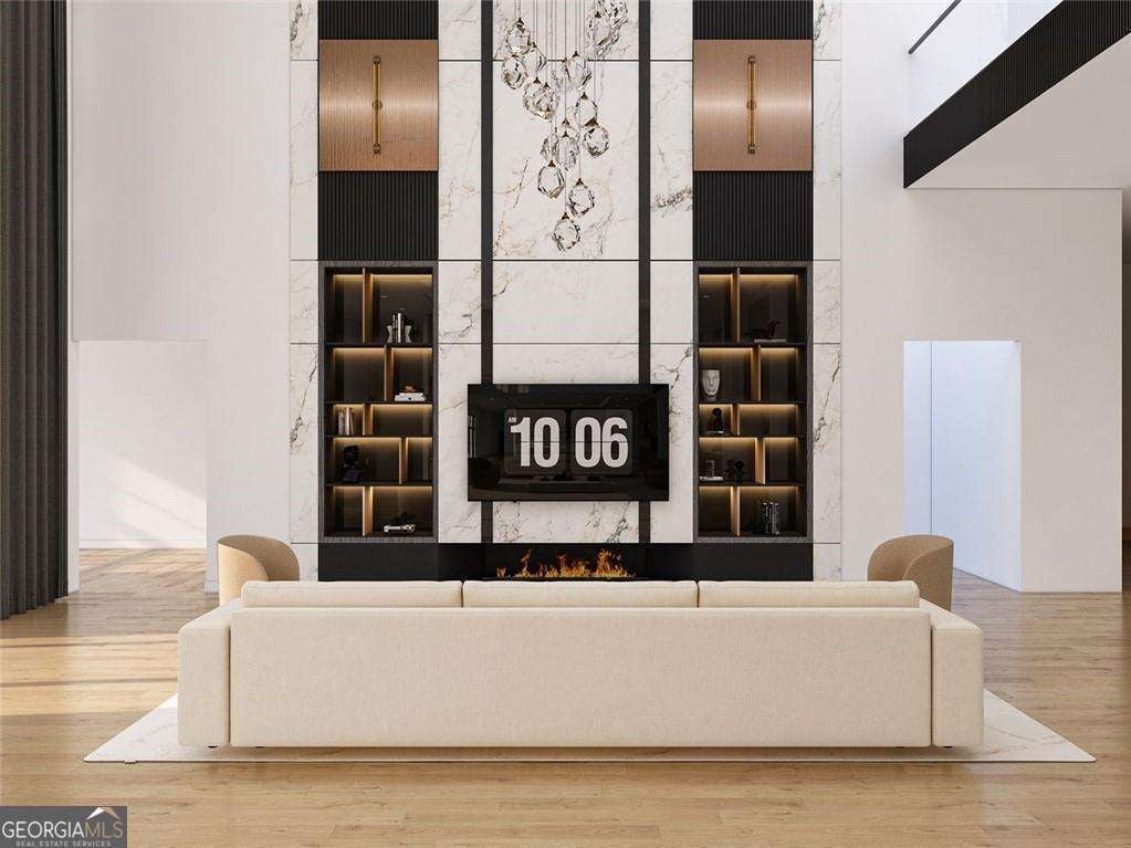 Introducing a rare opportunity to build a fully customized luxury estate on a private 1.49-acre wooded, level lot within an elite gated golf community featuring a celebrated Rees Jones-designed 18-hole championship course known for its legendary back nine. With only 110 architecturally distinctive residences, this enclave is defined by privacy, artisan craftsmanship, and estate-level living - all while benefiting from low Cherokee County property taxes and reasonably low HOA dues for a prestigious golf course community. As you enter, a dramatic 24-foot grand foyer unfolds into an equally impressive 24-foot great room, immediately establishing scale and sophistication. A striking porcelain slab feature wall with a 60-inch linear gas fireplace sets the tone for the space. Expansive walls of glass and aluminum accordion-style doors open seamlessly to a covered loggia with fireplace and optional surround sound, creating a true indoor-outdoor luxury lifestyle. The expansive, private backyard offers ideal conditions for a future resort-style pool and outdoor kitchen, allowing the next owner to design a customized outdoor retreat. Wide-plank white oak engineered hardwood flooring flows throughout the main level, enhancing warmth and continuity. The chef's kitchen is a true showpiece, featuring custom European cabinetry, fully paneled appliances for a seamless integrated design, a dramatic 12-foot by 5-foot island, and a professional-grade 48-inch gas range with integrated pot filler. Quartzite countertop allowances elevate the finish level. The adjacent breakfast room showcases 15-foot vaulted ceilings and a built-in wet bar, creating a natural gathering space. A discreet hidden door leads from the mudroom into a fully equipped prep kitchen with its own 8-foot island and 36-inch gas range for seamless entertaining. The formal dining room includes a built-in dry bar, while the main-level powder room features a floating vanity, cabinet lighting, and a bidet toilet, reflecting elevated attention to detail. The main-level owner's suite is a private sanctuary highlighted by 17-foot vaulted ceilings, a linear fireplace, and access to a covered balcony overlooking the backyard. The spa-inspired bath offers a seven-foot walk-in shower with full tile surround and frameless glass enclosure, plus the option for a dramatic seven-foot freestanding soaking tub. Dual water closets, dual vanities, and an expansive walk-in closet with center island complete the suite, with laundry access on both floors. Every secondary bedroom is designed as a private en suite with oversized custom walk-in closets. Above the garage, an attached private guest residence with its own separate entrance functions as an in-law suite, au pair quarters, or executive retreat - essentially a private wing within the estate. The unfinished terrace level allows for a bespoke lower level design, whether a home theater, golf simulator, wellness spa, or wine lounge. An elevator shaft is pre-planned for future installation. This energy-efficient estate includes two tankless gas water heaters and EV charging capability in all four garage bays. Residents enjoy championship golf and secure gated entry, all just minutes from Avalon and Halcyon with convenient access to GA-400. With plans approved and ground breaking imminent, this is the ideal time to personalize structural selections and luxury finishes creating a custom legacy estate within one of Alpharetta's most prestigious golf communities.