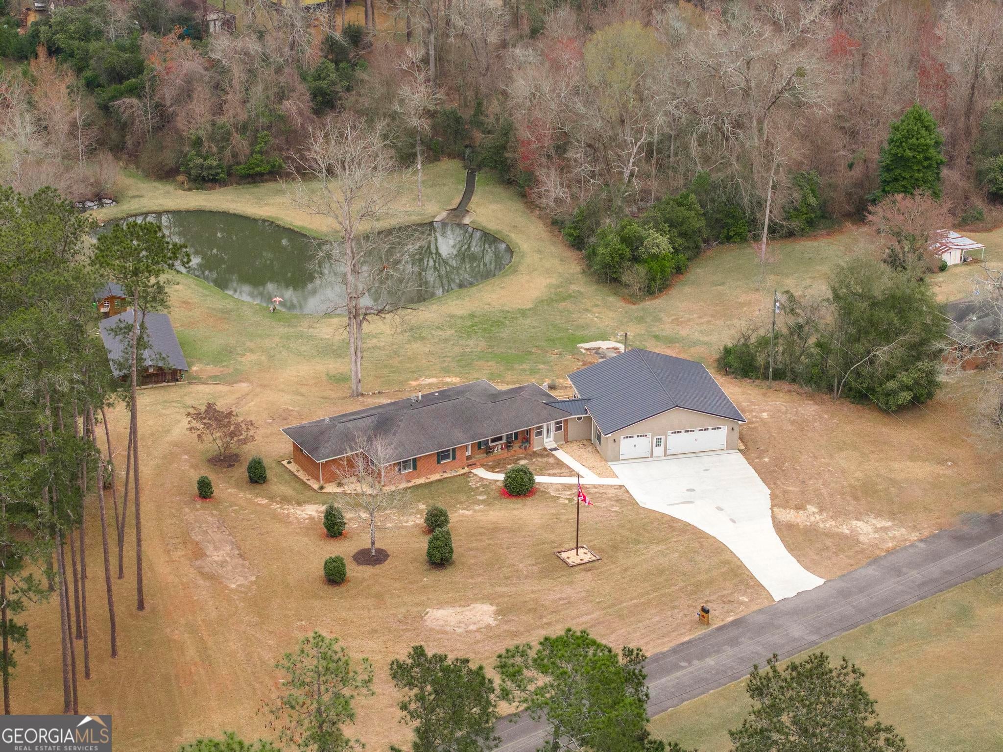 *Contingent with a 48 hour kickout* Peaceful Country living on 2.24 acres with pond & dream garage. Welcome to your perfect blend of comfort, space, and functionality. This well-maintained 2,054 sq ft home overlooks a picturesque pond with ducks that play in your own backyard. Huge, remodeled kitchen features, an abundance of wood cabinets, tile backsplash, granite countertops, updated finishes, and cozy breakfast area w/ a view. No carpet, hardwood floors, and tile throughout. Beautifully remodeled master bath has a huge walk-in shower, separate soaking tub, and huge walk-in closet. Car enthusiasts, hobbyists, and people who work from home will love this 1,600 sq ft heated and cooled garage offering: 3 spacious bays, workshop area, 19x12 man cave or office. Additional 20x37 workshop w/ 2 roll-up doors. This property truly has it all. USDA financing available.