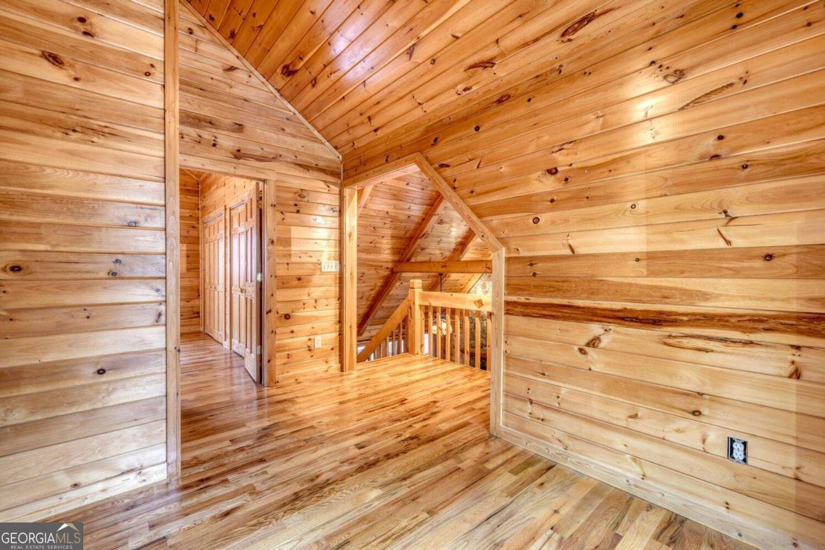 Escape to your own Blue Ridge retreat: a 4 bed, 3 bath single-family home with a detached 2-car garage, setback for privacy on 2.77 acres in the gated Shepherd's Ridge community with paved road access and located about 8 miles from Blue Ridge, GA. Warm, all-pine interiors pair with cedar closets, granite throughout, and an all-wood quality kitchen. Enjoy three fireplaces: a stone centerpiece in the living room, another in the main-level primary suite, and a third in the downstairs living area. The layout includes an upstairs loft and bathrooms on each of three floors. Outside, savor the porch's custom wood-carved swing, a den with French doors leading to the firepit, and a custom garden shed with electricity. Practical upgrades shine, brand new roof and deck staining, plus $30,000 in upgrades completed as of 8/8/25, along with a smart thermostat and new locks on all doors. The detached 2-car garage includes electricity and a workshop. Schedule your private showing and experience the secluded setting and turnkey improvements firsthand.