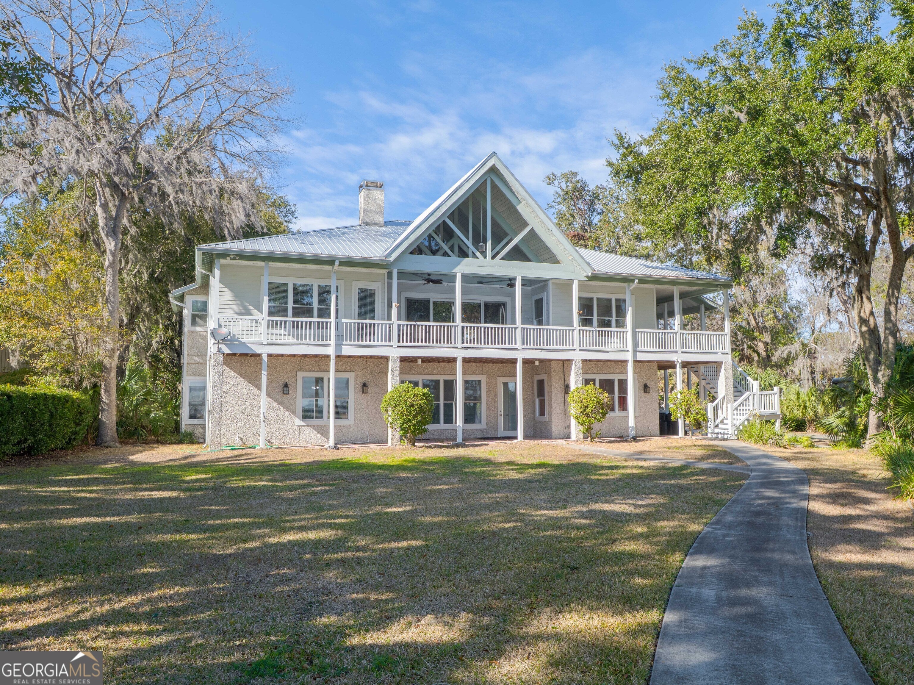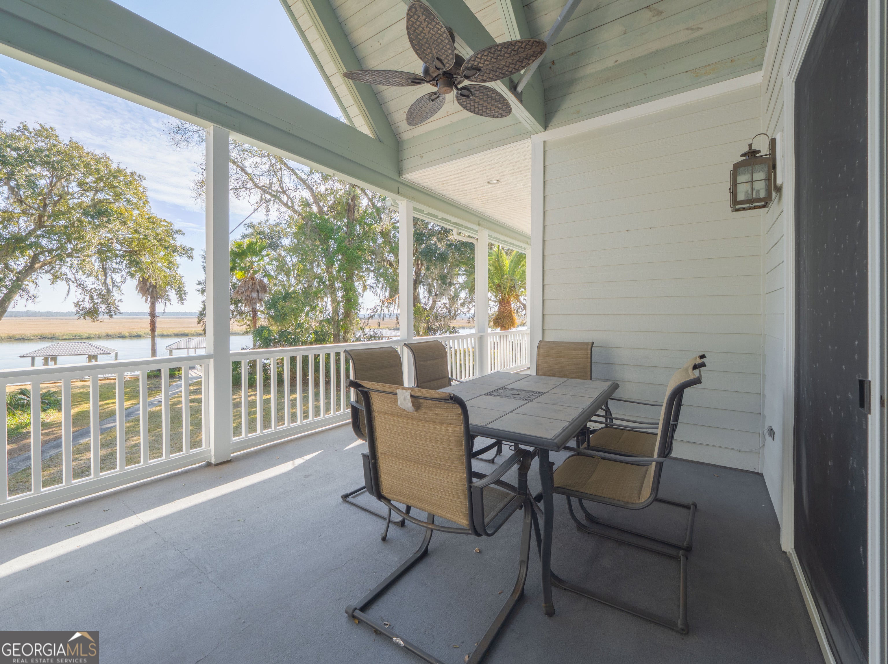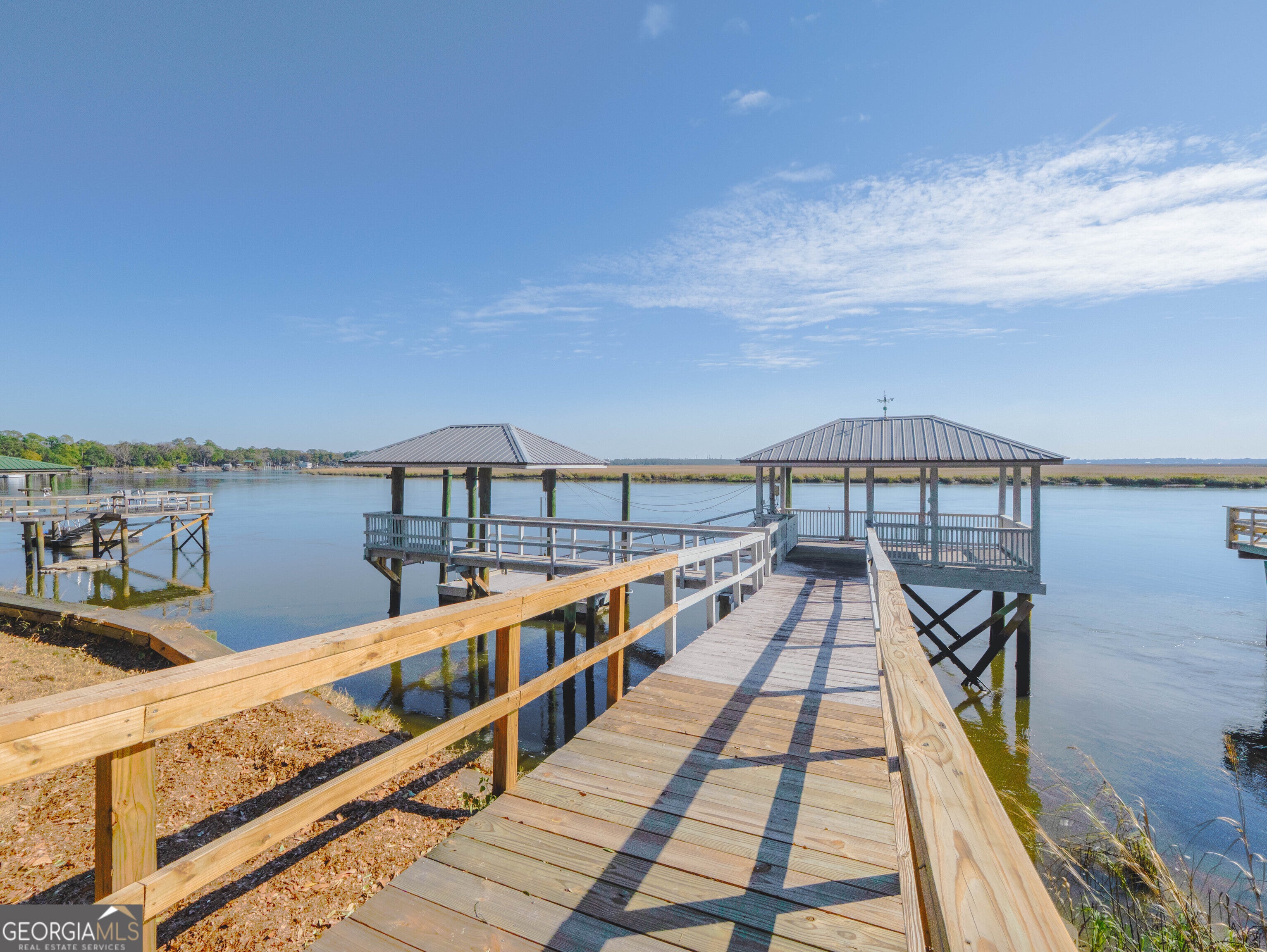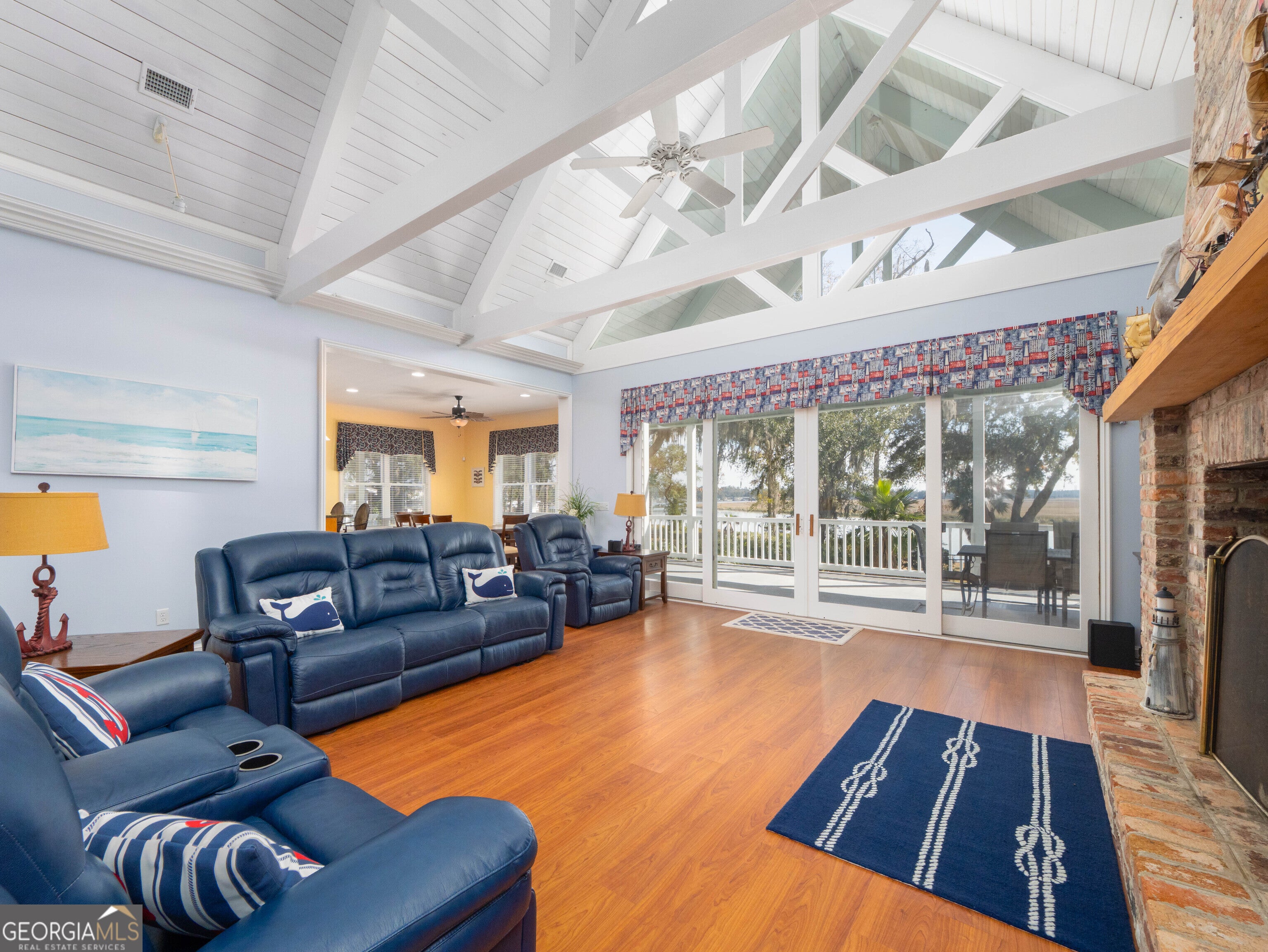 Experience true deep-water coastal living on the Little Satilla River, where boating, fishing, and waterfront views define everyday life. Elevator Equipped. This exceptional riverfront home offers deep water at all tides with your private dock featuring a floating dock and covered 10,000-lb boat hoist, providing effortless access to the Intracoastal lifestyle. A sea wall less than two years old adds peace of mind, while the community deep-water marina offers additional convenience for boating enthusiasts. Designed to embrace the river, the home welcomes you with a wraparound porch and foyer entry that immediately draw you toward the water. All ceilings throughout the home are over 9 feet tall, creating an airy, light-filled atmosphere and enhancing the sense of space on every level. The main-level living room showcases vaulted, beamed ceilings, a classic brick fireplace, elevator, and sweeping river views-an inviting space to relax after a day on the water. A formal dining area complements the layout, ideal for entertaining family and friends. The eat-in kitchen blends function and style with an island, cooktop, wall oven, walk-in pantry, and granite countertops. Outdoor living takes center stage with a summer kitchen on the porch overlooking the dock and river, perfect for grilling your fresh catch and enjoying coastal breezes. Wake up to sparkling water views in the owner's suite, complete with a walk-in closet and direct access to the wraparound porch. The owner's bath features a double vanity, linen storage, soaking tub, and tiled shower with seating. The ground level expands the home's versatility with an additional living area featuring a wet bar, three guest bedrooms each with en-suite baths, and a bonus room ideal for a second office, art studio, or storage. An oversized laundry room with an office area enhances everyday convenience. Whether cruising the river, casting a line at sunrise, or unwinding on the porch as boats pass by, this Little Satilla River residence delivers a rare deep-water lifestyle with generous ceiling heights, effortless boating access, and timeless coastal appeal.