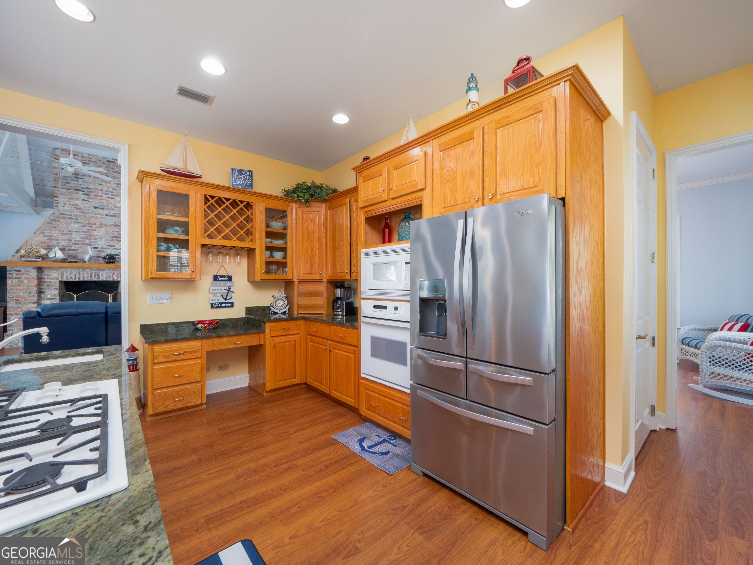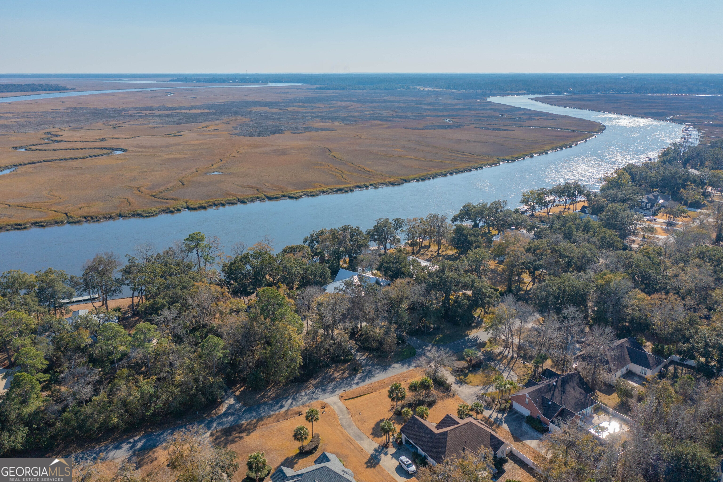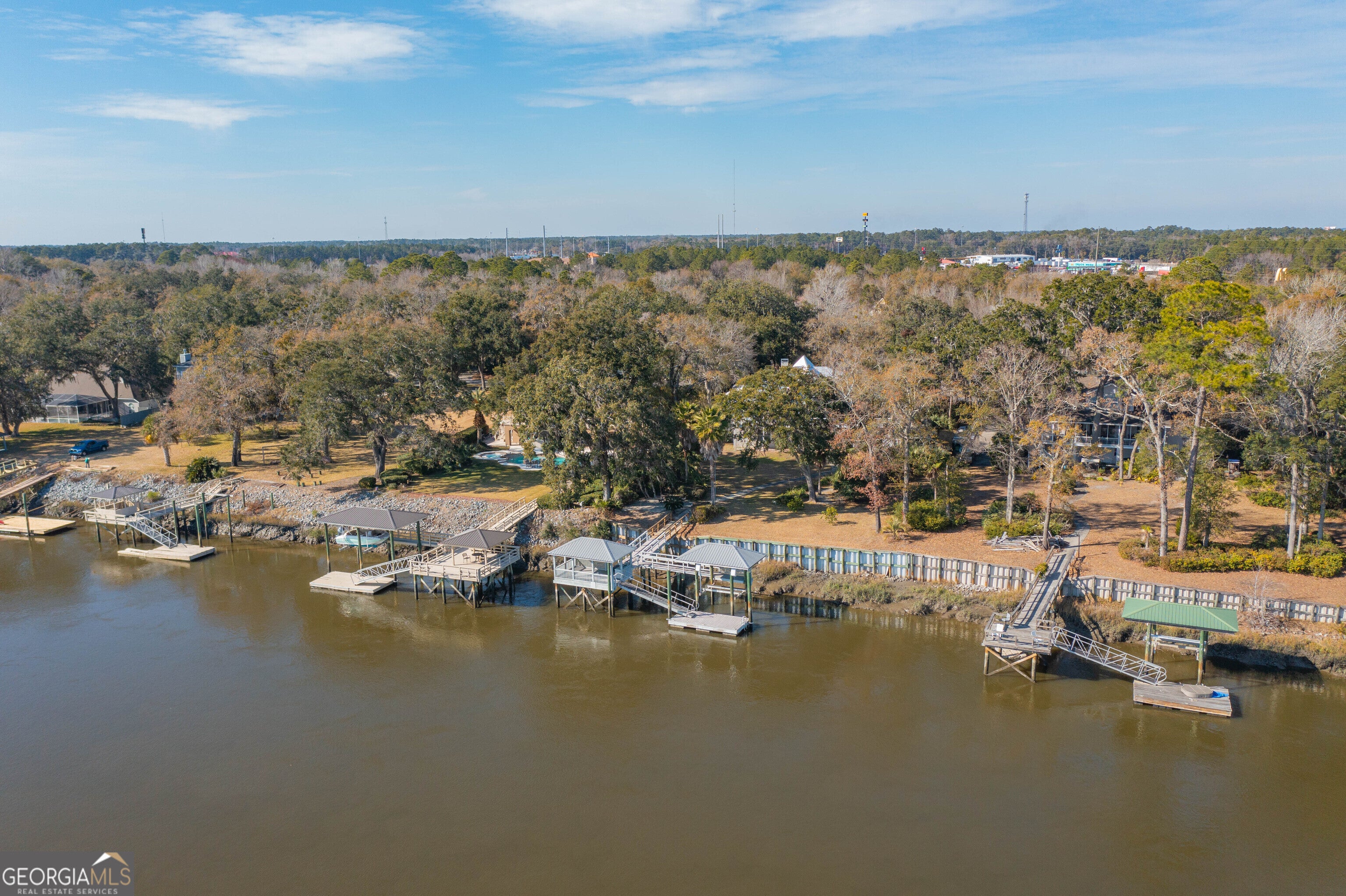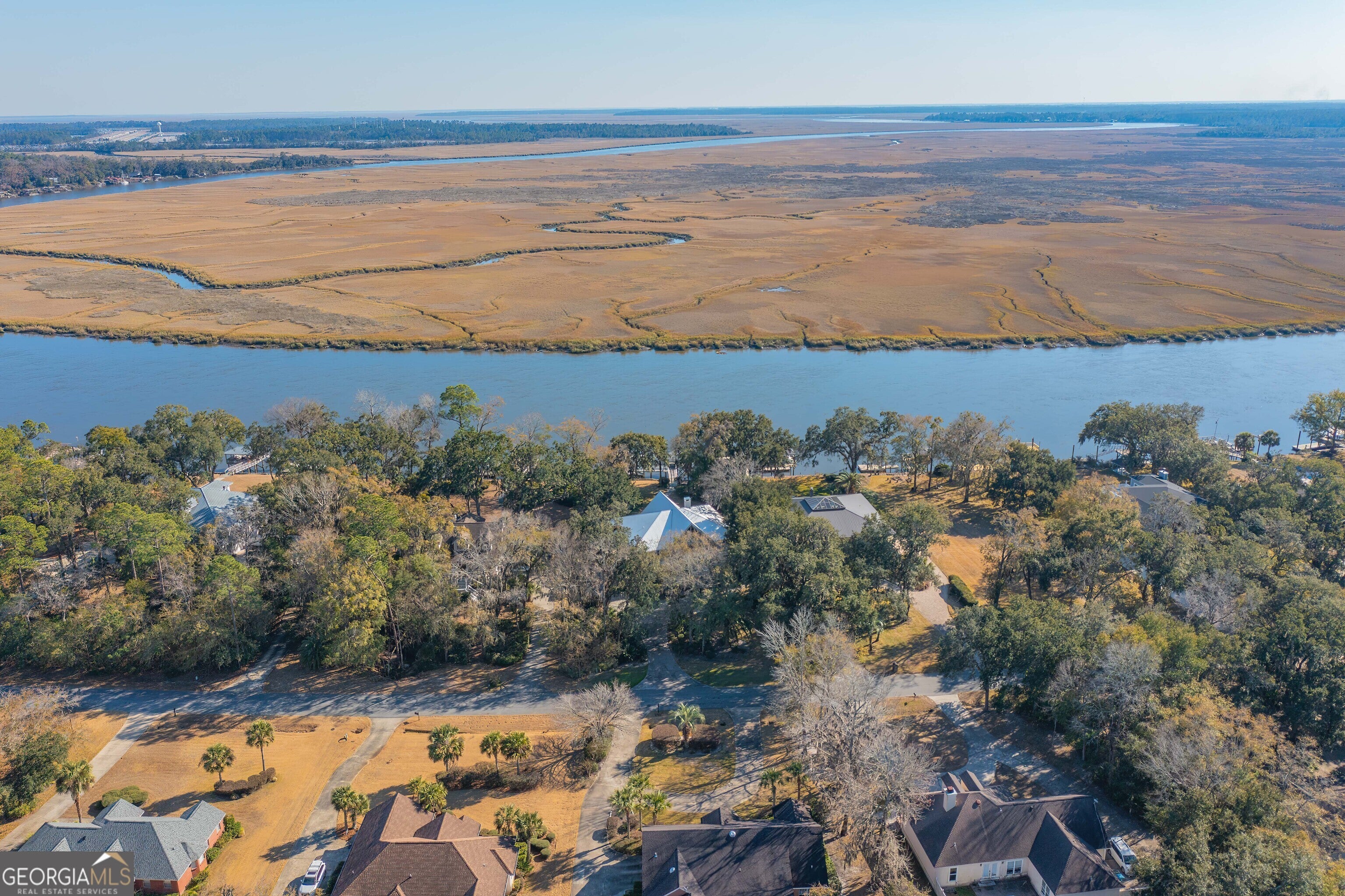 Experience true deep-water coastal living on the Little Satilla River, where boating, fishing, and waterfront views define everyday life. Elevator Equipped. This exceptional riverfront home offers deep water at all tides with your private dock featuring a floating dock and covered 10,000-lb boat hoist, providing effortless access to the Intracoastal lifestyle. A sea wall less than two years old adds peace of mind, while the community deep-water marina offers additional convenience for boating enthusiasts. Designed to embrace the river, the home welcomes you with a wraparound porch and foyer entry that immediately draw you toward the water. All ceilings throughout the home are over 9 feet tall, creating an airy, light-filled atmosphere and enhancing the sense of space on every level. The main-level living room showcases vaulted, beamed ceilings, a classic brick fireplace, elevator, and sweeping river views-an inviting space to relax after a day on the water. A formal dining area complements the layout, ideal for entertaining family and friends. The eat-in kitchen blends function and style with an island, cooktop, wall oven, walk-in pantry, and granite countertops. Outdoor living takes center stage with a summer kitchen on the porch overlooking the dock and river, perfect for grilling your fresh catch and enjoying coastal breezes. Wake up to sparkling water views in the owner's suite, complete with a walk-in closet and direct access to the wraparound porch. The owner's bath features a double vanity, linen storage, soaking tub, and tiled shower with seating. The ground level expands the home's versatility with an additional living area featuring a wet bar, three guest bedrooms each with en-suite baths, and a bonus room ideal for a second office, art studio, or storage. An oversized laundry room with an office area enhances everyday convenience. Whether cruising the river, casting a line at sunrise, or unwinding on the porch as boats pass by, this Little Satilla River residence delivers a rare deep-water lifestyle with generous ceiling heights, effortless boating access, and timeless coastal appeal.