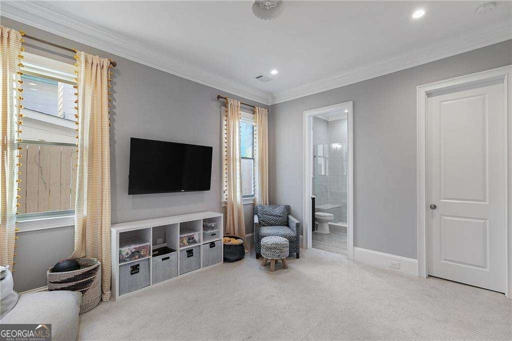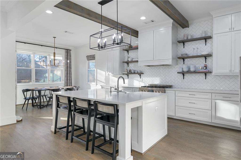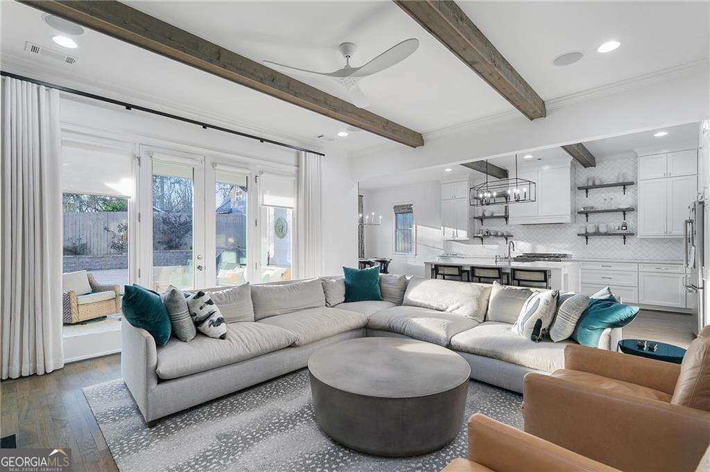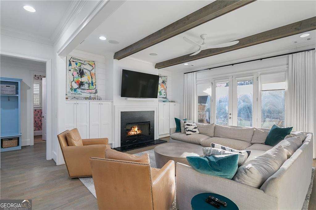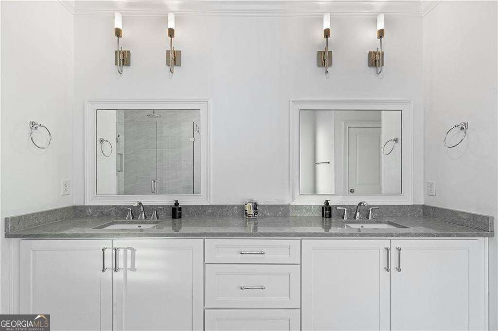 Crafted with exceptional attention to detail and timeless design, this distinguished 5-bedroom, 4.5-bath residence offers elevated living in the heart of Ashford Park. Immaculate in presentation and thoughtfully designed for both grand entertaining and everyday comfort, the home blends sophistication with warmth. A gracious foyer introduces the light-filled main level, where rich hardwood floors, designer finishes, and a seamless open layout create an inviting yet refined atmosphere. The chef's kitchen is a statement in both style and function, appointed with premium stainless steel appliances, custom cabinetry, open shelving, and an expansive island overlooking the beautifully designed family room with bespoke built-ins. The main level also features a private guest suite with an en-suite bath, along with an elegant powder room. Upstairs, the primary owner's retreat offers a tranquil sitting area, a spa-caliber bath with luxurious finishes, and a custom walk-in closet with wood shelving designed for optimal organization. Three additional generously sized bedrooms and two full baths complete the upper level with comfort and privacy in mind. Outdoor living is equally impressive, highlighted by a covered patio with fireplace overlooking the expansive flat backyard-an ideal setting for refined gatherings or quiet evenings at home. A two-car garage provides convenience and functionality, completing this exceptional offering in one of Atlanta's most desirable neighborhoods.