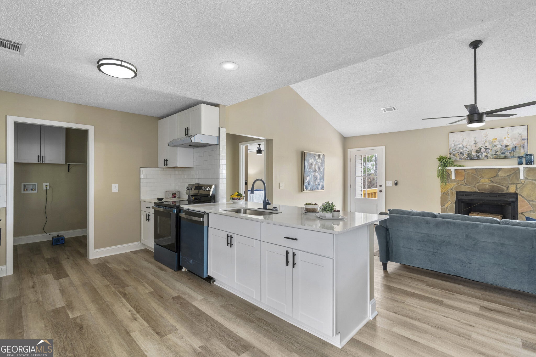 Welcome to 102 Discovery Bay in Milledgeville, GA - a beautifully renovated home located in a desirable lake community near Lake Sinclair. Completely updated from top to bottom, this move-in ready property features new flooring, fresh paint, modern fixtures, and stunning quartz countertops throughout. The open floor plan creates an easy flow for everyday living and entertaining, highlighted by a spacious fireside family room that feels both inviting and functional. The kitchen shines with its new quartz surfaces and updated finishes, offering a clean, modern feel that today's buyers want. The owner's suite has been thoughtfully refreshed with a quartz vanity and a brand-new tiled shower, creating a comfortable and stylish retreat. Durable, low-maintenance LVP flooring runs throughout the home, combining practicality with contemporary design. Situated on a large, level 1.4-acre lot, the property offers plenty of room to enjoy outdoor living, while the rear-entry two-car garage enhances curb appeal and convenience. Located less than half a mile from Lake Sinclair, this home provides easy access to boating, fishing, and lakeside recreation while still offering privacy and space. If you've been looking for a fully updated home with land and lake access nearby, this one delivers.