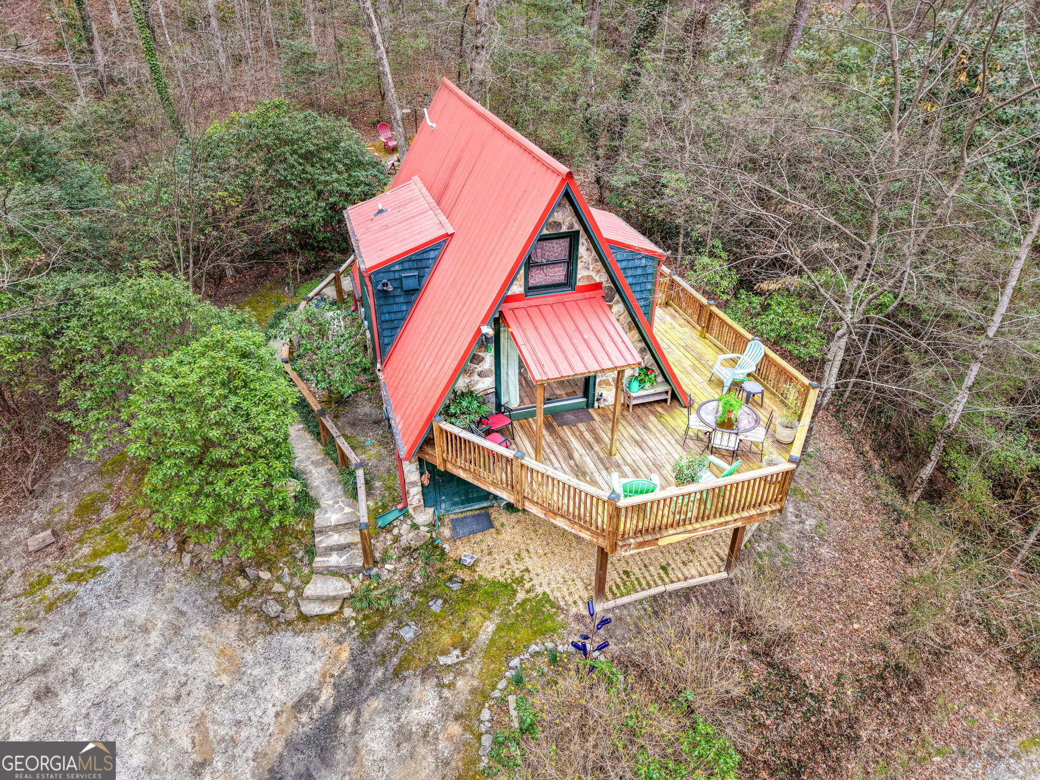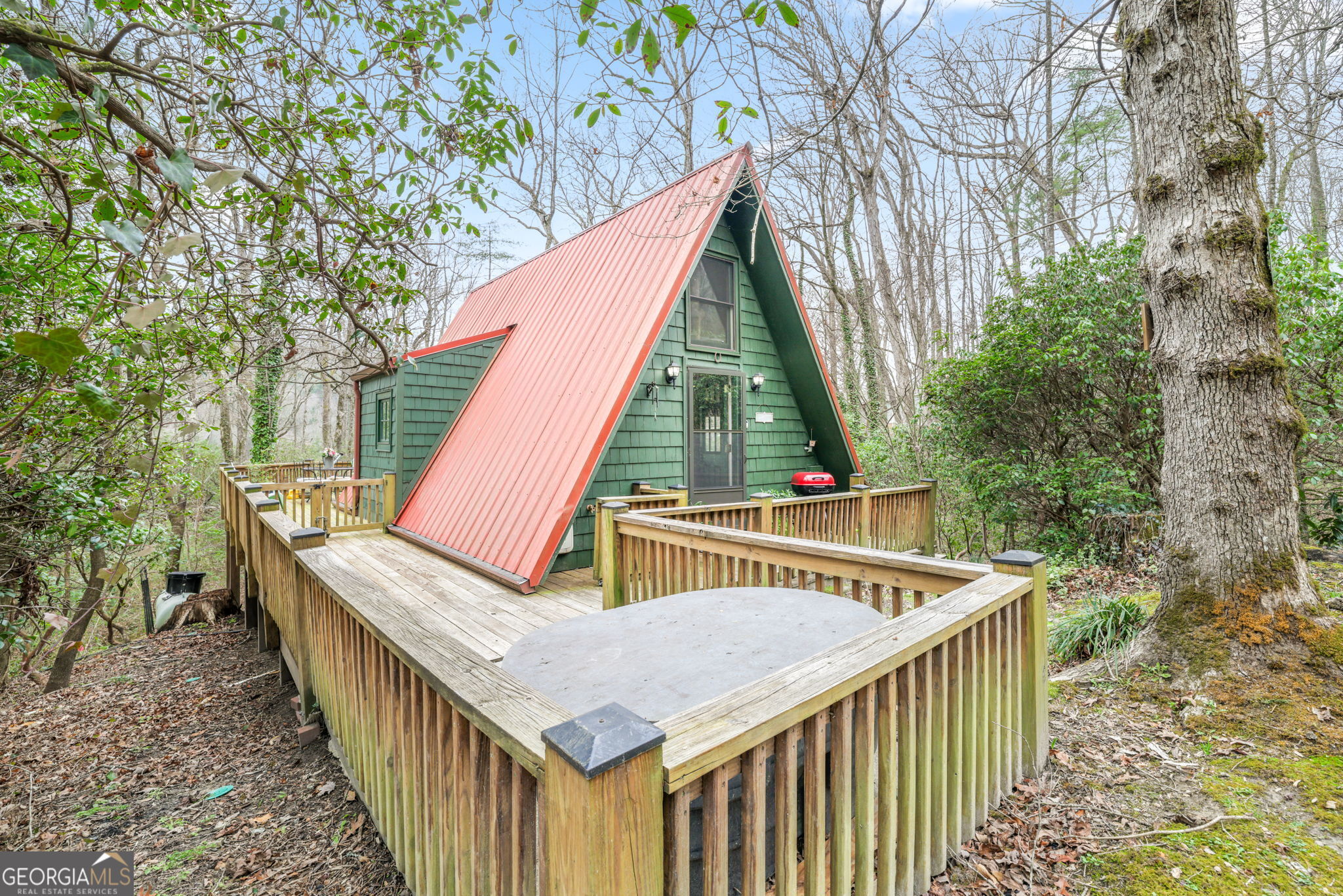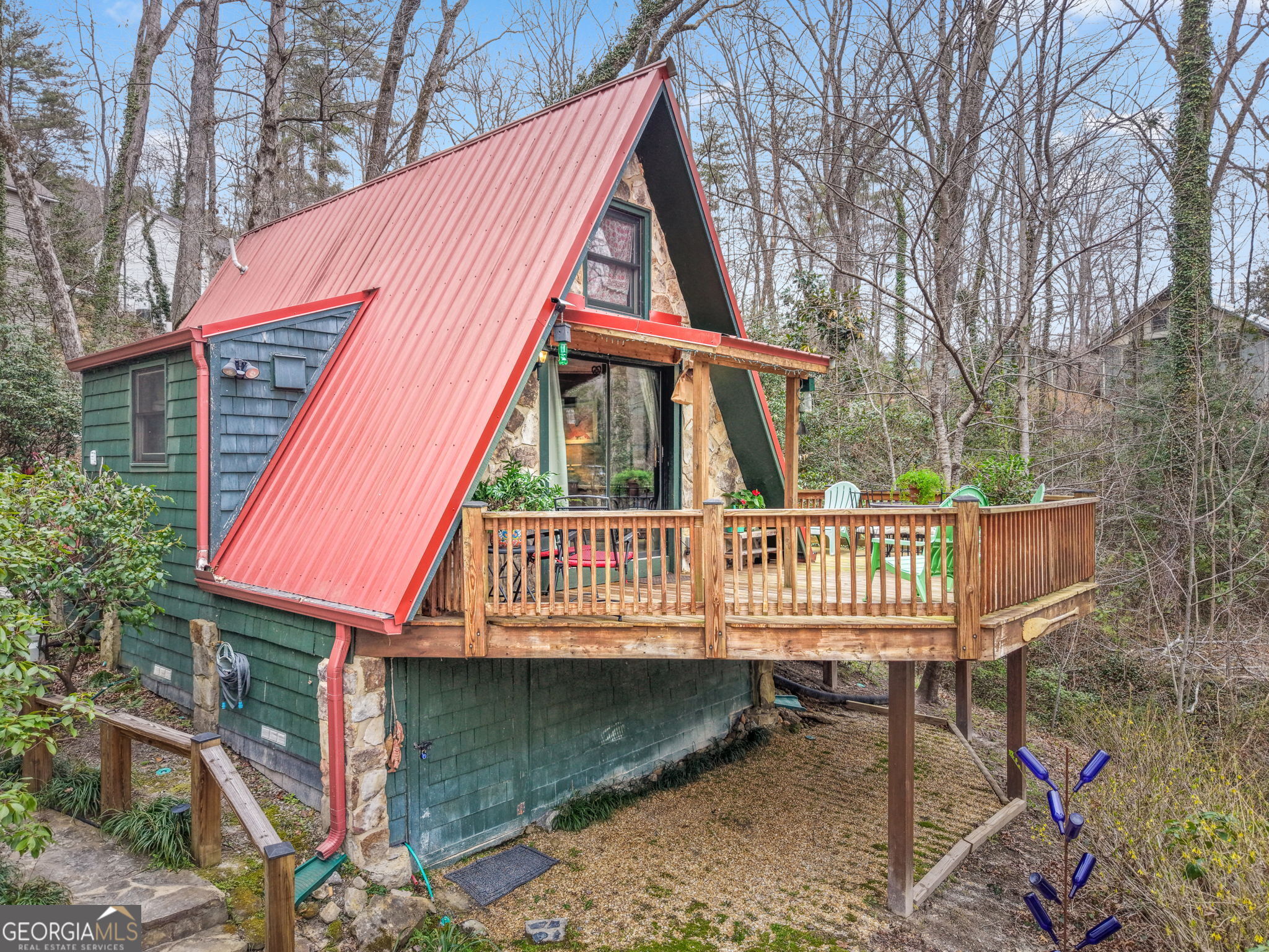 Escape to your own private sanctuary at 91 Rose Circle. This impeccably maintained 648 sq. ft. chalet offers the perfect blend of rustic charm and modern convenience. Nestled on a secluded, wooded lot featuring a private firepit, and captures a serene "campground" essence without sacrificing comfort. While you'll feel miles away from the world, you are a mere half-mile stroll from the heart of downtown Clayton. With a proven track record as a successful short-term rental, this home is as much a smart investment as it is a peaceful retreat. New Heat Pump and metal roof was added 8 years ago. There is a large underneath house storage. Experience the best of Rabun County--Georgia's farm-to-table capital--and explore the endless waterfalls and trails right down the street. This 1-bedroom, 1-bath cottage is the ultimate weekend adventurer's basecamp.