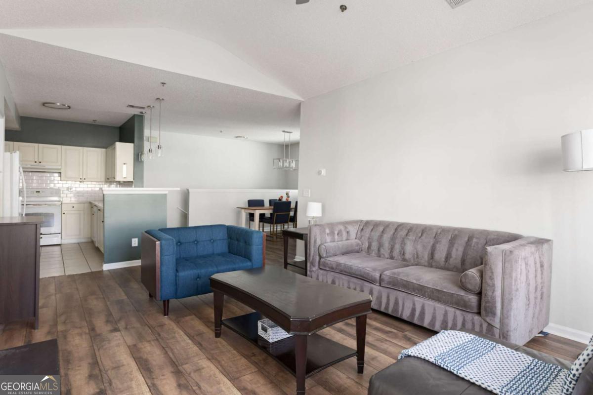 Welcome to 703 Spring Heights Lane, Smyrna, GA 30080 - a rare opportunity to own a beautifully maintained condo in a gated community with the convenience of a private 1-car garage and plenty of guest parking. This thoughtfully designed roommate floor plan features 2 spacious bedrooms and 2 full bathrooms, offering ideal separation for guests, roommates, or a dedicated home office. The light-filled living area boasts vaulted ceilings, a cozy fireplace, and durable laminate flooring throughout for a seamless, modern look. The kitchen features granite countertops, crisp white cabinetry, and ample prep space, opening effortlessly to the dining and living areas - perfect for everyday living and entertaining. Both bathrooms have been tastefully updated, adding a fresh and contemporary feel. Enjoy peace of mind with a new HVAC system installed in 2024, plus modern conveniences including keyless entry with smart lock technology and a Ring doorbell already installed. Step outside to your private balcony, or enjoy the amenities of this gated community with a pool - all with low HOA fees. Location truly sets this home apart. Zoned for top-rated Smyrna Elementary and Campbell Middle School, and walking distance to Rev Coffee and Downtown Smyrna, you'll love the easy access to local shops, dining, parks, and community events. You're also just minutes from I-285 and I-75, and only a short drive to The Battery at Truist Park - home of the Atlanta Braves - making entertainment, dining, and game days incredibly convenient. Low maintenance. Smart layout. Prime walkability. Garage included. This one truly checks all the boxes.