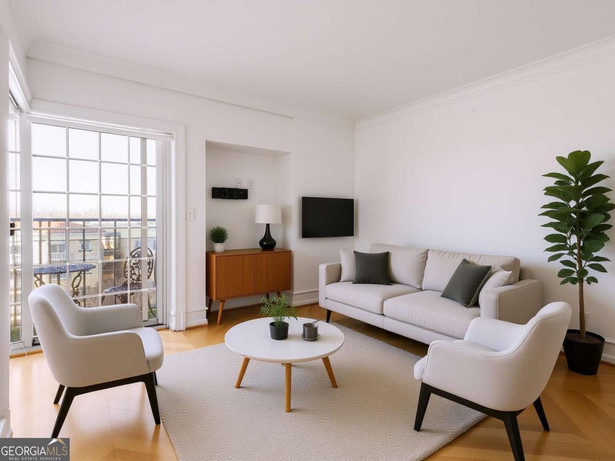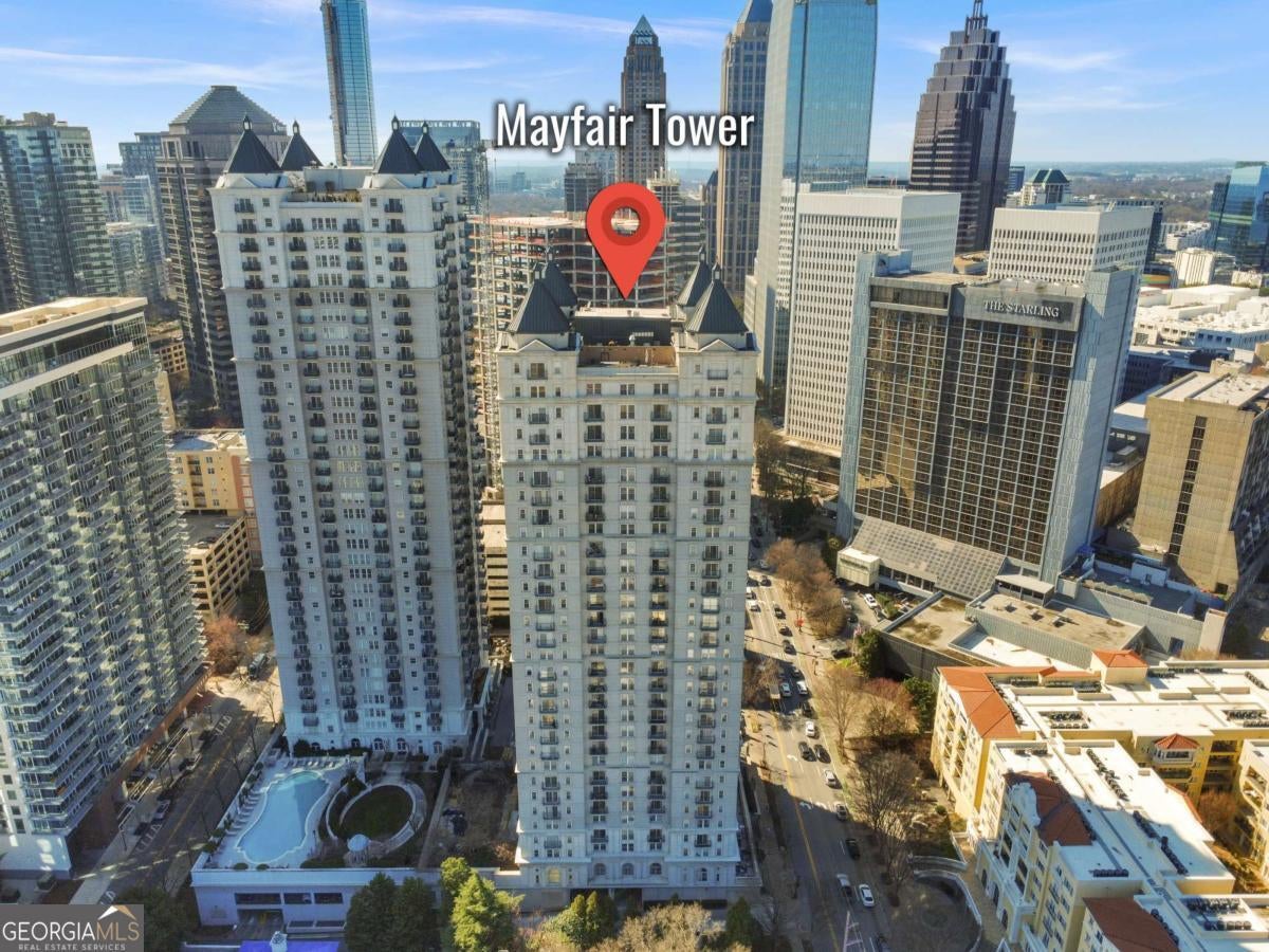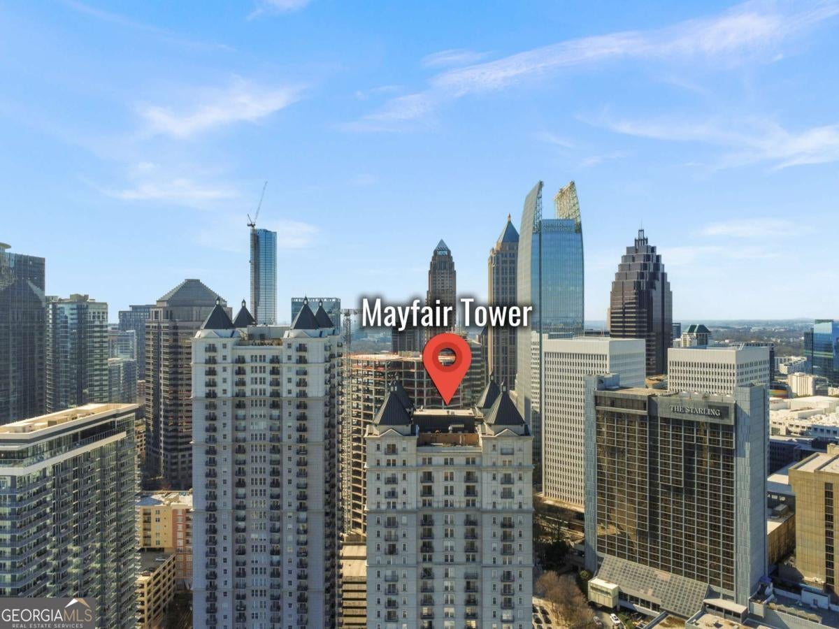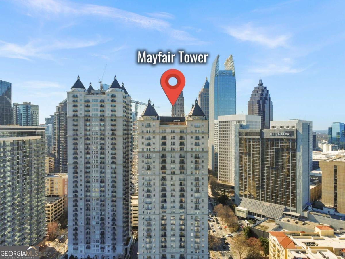 Sophisticated Midtown living in the iconic Mayfair Tower. This 1 bedroom, 1 bath residence features fresh neutral interiors and a thoughtfully designed layout that maximizes space and light. The kitchen offers granite countertops, stainless steel appliances, and custom cabinetry with modern hardware. Step onto your private balcony and take in sweeping Midtown skyline views - including a direct view of The Starling - creating the perfect backdrop for morning coffee or evening wine. Enjoy the convenience of walkable access to Piedmont Park, Colony Square, the BeltLine, dining, shopping, and MARTA. Mayfair Tower amenities include 24-hour concierge, fitness center, clubroom, and secure parking. A refined opportunity in one of Midtown's most recognizable addresses.