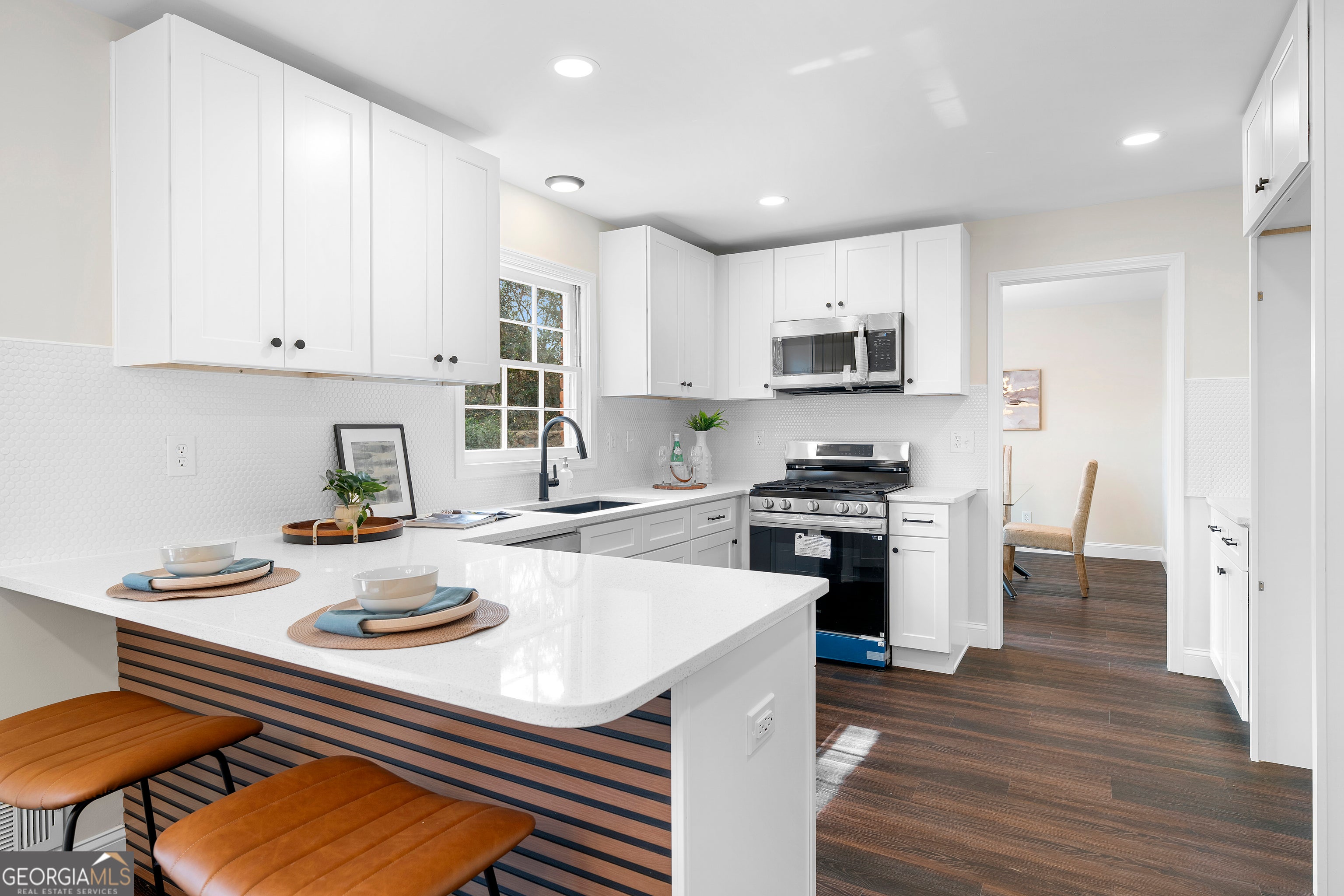 Updated and move-in ready, 4353 Langdon Drive is a bright, inviting Decatur home on a private wooded lot. The kitchen features new appliances, barstool seating, and a casual dining area, flowing seamlessly into a formal dining room and a light-filled living room with a stunning German-imported fireplace. A main-level bedroom offers flexibility for guests or a home office, complemented by a convenient laundry room. Upstairs, the primary suite boasts a walk-in closet and spa-like bathroom with a large shower, while two additional bedrooms share a beautifully renovated bath. Step outside to enjoy the patio and private backyard, or park with ease in the two-car garage. Located near top schools, parks, shopping, and dining, with easy access to I-20 and I-285, this home perfectly combines modern updates, thoughtful design, and a prime Decatur location.