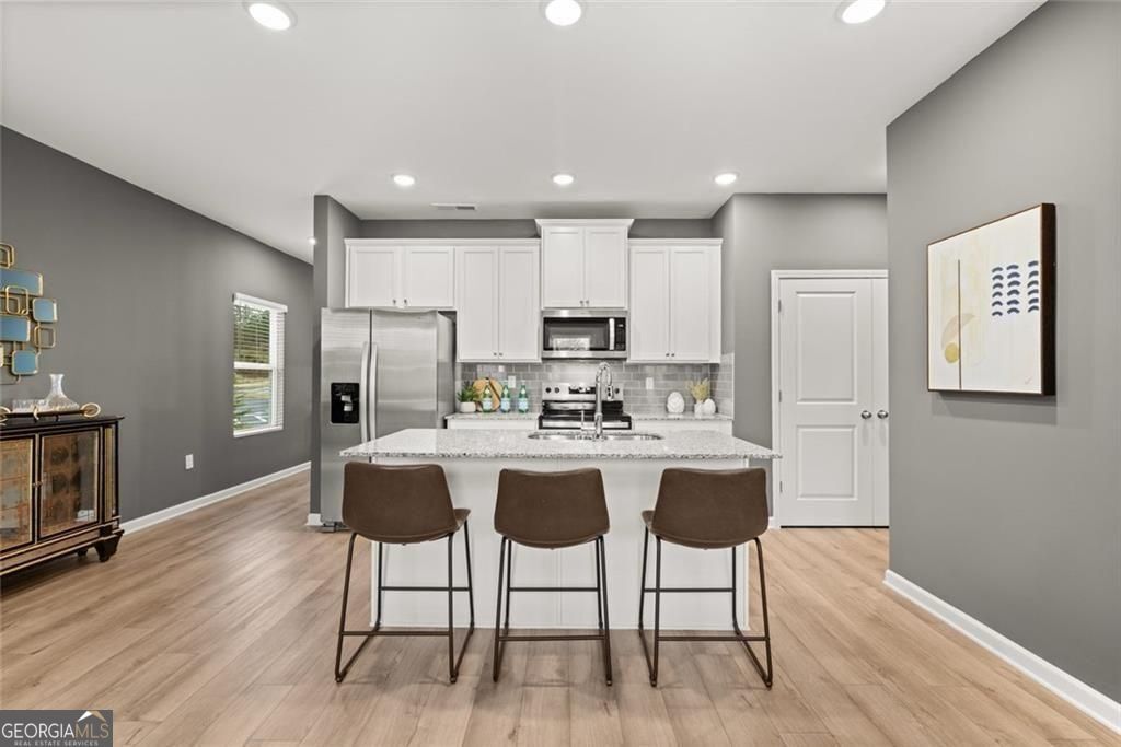 Quick Move-In Welcome to our brand-new construction townhomes, where modern elegance meets stylish functionality. These exquisite townhomes offer a perfect blend of comfort and sophistication, featuring: - **3 Spacious Bedrooms** - **2.5 Baths** - **Convenient 2-Car Garages** - **Full Brick Exteriors** Explore the Edmund plan, designed with an open kitchen concept that boasts: - 42-inch cabinets - Gleaming granite countertops - Chic modern finishes The kitchen seamlessly flows into the family room, creating an inviting space for gatherings and daily living. The owner's suite is a serene retreat with a double vanity and a spacious shower. Our community is designed for an active lifestyle with amenities such as: - A walking trail - A sparkling pool - A relaxing cabana Enjoy the best of both worlds with a tranquil home environment and proximity to vibrant attractions. Located just minutes from I-75 and I-675, our community offers easy access to the Stockbridge Amphitheater and local shopping, dining, and entertainment options. An effortless 14-16-minute commute takes you to Atlanta International Airport, making travel a breeze. Nearby attractions include the exciting Spivey Splash Water Park, perfect for family fun. Come and tour our beautiful new community and experience the exceptional lifestyle that awaits you at Reeves Park. *** Please note that photos are for illustrative purposes and may not represent the actual home.***