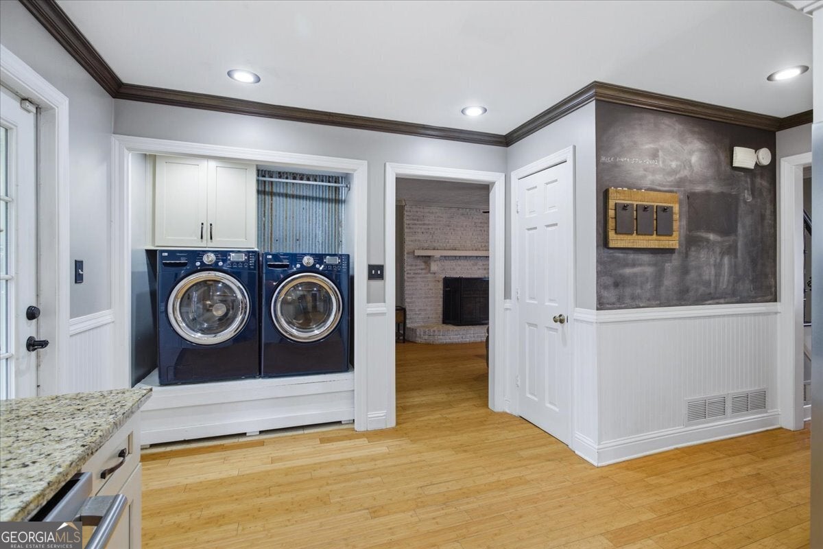 - AppliancesConvection Oven, Dishwasher, Dryer, Electric Water Heater, Microwave, Oven/Range (Combo), Refrigerator, Stainless Steel Appliance(s), Washer