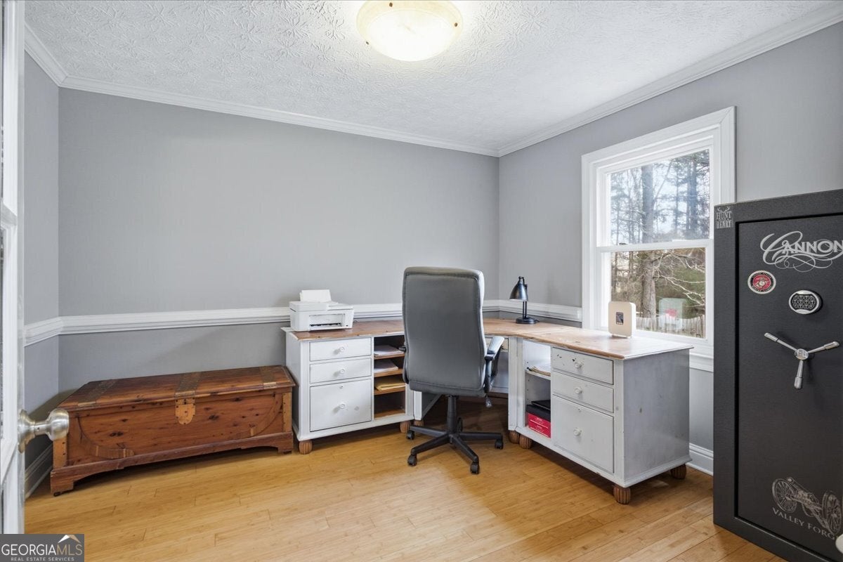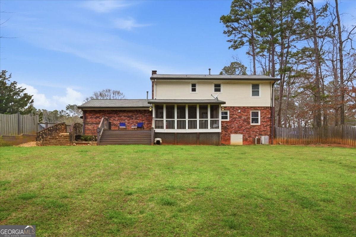 Welcome to your own private retreat in the heart of Fayetteville! Situated on approximately 1.47 beautifully landscaped acres, this move-in ready home offers the perfect blend of charm, space, and outdoor living - all just minutes from shopping, dining, Trilith Studios, Peachtree City, and Atlanta. From the inviting covered front porch, step into a welcoming entry foyer and discover hardwood flooring throughout the main level. The thoughtfully designed floor plan includes: separate formal dining room | dedicated office/flex space (perfect for remote work) | spacious family room with stunning brick surround fireplace | half bathroom and convenient laundry closet | bonus room for added versatility. The bright and functional kitchen is a true standout, featuring a copper farmhouse sink, stainless steel appliances, abundant cabinetry, and a window overlooking the private backyard. Upstairs you'll find four spacious bedrooms and two full bathrooms, including a beautifully appointed primary suite with: walk-in closet | double vanity | tiled walk-in shower with built-in bench. Step outside and experience what truly sets this property apart. The screened porch and deck overlook a fully fenced backyard, creating the perfect space for entertaining or relaxing. Follow the stone stairs down to a peaceful backyard retreat featuring: water feature | stone seating area ideal for a fire pit | large storage shed at the end of the driveway | turn-around driveway for added convenience. With nearly 1.5 acres, mature landscaping, and multiple outdoor living spaces, this property offers privacy, functionality, and character rarely found at this price point in Fayette County. If you've been searching for: Fayetteville GA homes for sale with acreage, homes with screened porch in Fayetteville, 4 bedroom homes in 30214, homes with fenced yard and outdoor living space, move-in ready homes near Trilith and Peachtree City, this is the one! Prime location. Private setting. Incredible outdoor living. Schedule your private showing today - homes with this much space and personality don't last long in Fayetteville!