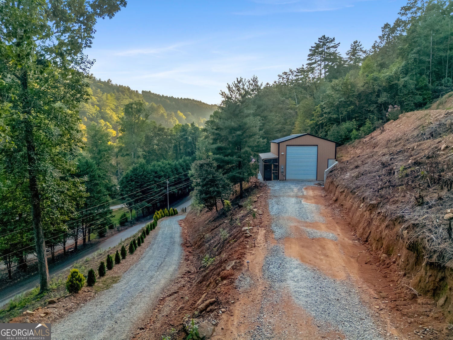 9.3 acres of UNRESTRICTED land in Rabun County...no deed restrictions. Two lots have been cleared and created to build two homes. A beautiful lot overlooking Stekoa Creek. You can hear the year-round running creek from the property. There is a seasonal view of a waterfall. There is a waterfall on the property near the lower level building site. A beautiful and spacious permitted RV Camper/Workshop has been built to accommodate an RV and workshop. The spacious workshop has water, septic, electricity, washer/dryer hookup and fiber optic internet. Create your own family compound...a home for you and a home for guests. And for those friends who want to bring their RV, they too have a place to park and enjoy the beauty of Rabun county. There are two driveways to enter the property. The first leads to the lower lot near the waterfall. The second driveway is higher on the mountain and has a switchback to access the build site. The RV Camper/Workshop is situated between the two sites. Let your imagination run wild with the possibilities this lot affords. AND it's not far from 441 and access to Clayton's shops and restaurants.