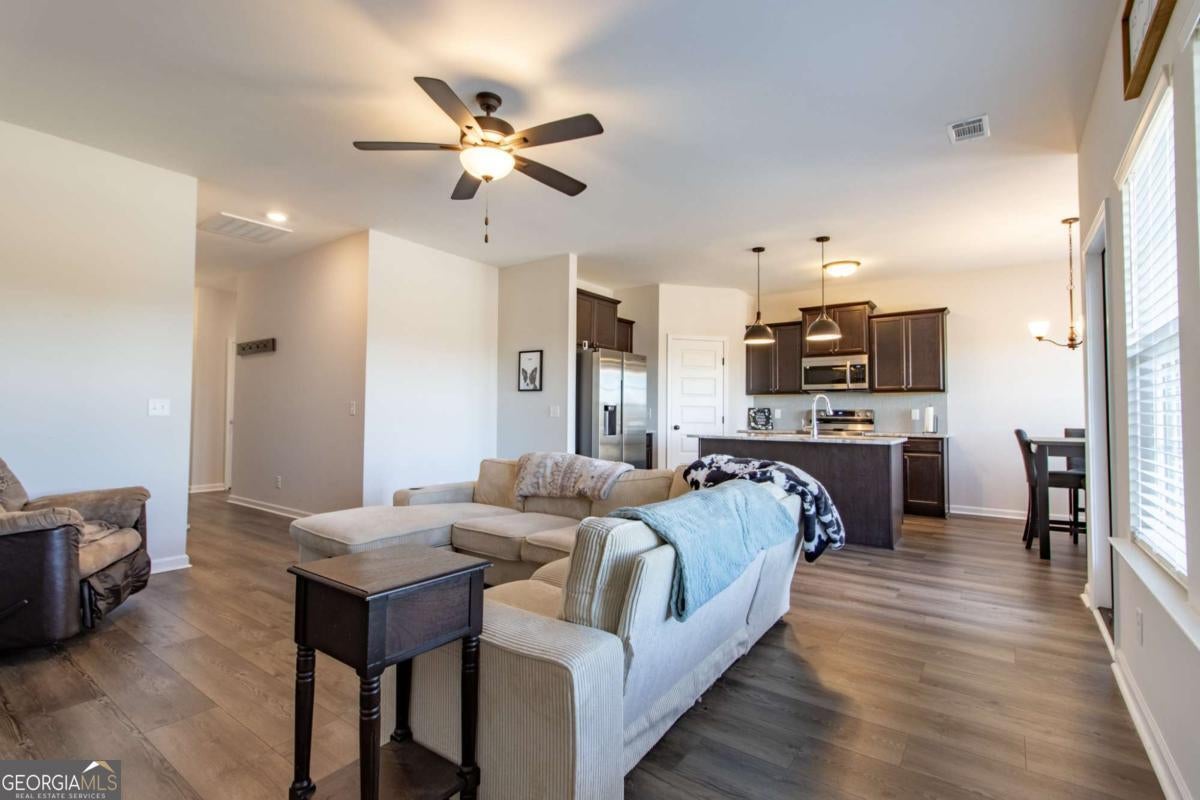 Charming & Modern Living on Nearly an Acre! Come and see this beautifully maintained and practically brand new home at 1879 Arnold Dr SE! Built in 2024, this 3-bedroom, 2-bathroom residence offers 1,380 sq ft of thoughtfully designed living space. As you enter, you'll be greeted by warm, neutral tones and attractive laminate flooring that guides you into the heart of the home. The open-concept layout creates a seamless flow between the great room, dining area, and kitchen, making the space feel bright and perfect for gatherings. The kitchen is a highlight, featuring a functional center island, a convenient breakfast bar for casual meals, ample pantry storage, and a full set of included appliances. The private primary bedroom serves as a peaceful retreat, complete with a large walk-in closet and an en-suite bathroom. The two secondary bedrooms are nicely sized with plush carpeting, offering versatile space that can easily adapt to your needs-whether as a guest room, a creative studio, or a productive home office. One of the best features of this property is the incredible outdoor space. Sitting on a 0.79-acre lot, you'll have abundant room for activities and gardening. Enjoy the outdoors from either the charming front porch or the covered back porch. Additional features include a dedicated laundry room and an attached 2-car garage for parking and storage. This wonderful home is ready for its new owners. Come and experience it for yourself