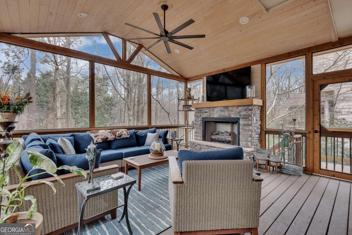 Welcome home to this beautifully maintained residence located in Deerlake, a well-established swim/tennis community known for its clubhouse and lake, with convenient proximity to Medley at Johns Creek Town Center coming later this year. All four bedrooms are located upstairs, including a spacious primary suite with a large bath featuring a jetted tub, separate shower, and dual vanities. Two secondary bedrooms share a convenient Jack-and-Jill bath, and a fourth bedroom offers additional flexibility for family, guests, or a home office. The bright white kitchen features granite countertops, stainless steel appliances, a center island, and an open view to the inviting fireside family room, creating an ideal layout for everyday living and entertaining. Enjoy outdoor living year-round on the fantastic screened porch with a stacked stone fireplace, plus an extended deck perfect for grilling. The main level showcases detailed crown molding and hardwood floors. The private backyard is thoughtfully landscaped with low-maintenance flowering trees and shrubs, along with a serene koi pond and a vegetable garden creating a gardener's paradise. Additional highlights include new windows and two new HVAC systems for added comfort and efficiency. Zoned for highly rated public schools, this home offers space, updates, and desirable community amenities in a prime location.