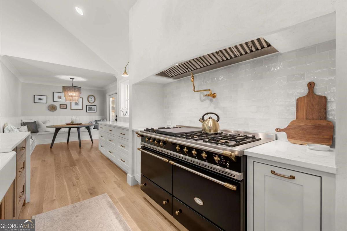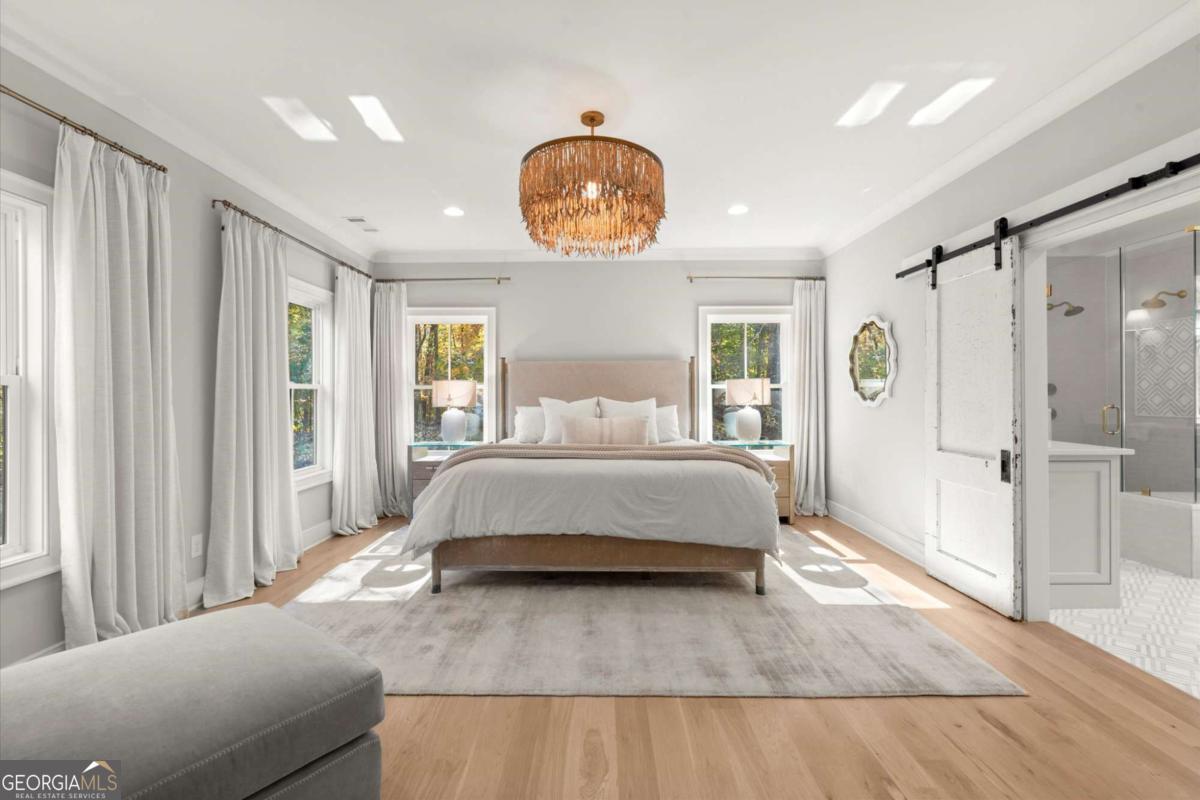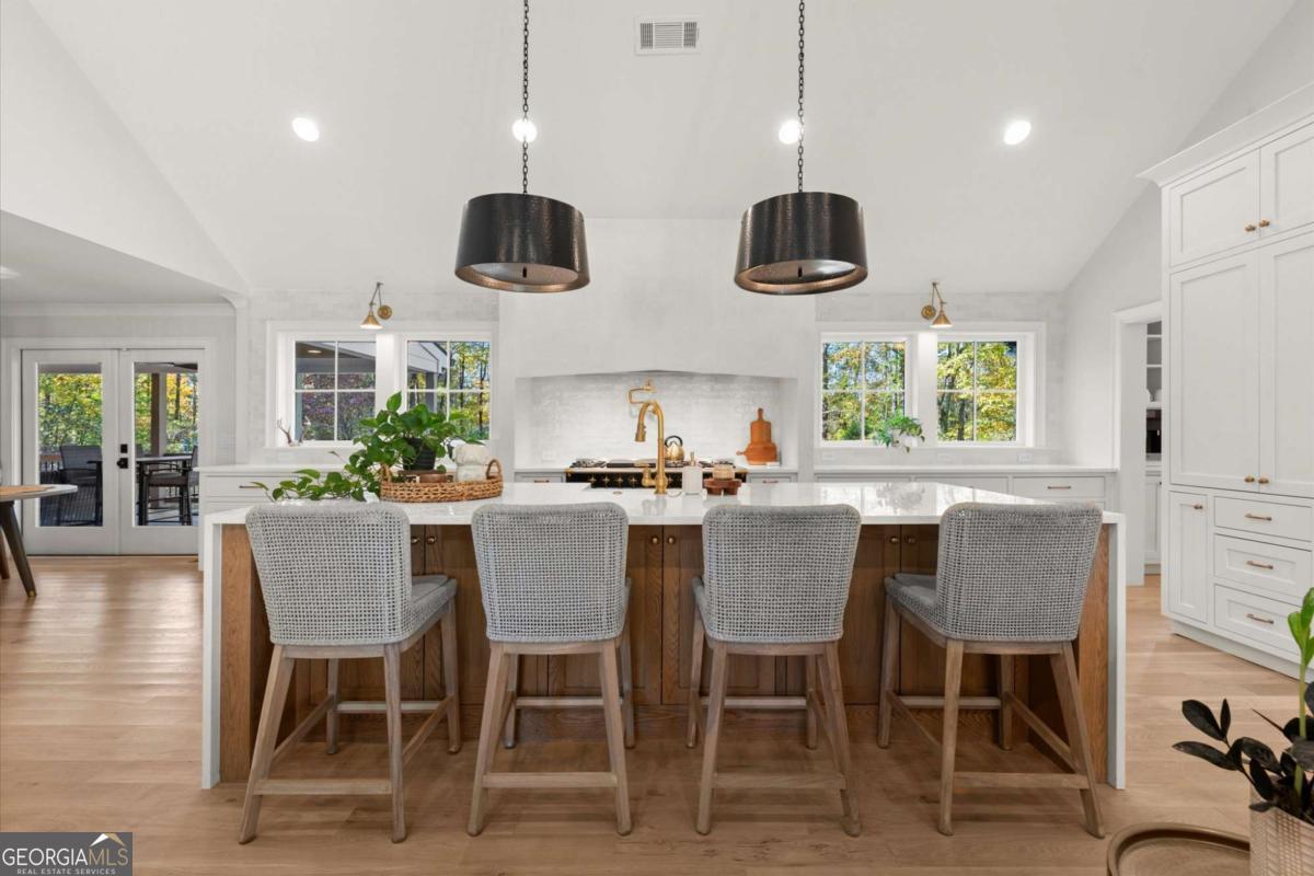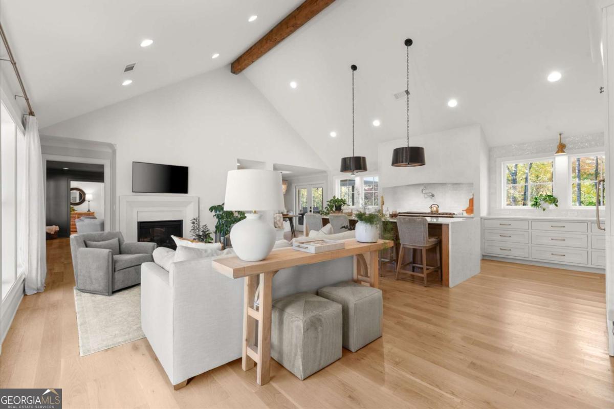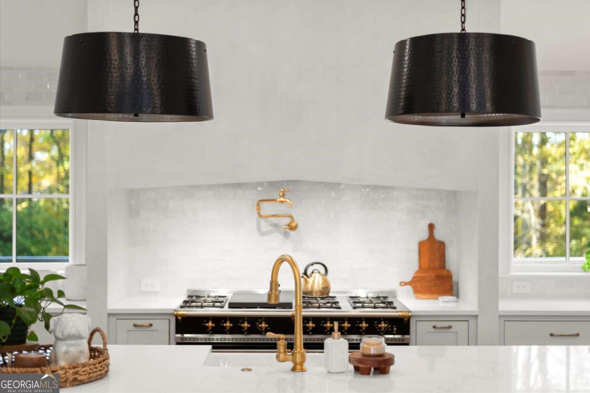 A Modern Farmhouse Revival with lots of heart and soul! Originally a 1960's Ranch, reimagined in 2023 and now a 2025 showpiece...this one-of-a-kind property perfectly blends timeless charm with modern sophistication. Tucked away on 5+ private acres in one of Southeast Cherokee's most coveted locations, the setting feels like a step back in time - a long gravel drive meanders past green pastures, miniature farm animals, and mature shade trees before revealing the stunning farmhouse that awaits. Set on a gently elevated, level lot with sweeping views of the quiet landscape, this home offers a lifestyle of peaceful seclusion just minutes from everything. Spring and Fall bursts with color as ornamental trees and flowering shrubs awaken across the property - a dream retreat for those who crave serenity, nature, and a sense of "living off the grid" without sacrificing convenience. Inside, discover a thoughtfully reimagined design centered around open-concept living and distinguished detail. The vaulted fireside family room, expansive island kitchen, and cozy study set the tone for connection and comfort. The chef's kitchen is a showstopper - featuring quartz countertops, designer vent hood, and a Lacanche range, complemented by a scullery with Miele built-in coffee maker and abundant prep space. The main level primary suite offers tranquil views and a spa-inspired bath with heated tile floors, while a brand-new studio suite (with private entry, mini kitchen, full bath, laundry hookups, and garage) creates the ideal setup for multigenerational living, guests, or a teen retreat - all on one level. Upstairs, two additional bedrooms and a full bath provide flexibility and comfort. The terrace level adds more living space with a recreation area, home gym, and full bath. Step outside to your private outdoor oasis - a covered porch with stone fireplace overlooking a heated saltwater pool and spa, perfect for relaxing as deer wander by. A double-gated entry welcomes you home to total privacy. This property is more than a home - it's yours for the taking and the making...craft your perfect lifestyle here!