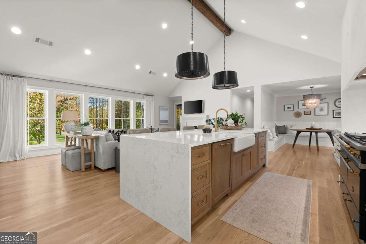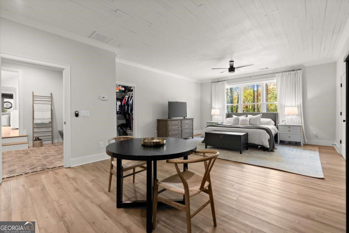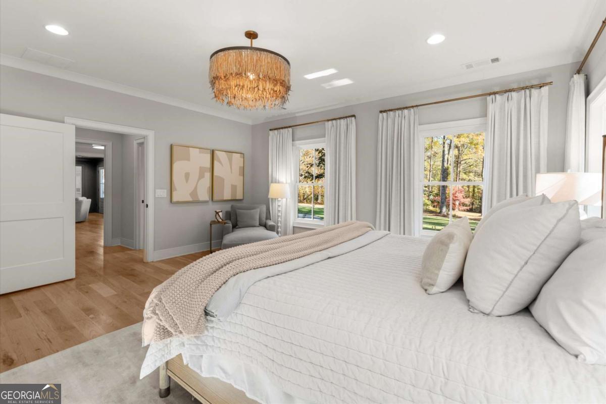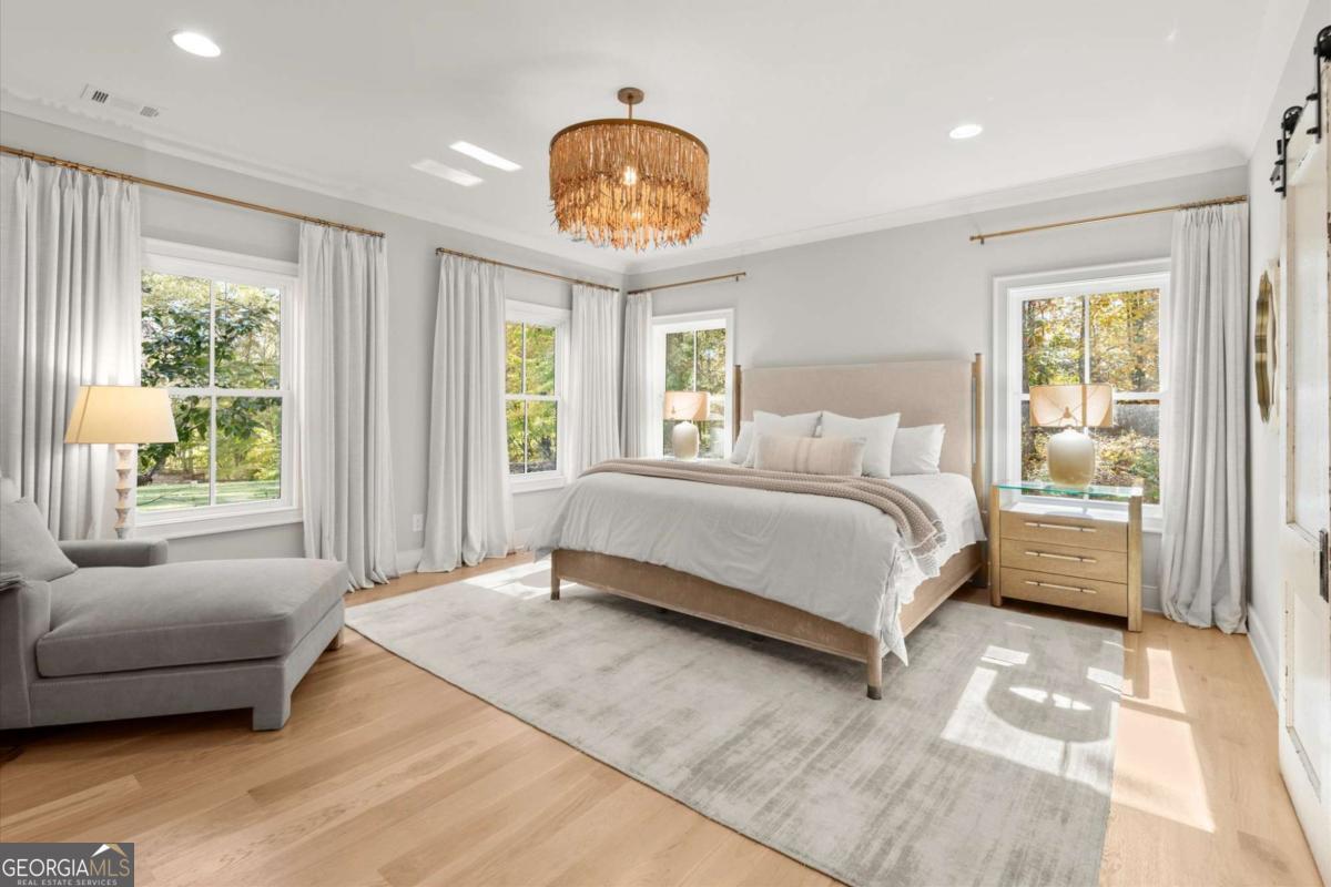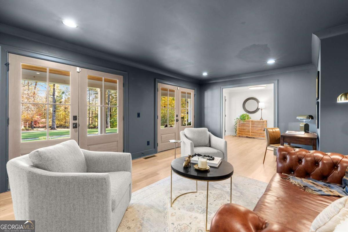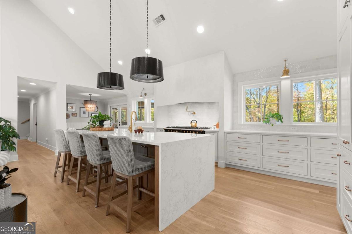 A Modern Farmhouse Revival with lots of heart and soul! Originally a 1960's Ranch, reimagined in 2023 and now a 2025 showpiece...this one-of-a-kind property perfectly blends timeless charm with modern sophistication. Tucked away on 5+ private acres in one of Southeast Cherokee's most coveted locations, the setting feels like a step back in time - a long gravel drive meanders past green pastures, miniature farm animals, and mature shade trees before revealing the stunning farmhouse that awaits. Set on a gently elevated, level lot with sweeping views of the quiet landscape, this home offers a lifestyle of peaceful seclusion just minutes from everything. Spring and Fall bursts with color as ornamental trees and flowering shrubs awaken across the property - a dream retreat for those who crave serenity, nature, and a sense of "living off the grid" without sacrificing convenience. Inside, discover a thoughtfully reimagined design centered around open-concept living and distinguished detail. The vaulted fireside family room, expansive island kitchen, and cozy study set the tone for connection and comfort. The chef's kitchen is a showstopper - featuring quartz countertops, designer vent hood, and a Lacanche range, complemented by a scullery with Miele built-in coffee maker and abundant prep space. The main level primary suite offers tranquil views and a spa-inspired bath with heated tile floors, while a brand-new studio suite (with private entry, mini kitchen, full bath, laundry hookups, and garage) creates the ideal setup for multigenerational living, guests, or a teen retreat - all on one level. Upstairs, two additional bedrooms and a full bath provide flexibility and comfort. The terrace level adds more living space with a recreation area, home gym, and full bath. Step outside to your private outdoor oasis - a covered porch with stone fireplace overlooking a heated saltwater pool and spa, perfect for relaxing as deer wander by. A double-gated entry welcomes you home to total privacy. This property is more than a home - it's yours for the taking and the making...craft your perfect lifestyle here!