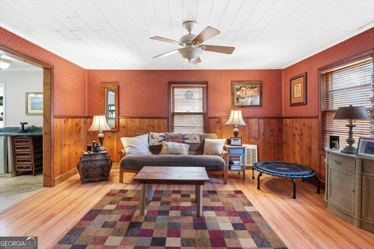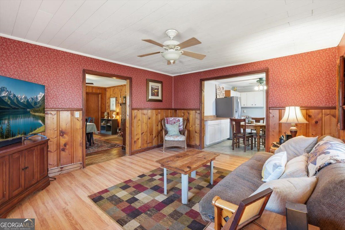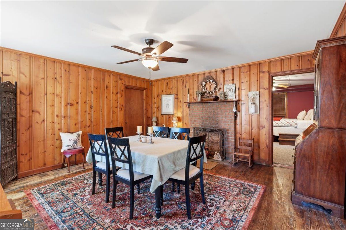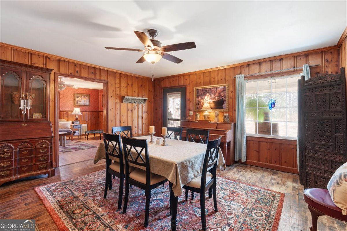 Discover a rare opportunity to own 6.3 beautiful, partially wooded acres in sought-after North Fayette featuring two homes and endless potential. Held in the same family for over 60 years, this unique property offers the perfect blend of character, flexibility, and future opportunity. Situated on two corner lots just one parcel off the high-visibility intersection of GA Hwy 138 and Hwy 314, and consisting of two parcels being sold together, the setting provides both privacy and excellent road frontage with strong visibility for possible future commercial consideration. The main residence, approximately 1,700 square feet, offers four bedrooms and two bathrooms with timeless mid-century touches including classic Pickwick paneling and original pine hardwood floors (currently beneath laminate in some rooms). The spacious kitchen features stainless steel appliances and ample cabinetry and countertop space, while the inviting den showcases a wood-burning fireplace, creating a warm and welcoming gathering space. A charming laundry room and mudroom serve as a functional bonus area overlooking the private, fenced backyard. Outdoors, enjoy a generous patio perfect for entertaining or relaxing evenings under the stars. A charming paver walkway leads to a second patio area, an ideal spot for roasting marshmallows around a cozy evening fire or create the perfect backyard BBQ setup. The main home also features a new water heater for added peace of mind. In addition to the main home, a separate 2-bedroom, 1-bath cottage of approximately 816 square feet provides exceptional versatility, ideal for an in-law suite, multi-generational living, guest quarters, or an income-producing rental. The cottage features a charming kitchen with engineered hardwood floors and an original farmhouse sink that adds warmth and character, complete with pantry shelving and stove, along with its own washer and dryer, a new electrical box and exterior meter installed in 2025, and a private gravel driveway for convenient, separate access. Each home is serviced by its own septic system. Both residences draw from a natural spring water system that has been in place for over 100 years, faithfully serving the property for generations. An in-ground fire pit enhances the outdoor experience, and additional features include a tool shed and an extra storage shed, offering ample space for equipment, hobbies, or storage needs. This property truly offers the best of both worlds: a peaceful rural atmosphere surrounded by nature, yet just minutes from Fayetteville's charming downtown square and historic streetscapes, providing an easy escape from the big-city bustle of nearby Atlanta. Enjoy the serenity of country living while remaining less than 30 minutes to Downtown Atlanta, approximately 20 minutes to Hartsfield-Jackson Atlanta International Airport, and just 10 minutes from I-85 and I-285 for easy commuting. You're also only 15 minutes from Trilith Studios, designed for the film and creative industries, this unprecedented community features filmmaking studios, homes, shopping and dining, as well as scenic trails and parks, making this location as convenient as it is inspiring. Whether you envision a private estate, multi-generational retreat, or strategic investment opportunity, this North Fayette property delivers location, flexibility, and long-term potential. All its missing is you!