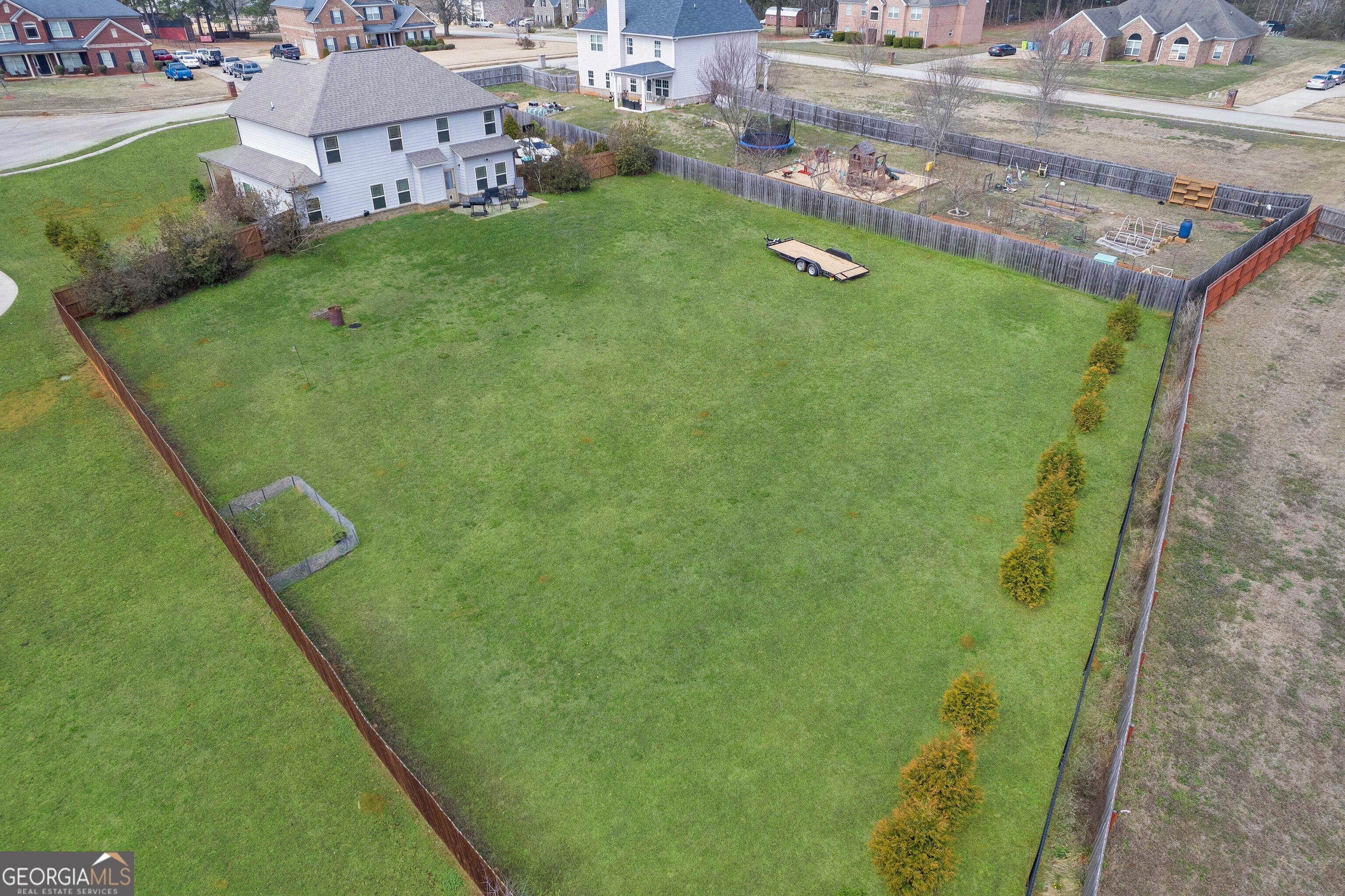 NO HOA! Spacious 5-Bedroom Home in Ola School District! Welcome home to the perfect blend of space, style, and freedom! Nestled in the highly sought-after Ola School District, this stunning residence offers the rare luxury of No HOA on a sprawling lot. Make a grand entrance through the two-story foyer, leading to a versatile floor plan featuring 5 bedrooms (or 4 bedrooms plus a massive bonus room) and a spacious upstairs loft-perfect for a home office or media retreat. The primary suite is conveniently located on the main level, offering a private sanctuary away from the secondary bedrooms. The heart of the home is an eat-in kitchen featuring plenty of prep space and an included refrigerator. Step outside to a large, fully fenced backyard, ready for pets, gardening, or a future pool. Located just 10 minutes from Publix and a quick 20-minute drive to the historic McDonough Square, you get the peace of suburban living without sacrificing convenience.