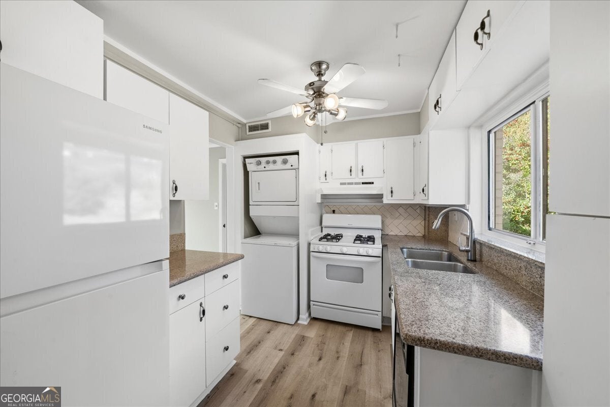 Don't miss this top-floor, light-filled corner unit in Ardmore Sheryl, located in the heart of Buckhead's Ardmore Park neighborhood. Enjoy an open-concept layout, new LVP floors, fresh paint, new windows, and treetop views. The kitchen features white cabinets, a pantry, granite counters, gas range, new refrigerator, and washer/dryer. There are two bedrooms with ceiling fans and a full bath, plus a spacious family room open to dining. The building offers acoustically sound concrete construction for quiet living, water and landscaping included in the HOA, and is pet-friendly with a nearby greenspace and dog area. Walk to parks, trails, shopping, and restaurants. Investors welcome-no rental restrictions (minimum one-year lease).