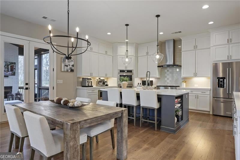 280 Dodd Lane - Thoughtfully Designed Alpharetta Living Beautifully crafted and better than new, 280 Dodd Lane offers the space, style, and functionality today's Alpharetta buyers want most. This newer construction home features a 3-car garage, a bright, open-concept floor plan with expansive living areas that flow seamlessly into a stunning chef's kitchen complete with double-stacked quartz countertops, double ovens, gas cooktop, and a generous walk-in pantry - ideal for both everyday living and effortless entertaining. Convenience meets thoughtful design with a well-planned mudroom entry from the garage, a dedicated main-level office or flex space, and an elegant separate dining room featuring classic wainscoting and easy access to the icemaker and beverage refrigerator. Step outside to the custom screened porch with a cozy fireplace - the perfect year-round space for relaxing or entertaining. Upstairs, a spacious media room provides additional living space, while generously sized bedrooms offer comfort for family and guests. The luxurious owner's suite features a tray ceiling, spa-like bath, and an impressive oversized walk-in closet with direct access to the laundry room. Refined details such as cove molding, abundant natural light, and modern finishes create a home that feels both warm and sophisticated. The unfinished basement with high ceilings offers incredible potential for future expansion, whether you envision a home gym, recreation room, or additional living space. Situated on a large, level fenced backyard, the outdoor space provides plenty of room for entertaining, play, or future enhancements. Enjoy a peaceful setting just minutes from top-rated schools, parks, shopping, dining, and everything that makes Alpharetta one of the most desirable places to live. Move-in ready and impeccably maintained, this exceptional home offers the perfect blend of luxury, comfort, and room to grow.