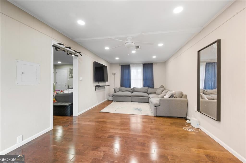 PROPERTY QUALIFIES FOR UP TO $10,000 IN DOWN PAYMENT ASSISTANCE. ASK LISTING AGENT FOR MORE DETAILS. Gorgeous Renovation in an Established Community. Step inside this beautifully updated home featuring brand-new engineered hardwood floors, thermal Payne windows, updated lighting, and renovated bathrooms with stylish tile surrounds. Enjoy a stunning kitchen with wood cabinets offering soft-close drawers/doors, granite countertops, tile backsplash, and stainless-steel appliances. The spacious converted garage creates an extra den/flex space-perfect for a media room, office, or playroom. Recessed lighting throughout brings a warm, modern touch. Outside, you'll love the oversized, private fenced yard that extends beyond the treeline-ideal for pets, entertaining, and quiet relaxation. Plus, a brand-new deck is ready for gatherings! Some photos have been virtually staged. Perfect first time home buyer or investor property. Move-in ready, beautifully upgraded, and priced with today's buyer in mind-don't miss this one!