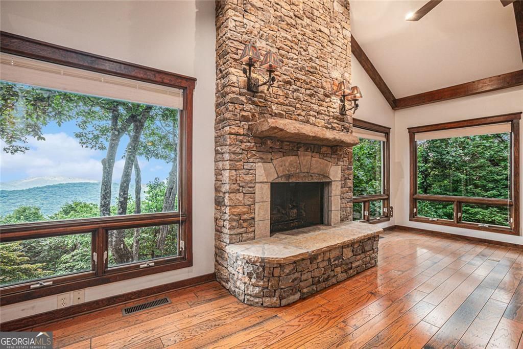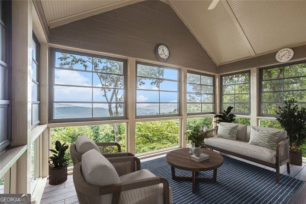 Perched high above it all, this stunning mountain retreat offers a truly unique floor plan designed to capture breathtaking, year-round views from nearly every angle. From the moment you arrive, you'll appreciate the thoughtful layout and the flexibility it provides for both everyday living and hosting guests. Inside, warm hardwood floors flow throughout the main living areas, creating an inviting and timeless feel. The massive family room/den is the heart of the home - perfect for game days, movie nights, or gathering with friends after a day of enjoying the outdoors. Large windows frame the gorgeous mountain scenery, bringing the beauty of nature inside. The open deck is ideal for soaking in the sweeping views and fresh mountain air, while the covered four-seasons room allows you to enjoy the scenery comfortably no matter the weather. Morning coffee, evening sunsets, or cozy winter evenings - this home delivers the perfect backdrop year-round. Downstairs, four spacious bedrooms in the basement provide incredible functionality and privacy for visitors, extended family, or even a multi-generational living setup. With two driveways, a garage, and additional covered parking, there's plenty of space for guests and recreational vehicles alike. If you've been searching for a mountain property that blends character, space, and unforgettable views, this one checks every box. Some photos have been virtually staged to give you design ideas of what the space can be used for. Also included are summer aerial drone shots to emphasis how private this setting is. This is a once in a life time opportunity to own these MILLION DOLLAR views!! Priced to sell!!