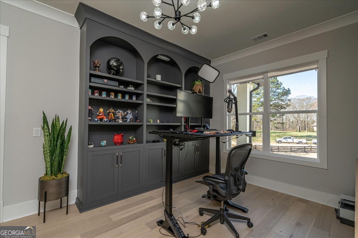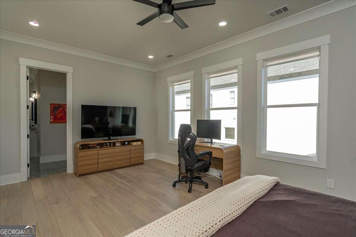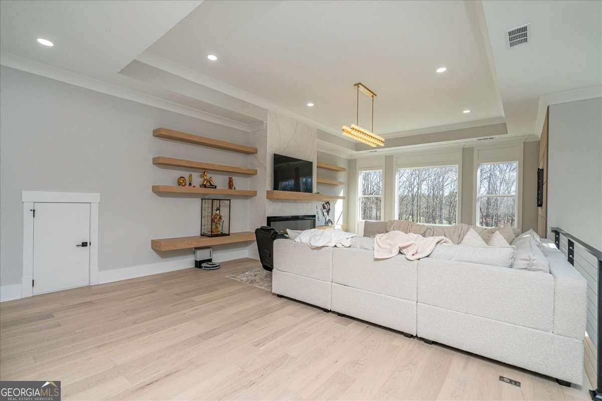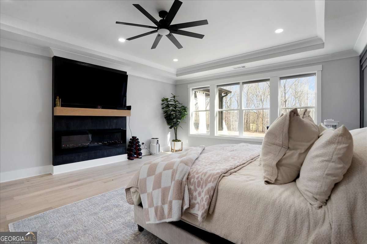 No build timeline, no delays, no unfinished selections. This 2024 custom home is complete, gated, and ready to close on a private one-acre lot with no HOA. The three-car garage includes dedicated parking for an RV or boat. Ten-foot ceilings and hardwood flooring run throughout. The kitchen is built around a large island, walk-in pantry, and a full Thermador 48-inch stainless suite, opening directly into the great room with a fireplace. The main-level owner's suite has a fireplace, soaking tub, frameless glass shower, and a walk-in closet designed for two. A second main-level bedroom has its own private bath. Upstairs, a second owner's suite delivers a full bath and walk-in closet finished to the same standard. Not a guest room. A suite. A second living area with a wet bar adds space for entertaining or relaxing. Two additional bedrooms and a dedicated office with custom built-in cabinetry provide flexibility for work, guests, or personal use. The one-acre lot is level, fenced, and gated. A covered porch and patio extend the living space for year-round use. Additional features include spray foam insulation, a tankless water heater, Energy Star certification, home automation, a security system, and frameless glass showers throughout. One acre. No HOA. No wait.