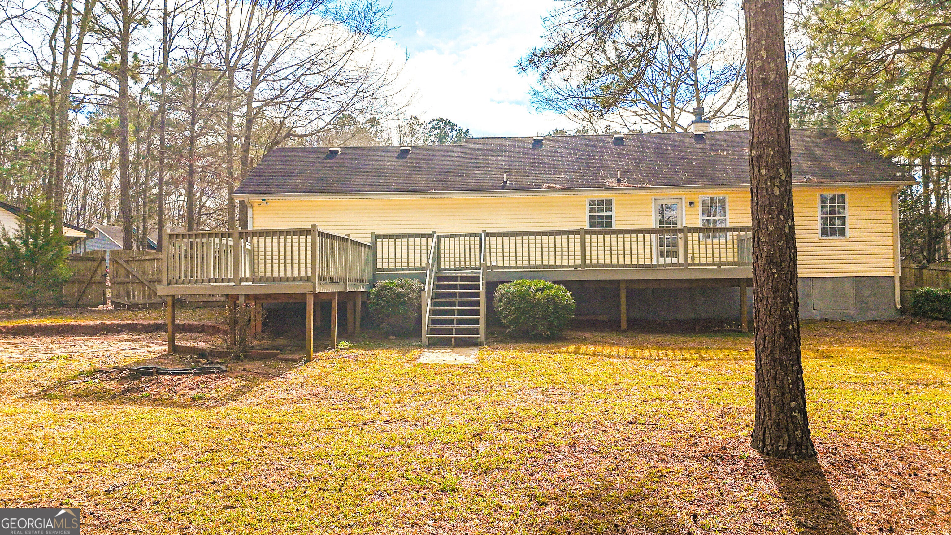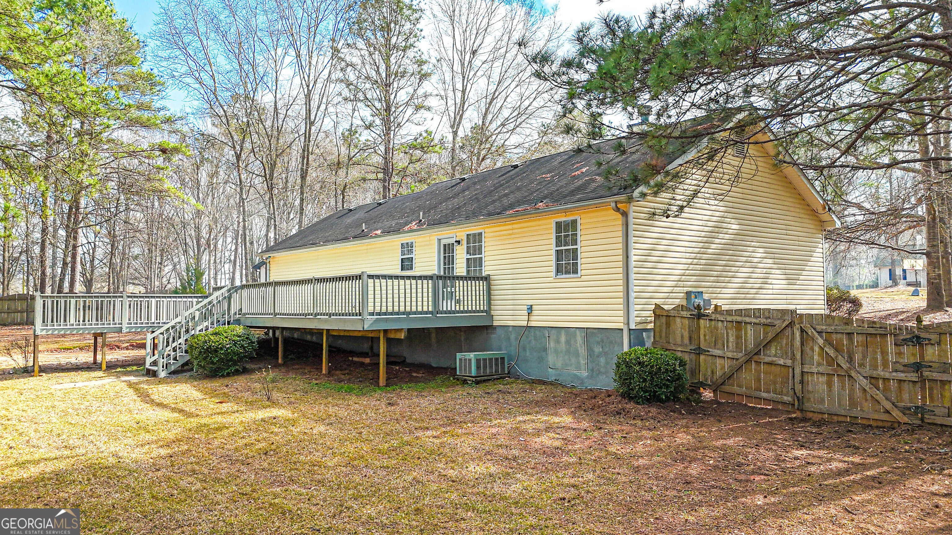 Welcome home to this updated 3 bedroom, 2 bath ranch nestled in Butts County on over half an acre with no HOA restrictions. Offering the perfect blend of comfort, space, and freedom, this property is ideal for anyone looking to enjoy peaceful living without sacrificing convenience. From the moment you arrive, the covered front porch invites you to slow down and stay awhile. The attached two-car garage provides everyday ease, while the expansive fenced backyard creates the perfect backdrop for entertaining, pets, or simply enjoying the outdoors. A raised deck overlooks the yard and a storage shed adds even more functionality. Step inside to a bright and welcoming family room featuring high vaulted ceilings and a cozy fireplace that anchors the space beautifully. The open flow leads seamlessly into the dining area and kitchen, complete with stainless steel appliances. Just off the kitchen, the laundry and mud room offers built-in cabinetry for added storage and organization. The primary suite is situated off the family room and features an en suite bath. Two secondary bedrooms and a full bath provide flexibility for family, guests, or even a home office.With generous outdoor space, thoughtful updates, and no HOA, this property offers the kind of freedom and functionality that's hard to find. If you've been looking for space to breathe and a place that truly feels like home, this is it.