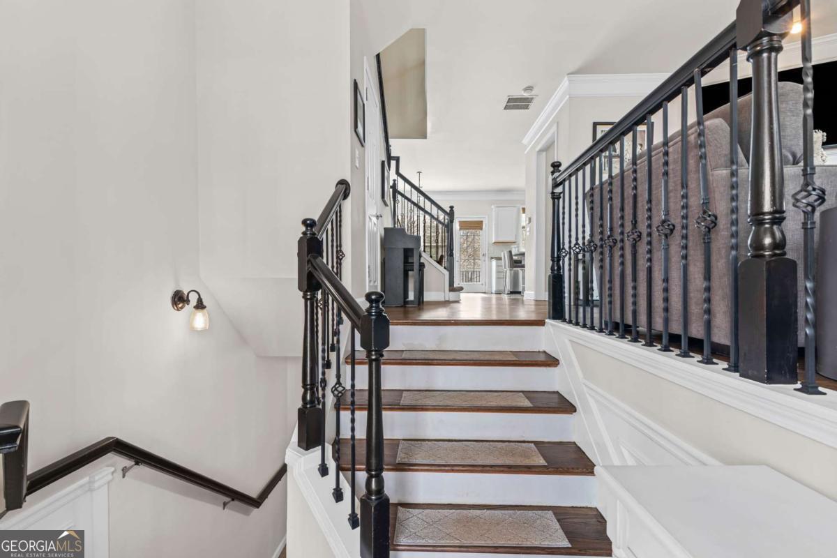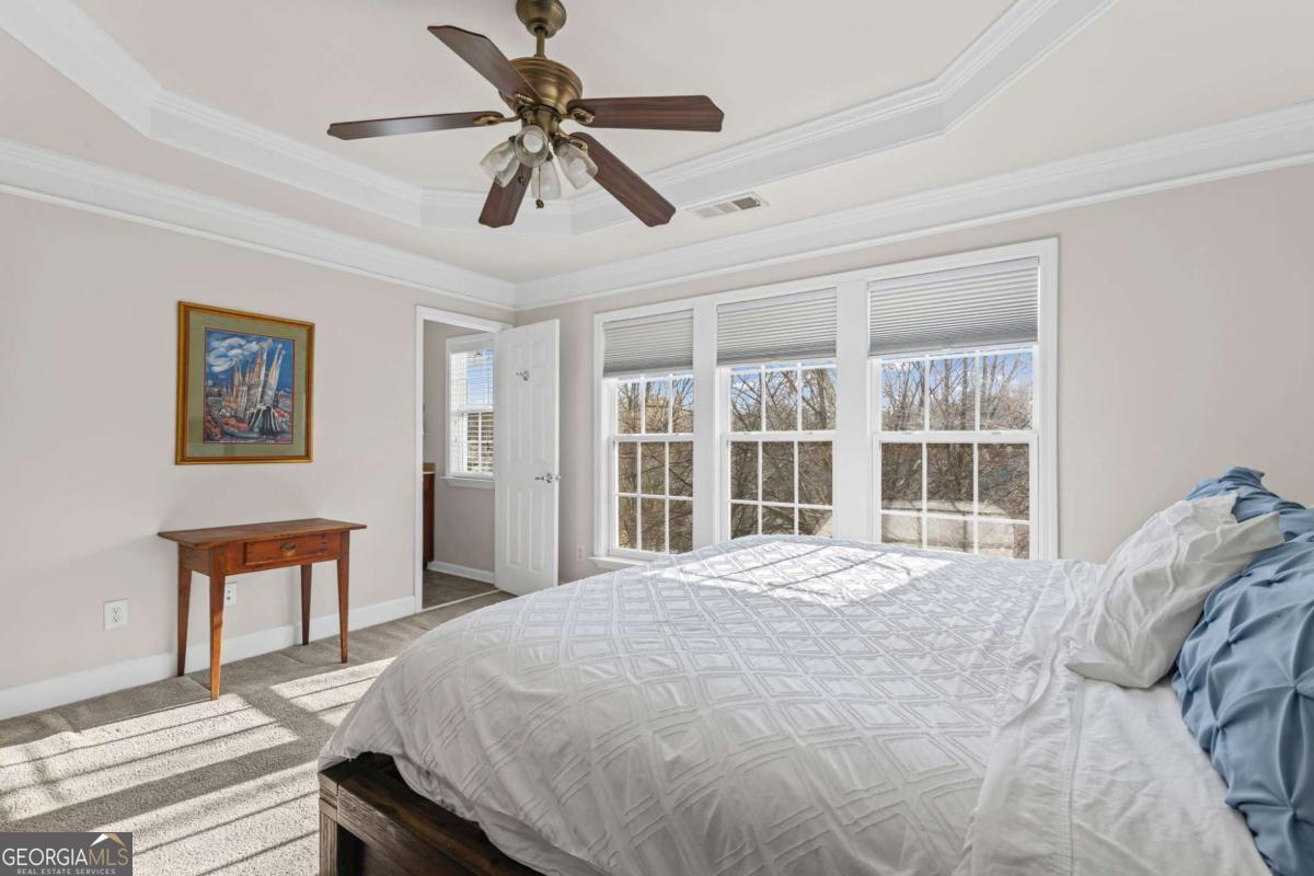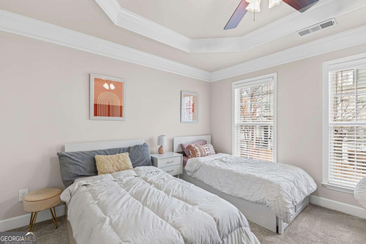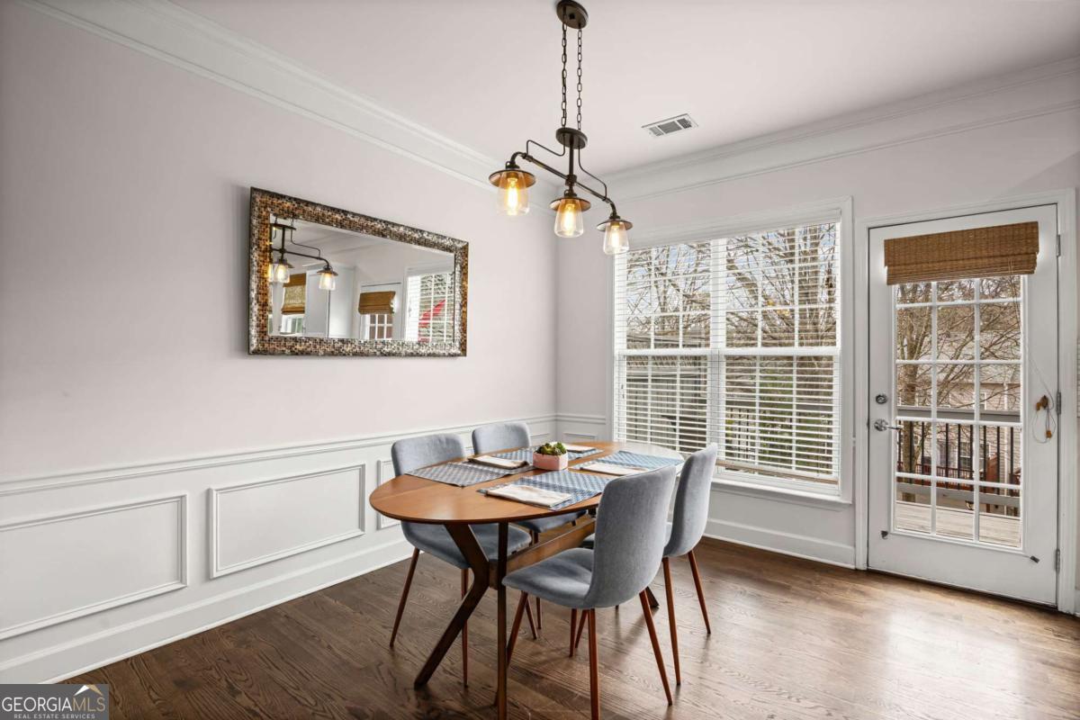 So much to enjoy living in one of Brookhaven's most desired locations--VIEWS AT LENOX CROSSING, conveniently located to Brookhaven retail & restaurants, I-85, Lenox, and Phipps Plaza. This meticulously maintained townhome features fresh paint, hardwood floors, a separate guest suite, and a sun-filled open living concept that flows to a private entertaining deck and flexible floor plan. The bright, spacious layout features an open living room with a gas starter fireplace, an oversized owner's retreat with a tray ceiling and large walk-in closet, a hall laundry and additional storage closets, and a spacious secondary bedroom with a walk-in closet and a dedicated bath on the upper level. A third bedroom with a full tiled bath on the terrace level offers flexibility for guests, a home office, or additional living space. The kitchen is designed for both function and style, offering a gracious separate dining area and featuring granite countertops, a large island, stainless steel appliances, and ample cabinet storage. A two-car rear-entry garage affords additional storage and driveway parking. Step outside to enjoy the expansive private deck for entertaining guests and relaxing. Located in a gated-access community, residents enjoy a saline swimming pool and a private dog park. HOA covers landscaping, pool, termite protection, the dog park, gate, roof, and exterior paint, creating a true low-maintenance lifestyle and prime access to all that Brookhaven and Atlanta offer. Just 3 miles to downtown and easy access to nearby hospitals and the CDC. Ample guest parking is available in the community.