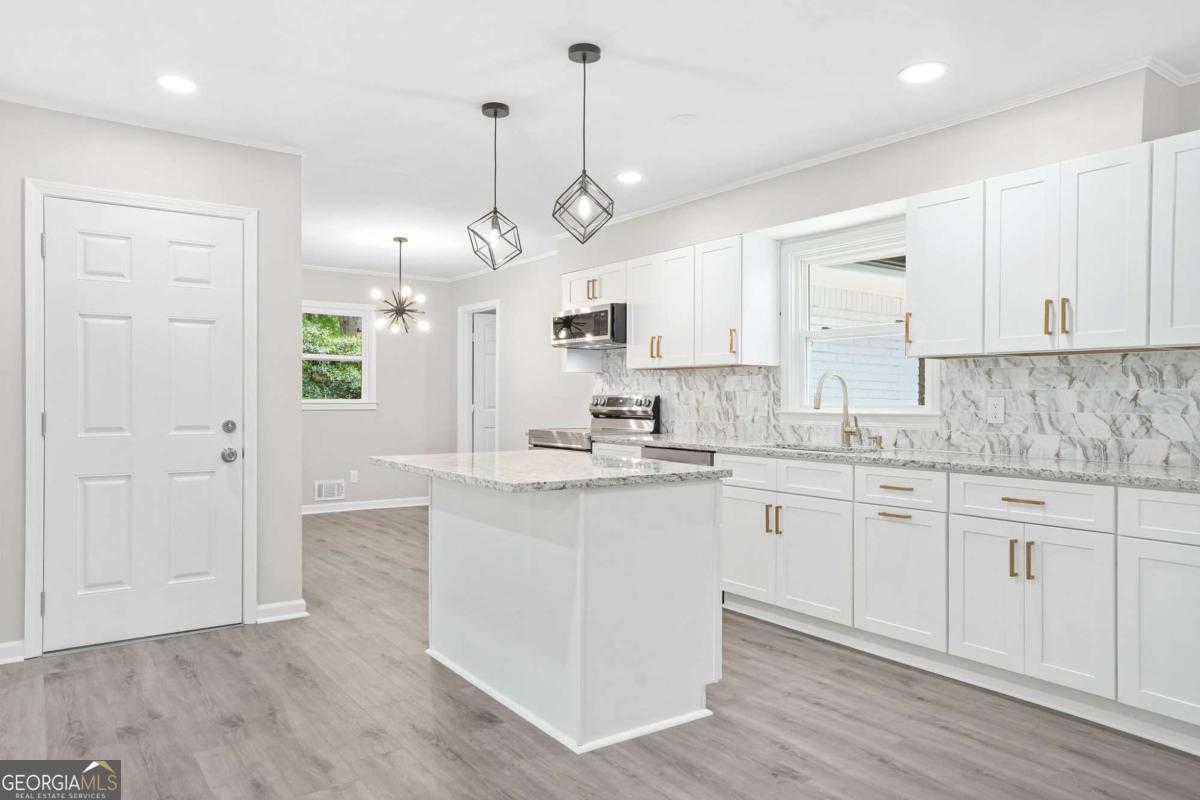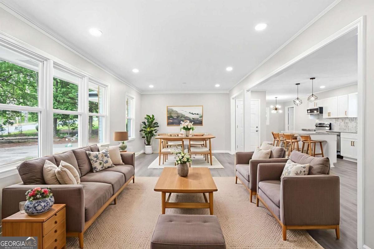 Totally Reimagined Mid-Century Modern Ranch in Prime Tucker Location! Welcome home to this beautifully reimagined, all-brick Mid-Century Modern ranch-expertly renovated and perfectly positioned on a quiet cul-de-sac in the highly desirable Livsey Elementary district. Set on a spacious and level 0.35-acre lot, the fully fenced backyard offers rare privacy and flexibility-ideal for entertaining, pets, play, or future expansion. Enjoy morning coffee in the light-filled three-season sunroom or host unforgettable gatherings on the expansive new wood deck overlooking your private retreat. And with NO HOA, you have the freedom to truly make this property your own. Inside, this one-level residence has been thoughtfully upgraded from top to bottom. Wide-plank luxury vinyl flooring flows throughout, complemented by modern lighting with dimmers, updated plumbing fixtures, and new energy-efficient vinyl windows that fill the home with natural light. The chef-inspired kitchen anchors the home with granite countertops, subway tile backsplash, soft-close shaker cabinetry, stainless steel Samsung appliances, and a generous center island designed for connection and conversation. Major systems have been replaced for peace of mind, including a brand-new roof, HVAC system, and water heater-delivering turnkey confidence for today's buyer. Location is where this home truly shines. Zoned for highly regarded Livsey Elementary School, and just minutes from the revitalized dining and entertainment scene in Downtown Tucker, this address offers seamless access to Decatur, Northlake, and major commuter routes including I-285 and I-85. Outdoor enthusiasts will appreciate proximity to Henderson Park, Kelly Cofer Park, and Heritage Golf Links-bringing recreation and lifestyle to your doorstep. This is the perfect blend of timeless architecture, modern upgrades, strong school district positioning, and unbeatable location. Move-in ready. Strategically updated. Exceptionally located. Your Tucker opportunity awaits!
