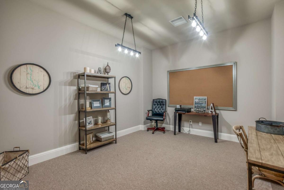 Lakefront office suite featuring multiple private offices, a welcoming foyer, kitchen, and two half baths. The building includes an elevator for convenient access. This terrace-level office offers direct walk-out access to the lake, providing a scenic and professional setting. Monthly HOA fee includes water service. Listing agent is also an owner.