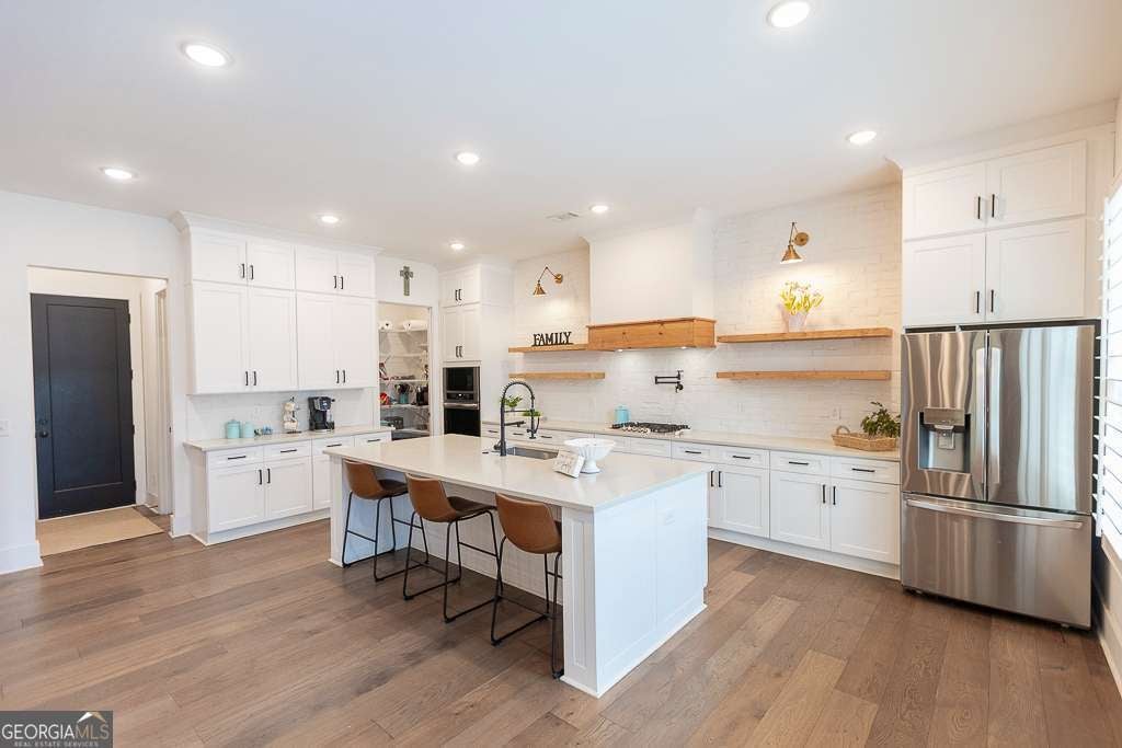 Discover the perfect blend of luxury and lifestyle in this 4 year old and like new construction Farmhouse nestled in the sought-after neighborhood of Chestatee . This exquisite 4 bedroom 3 and a half bath home blends high-end craftsmanship with timeless design in a setting for both entertaining and relaxation. This immaculate home features an oversized primary suite on the main with a beautiful primary bath with soaker tub, a separate dining room and an additional office/den on main level as well. The open concept living space is the heart of the home leading to a huge chef's kitchen with all white cabinets, quartz countertops, cedar shelving and an oversized pantry that everyone needs!! Upstairs you will find 3 bedrooms with two full baths and an enormous media area with barn door that can hold and entertain all family members or the perfect second home office. There are hardwoods through out the main level along with plantation shutters on every window! Great covered porch on back of the home with a fireplace and space to enjoy that cup of coffee or your favorite ballgame on TV while overlooking the fenced in backyard. Don't miss the opportunity to experience the living in the Chestatee community that offers resort -style amenities that include 18-hole golf course, marina with boat slips( based on availability and additional fees apply) . lakeside pavilion, swimming pool with splash pad, tennis and pickle ball courts, hiking trails and so much more! Located right off Hwy 400 convenient to dining, shopping ,North Georgia wineries, seasonal festivities and Lake Lanier!