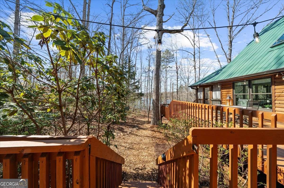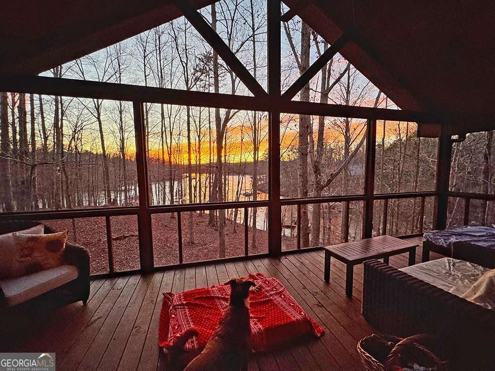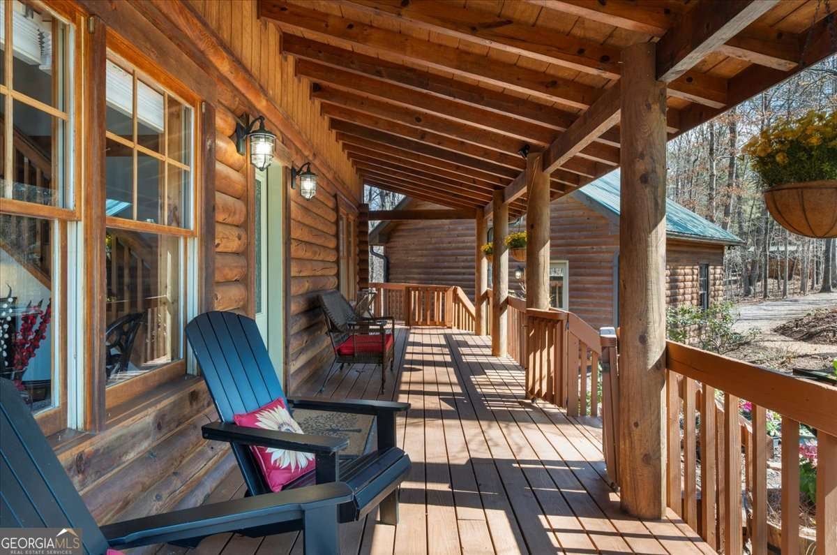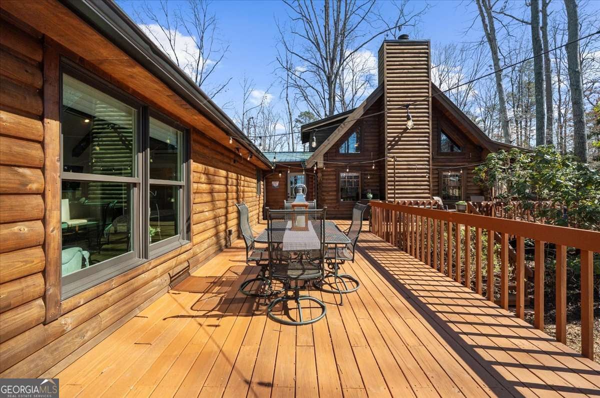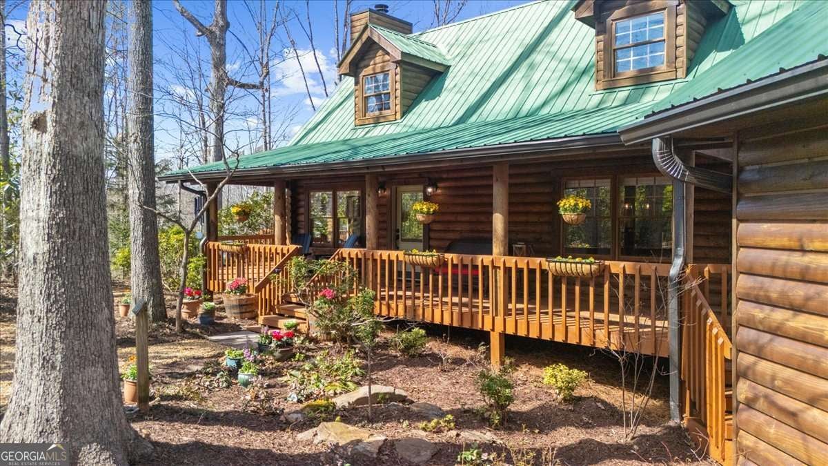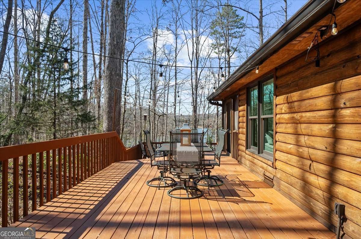 This home has the feel of both a mountain cabin and an elegant lake retreat. With a major addition in 2020, including the lake facing extraordinary primary suite, loft, gourmet kitchen, laundry room, garage, basement, and oversized screened porch, it is the culmination of several years of thoughtful planning and meticulous design to blend the beauty of the natural world that this home is surrounded by, into indoor living space. Every room was created to be aesthetically warm, welcoming, and spacious. Lighting, color, and choice of building material played a significant role. From custom cabinetry, outlet placement, closet designs, a one of a kind mudroom, ADA accessibility, and reverse osmosis water filters, functionality was key. At the heart of the home, the kitchen serves as a central gathering place, yet this very special property offers multiple private environments for creativity, work, and reflection. The expansive decks and porches have hosted countless gatherings, offering an effortless flow for entertaining. An additional 2330 square feet daylight basement with french doors facing the lake, plumbed, framed, with high end HVACs and tankless water heater, is ready for your imagination. The property is on a point, with 552 feet of lake frontage and bordered by CORPS land on two sides, one with a creek. The enchanting cove is peaceful, quiet, and relaxing. The dock is always in deep water and has electricity at the dock as well as an easy walk to the dock. Stand up paddling, kayaking, boating, swimming, treks, and relaxing with delightful and caring neighbors and family is what the sellers have experienced while in their home. Evenings are extraordinary. Moonlight pours through skylights, and the shifting seasons unfold through walls of windows. At sunset, the lake casts shimmering reflections across the interior of this gorgeous and unique home. The fenced garden has irrigation and the grounds have been transformed into a certified native habitat sanctuary, recognized by Birds Georgia and the National Wildlife Federation, making for minimal maintenance and maximum enjoyment. Although you are located 10 minutes from a new Publix, and have easy access to Dawsonville and 400, Gainesville and I 985, Dahlonega and the North Georgia mountains, you will come home and feel like you are a million miles away from it all. Please treat yourself and take a tour of one of Lake Lanier's most special homes.