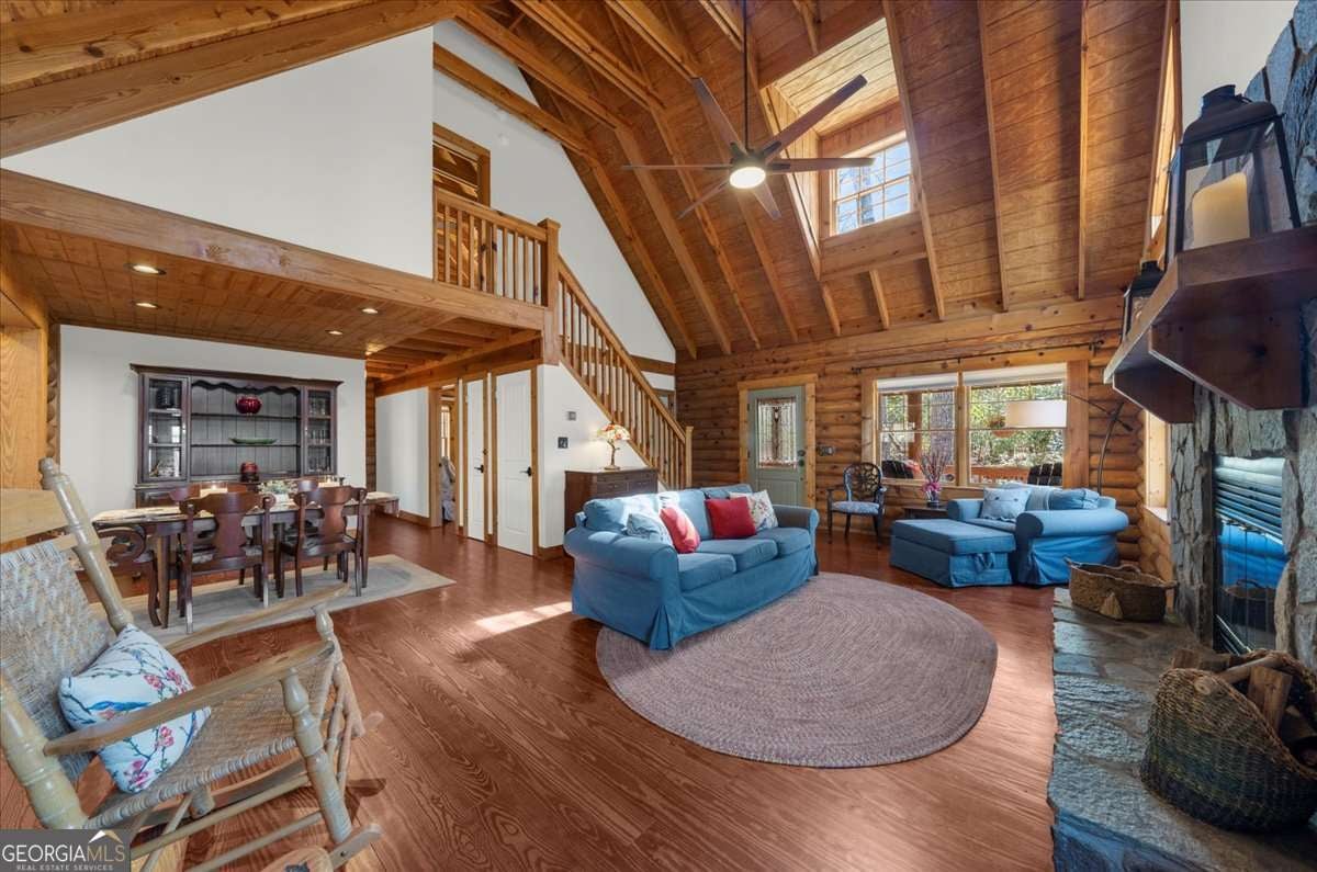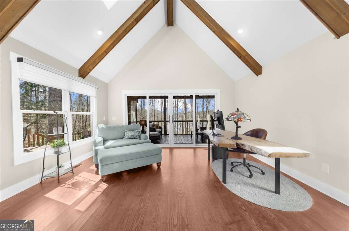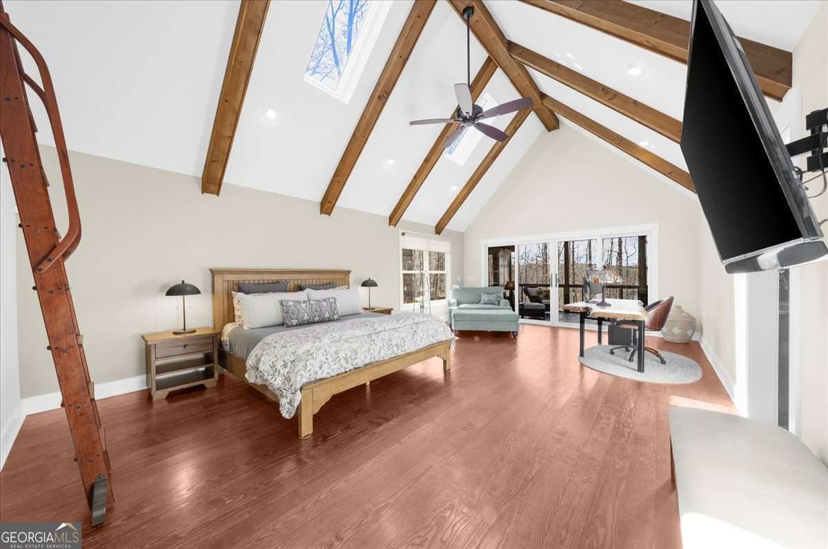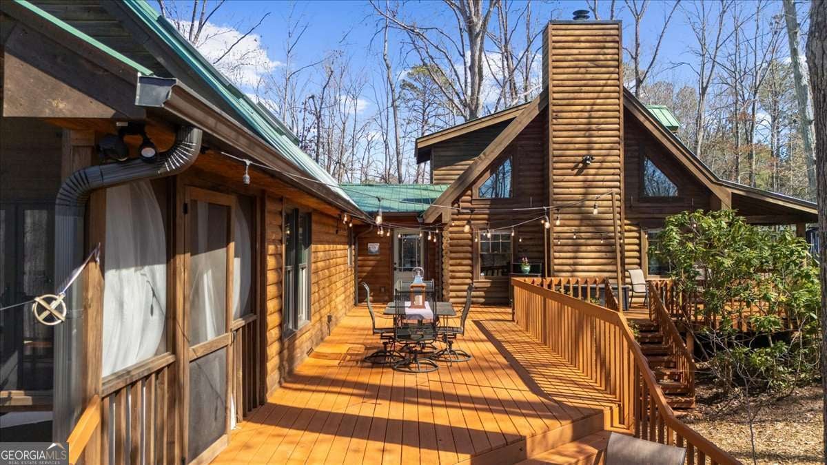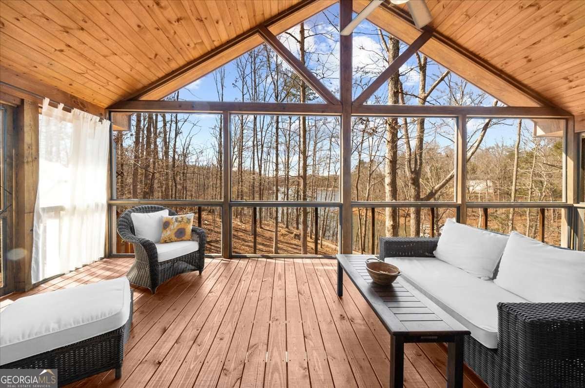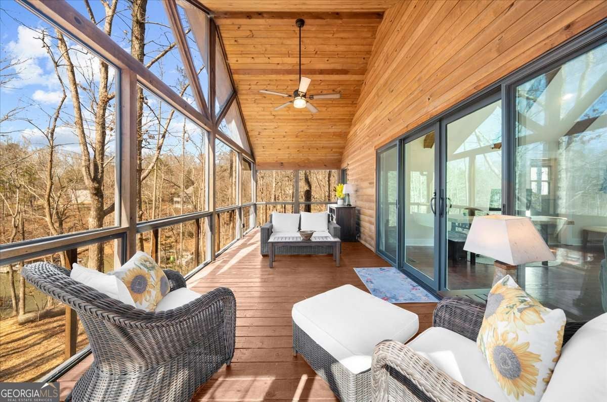 This home has the feel of both a mountain cabin and an elegant lake retreat. With a major addition in 2020, including the lake facing extraordinary primary suite, loft, gourmet kitchen, laundry room, garage, basement, and oversized screened porch, it is the culmination of several years of thoughtful planning and meticulous design to blend the beauty of the natural world that this home is surrounded by, into indoor living space. Every room was created to be aesthetically warm, welcoming, and spacious. Lighting, color, and choice of building material played a significant role. From custom cabinetry, outlet placement, closet designs, a one of a kind mudroom, ADA accessibility, and reverse osmosis water filters, functionality was key. At the heart of the home, the kitchen serves as a central gathering place, yet this very special property offers multiple private environments for creativity, work, and reflection. The expansive decks and porches have hosted countless gatherings, offering an effortless flow for entertaining. An additional 2330 square feet daylight basement with french doors facing the lake, plumbed, framed, with high end HVACs and tankless water heater, is ready for your imagination. The property is on a point, with 552 feet of lake frontage and bordered by CORPS land on two sides, one with a creek. The enchanting cove is peaceful, quiet, and relaxing. The dock is always in deep water and has electricity at the dock as well as an easy walk to the dock. Stand up paddling, kayaking, boating, swimming, treks, and relaxing with delightful and caring neighbors and family is what the sellers have experienced while in their home. Evenings are extraordinary. Moonlight pours through skylights, and the shifting seasons unfold through walls of windows. At sunset, the lake casts shimmering reflections across the interior of this gorgeous and unique home. The fenced garden has irrigation and the grounds have been transformed into a certified native habitat sanctuary, recognized by Birds Georgia and the National Wildlife Federation, making for minimal maintenance and maximum enjoyment. Although you are located 10 minutes from a new Publix, and have easy access to Dawsonville and 400, Gainesville and I 985, Dahlonega and the North Georgia mountains, you will come home and feel like you are a million miles away from it all. Please treat yourself and take a tour of one of Lake Lanier's most special homes.