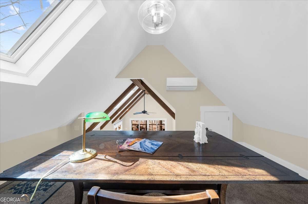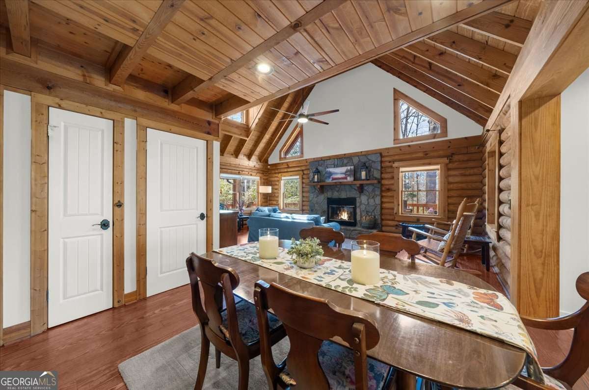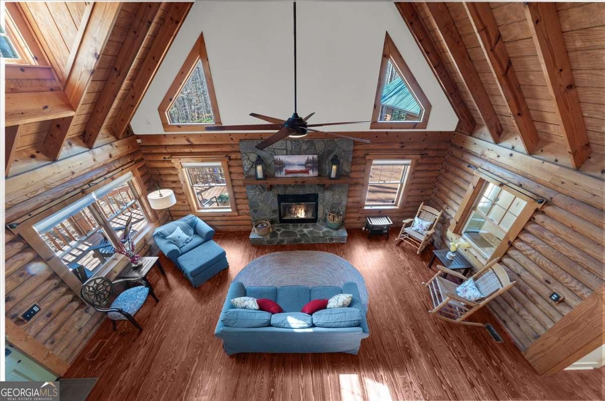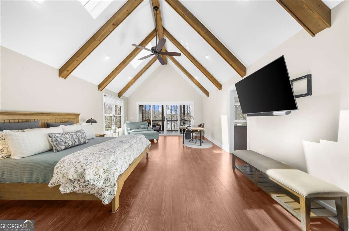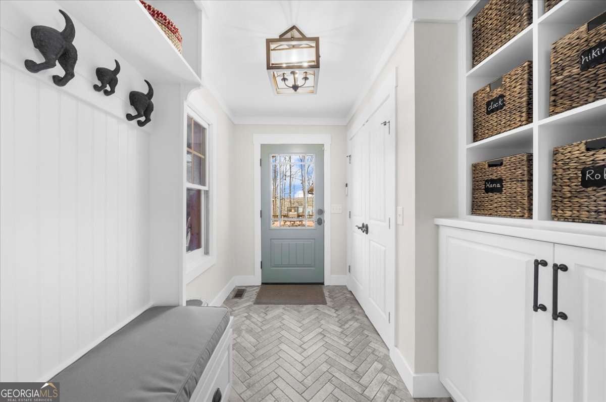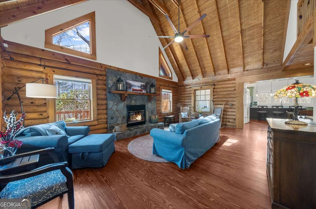 This home has the feel of both a mountain cabin and an elegant lake retreat. With a major addition in 2020, including the lake facing extraordinary primary suite, loft, gourmet kitchen, laundry room, garage, basement, and oversized screened porch, it is the culmination of several years of thoughtful planning and meticulous design to blend the beauty of the natural world that this home is surrounded by, into indoor living space. Every room was created to be aesthetically warm, welcoming, and spacious. Lighting, color, and choice of building material played a significant role. From custom cabinetry, outlet placement, closet designs, a one of a kind mudroom, ADA accessibility, and reverse osmosis water filters, functionality was key. At the heart of the home, the kitchen serves as a central gathering place, yet this very special property offers multiple private environments for creativity, work, and reflection. The expansive decks and porches have hosted countless gatherings, offering an effortless flow for entertaining. An additional 2330 square feet daylight basement with french doors facing the lake, plumbed, framed, with high end HVACs and tankless water heater, is ready for your imagination. The property is on a point, with 552 feet of lake frontage and bordered by CORPS land on two sides, one with a creek. The enchanting cove is peaceful, quiet, and relaxing. The dock is always in deep water and has electricity at the dock as well as an easy walk to the dock. Stand up paddling, kayaking, boating, swimming, treks, and relaxing with delightful and caring neighbors and family is what the sellers have experienced while in their home. Evenings are extraordinary. Moonlight pours through skylights, and the shifting seasons unfold through walls of windows. At sunset, the lake casts shimmering reflections across the interior of this gorgeous and unique home. The fenced garden has irrigation and the grounds have been transformed into a certified native habitat sanctuary, recognized by Birds Georgia and the National Wildlife Federation, making for minimal maintenance and maximum enjoyment. Although you are located 10 minutes from a new Publix, and have easy access to Dawsonville and 400, Gainesville and I 985, Dahlonega and the North Georgia mountains, you will come home and feel like you are a million miles away from it all. Please treat yourself and take a tour of one of Lake Lanier's most special homes.