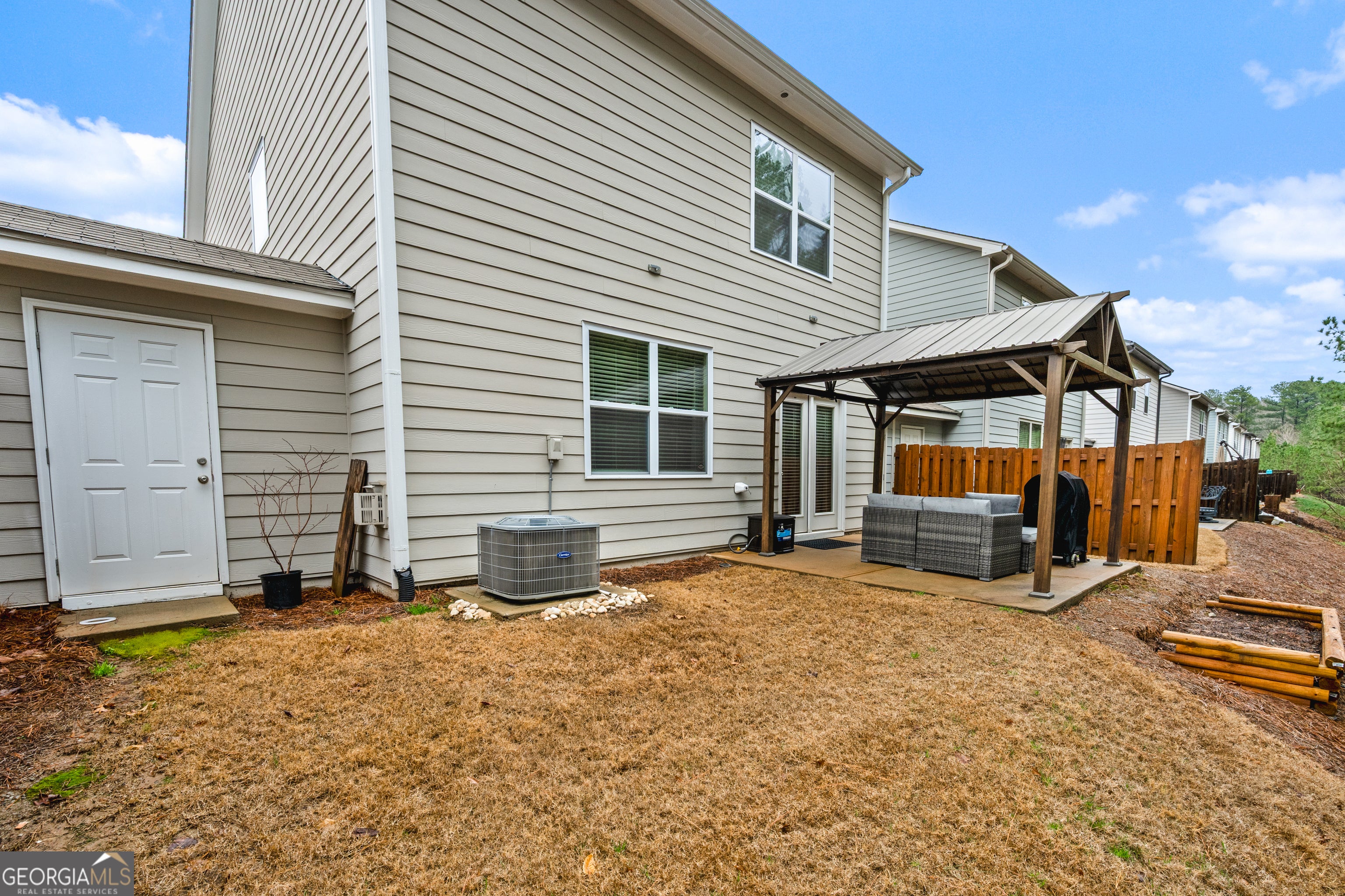 Welcome home to this beautifully maintained 3-bedroom, 2.5-bath residence offering nearly 2,000 square feet of thoughtfully designed living space in one of Acworth's most desirable communities. It's the ease of townhouse style maintenance with a single family residence lifestyle. The main level features an inviting open-concept layout perfect for both everyday living and entertaining. The kitchen is the heart of the home, complete with granite countertops, a large center island, generous pantry, and seamless sight lines into the dining area and fireside living room. Whether hosting friends or enjoying a quiet evening in, this space delivers comfort and connection. Upstairs, you'll find two well-sized secondary bedrooms and a full bath, along with a spacious primary suite designed for relaxation. The spa-inspired bath includes a soaking tub, separate shower, double vanity, and a walk-in closet that offers both function and style. Step outside to your private backyard retreat featuring a patio with pergola - ideal for morning coffee, weekend grilling, or winding down at the end of the day. A two-car garage adds convenience and additional storage. LAWN MAINTENANCE included in the HOA. Located just minutes from both Downtown Acworth and Downtown Woodstock, with easy access to I-75 and I-575, this home offers the perfect balance of community charm and commuter convenience.
