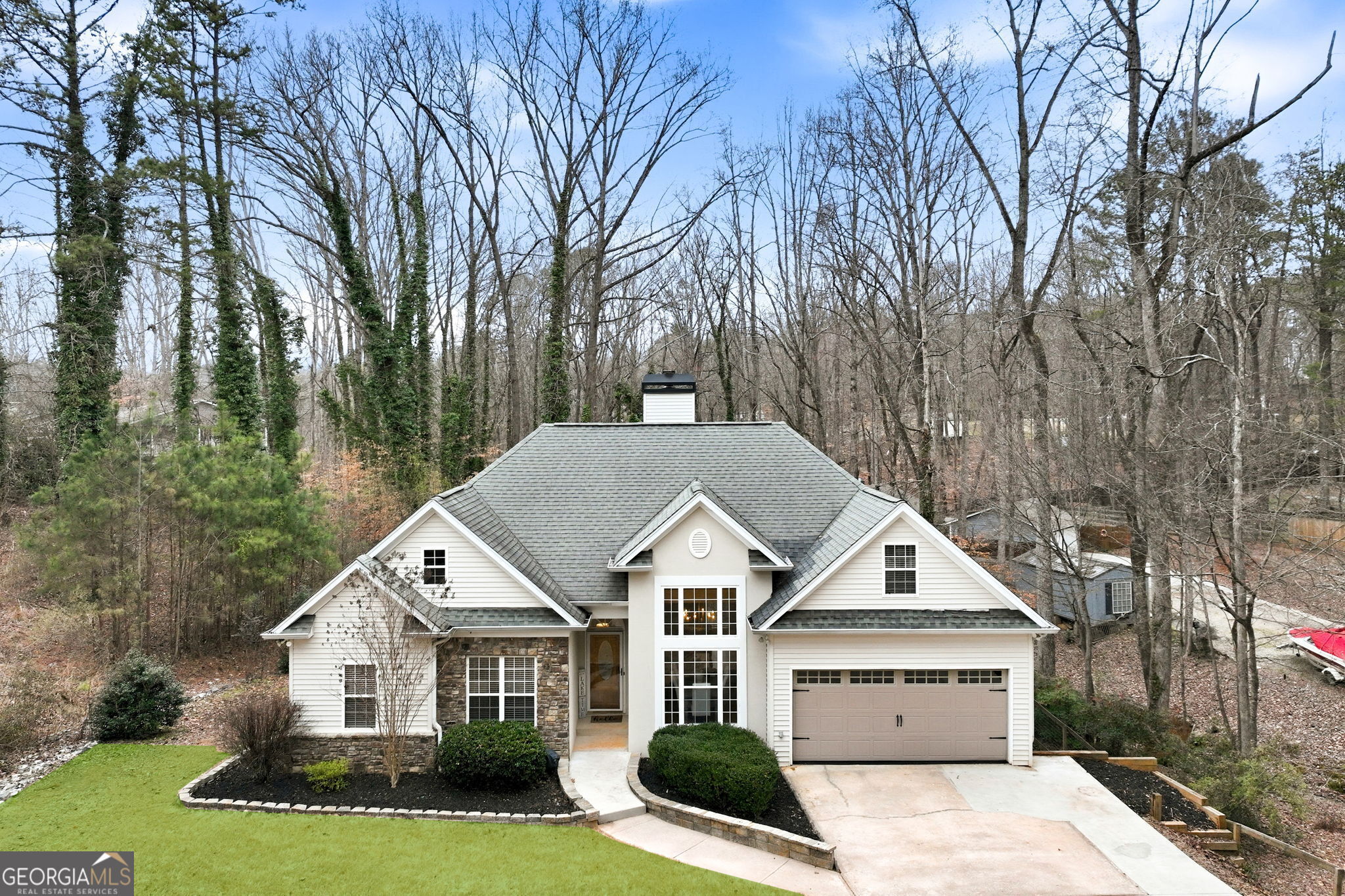 Sellers have strategically repositioned the price to reflect current market conditions and are prepared to close before summer. The property has a recently renovated dock, finished terrace level, and deep-water cove access, priced to move at $1,049,000. This beautifully maintained 4 bedroom, 4 bath residence features a covered slip in a 32 x 32 double-slip dock with party deck, ideally positioned in a quiet cove just off Two Mile Creek, offering the perfect blend of privacy, comfort, and effortless lake living. Designed for both everyday living and entertaining, the light-filled main level features a spacious family room with vaulted ceiling, cozy fireplace, and open flow to the dining area, creating an inviting and airy gathering space. The bright kitchen overlooks the private backyard and deck, offering the perfect setting for morning coffee or relaxed evenings with family and friends. Upstairs, a generous bonus room provides flexible space ideal for a media room, home office, or guest accommodations. The fully finished terrace level offers exceptional versatility for extended stays or multi-generational living, complete with a second kitchen featuring quartzite countertops and abundant cabinetry, a large den, exercise room or office, fourth bedroom, flex room, and two beautifully finished full baths, creating a private and comfortable retreat for guests. The dock is perfectly positioned in a protected deep-water cove with a gentle walk to the shoreline, making boating, swimming, and sunset evenings on Lake Lanier easy and enjoyable. Ideally located in the highly sought-after East Forsyth school district, this home is just minutes by boat or car to Port Royale Marina, Pelican Pete's, and Vanns Tavern Boat Ramp, placing dining, boating, and lake recreation within easy reach. A rare opportunity to own a deep-water Lake Lanier property with dock, privacy, and a finished terrace level, perfect for those seeking the ultimate lake lifestyle just moments from marinas, waterfront dining, and endless days on the water.