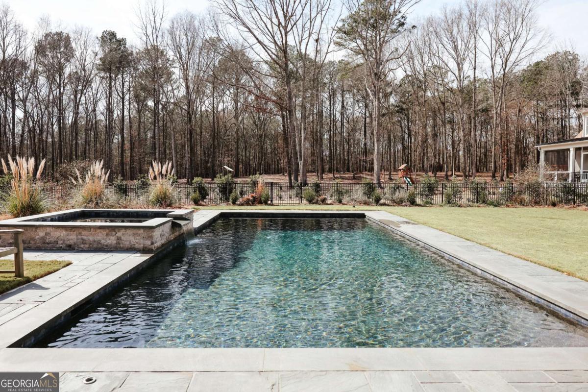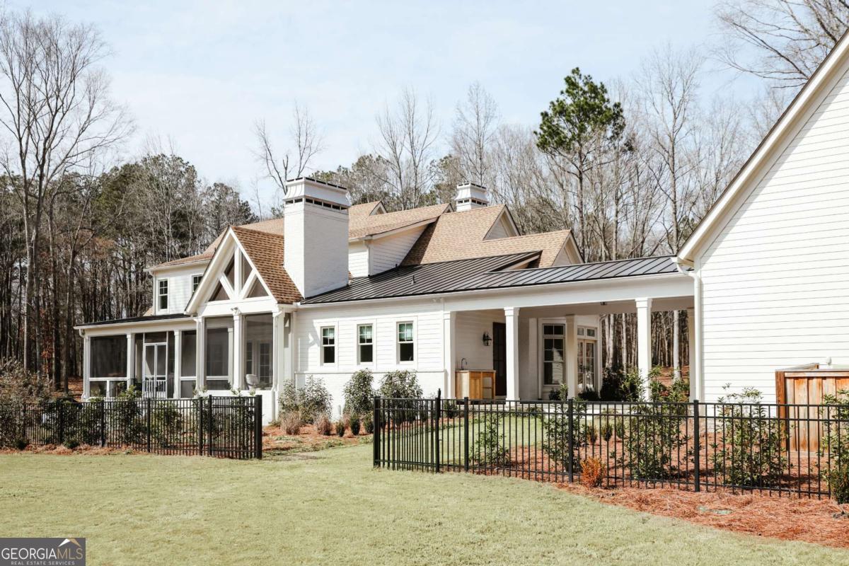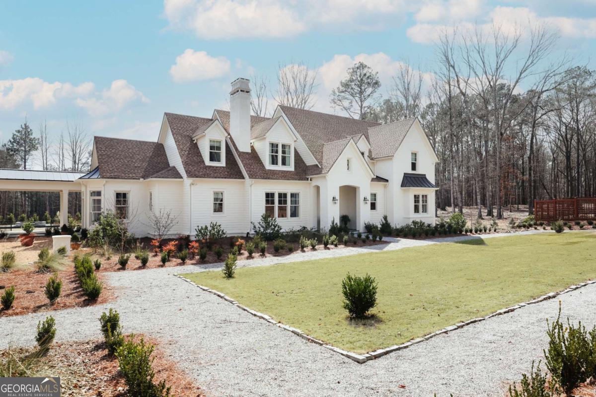 "An English country home in the heart of Oconee County." Set on 22 wooded acres, this gabled manor home draws inspiration from the elegance of a British country house-where craftsmanship, natural beauty, and refined indoor-outdoor living come together. Located ten minutes from Watkinsville and Wire Park, and twenty from Five Points, the property offers rare privacy with easy access to town. Completed two years ago, the custom-built residence reflects extraordinary attention to detail. The foyer and family room were inspired by a boutique London hotel. Hardwood floors, exposed beams, arched doorways, and millwork create warmth and architectural depth, while travertine floors in the entry and kitchen anchor the home's central gathering spaces. The home's six bathrooms feature bespoke vanities. The main level includes a study with fireplace, a gracious family room, and a hidden children's playroom tucked beneath stairs. The kitchen is beautiful and functional, featuring dark walnut counters, a large island, walk-in pantry, and office nook. The primary suite is located on the main level and includes a lavish shower and bath. Upstairs are three spacious bedrooms, along with a bonus room suitable for a gym or playroom and an additional office with a wet bar. A three-car garage is connected by a breezeway and includes conditioned space above for hobbies, storage, or exercise. The landscape is as thoughtfully designed as the home. A screened porch with fireplace provides views across the property and down the "Long Walk" to a meadow. Bluestone patios lead to resort-style outdoor living, featuring a pool, spa, sauna, and outdoor shower. Trails wind through the woods, an eight-foot lattice-fenced "Kitchen Garden," and the "Upper Meadow" is suitable as a playground or soccer field. This rare luxury home near Athens, Georgia, offers the best of both worlds: privacy, acreage, and refined country living in Oconee County, minutes from Watkinsville and Athens.