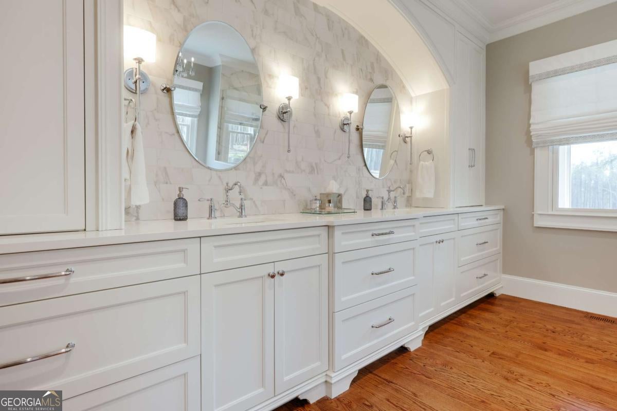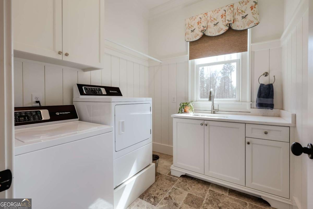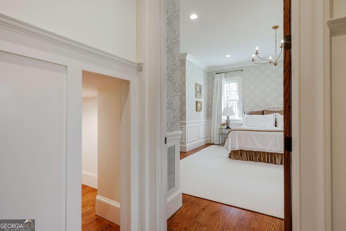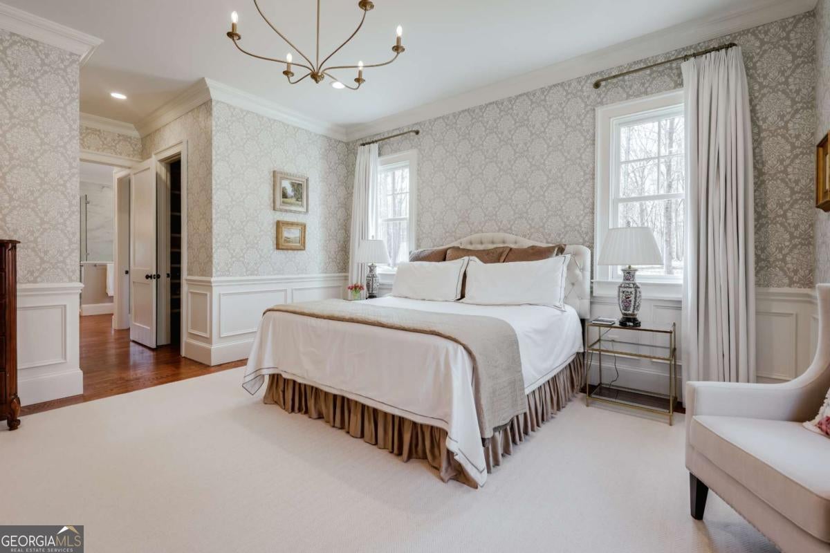 "An English country home in the heart of Oconee County." Set on 22 wooded acres, this gabled manor home draws inspiration from the elegance of a British country house-where craftsmanship, natural beauty, and refined indoor-outdoor living come together. Located ten minutes from Watkinsville and Wire Park, and twenty from Five Points, the property offers rare privacy with easy access to town. Completed two years ago, the custom-built residence reflects extraordinary attention to detail. The foyer and family room were inspired by a boutique London hotel. Hardwood floors, exposed beams, arched doorways, and millwork create warmth and architectural depth, while travertine floors in the entry and kitchen anchor the home's central gathering spaces. The home's six bathrooms feature bespoke vanities. The main level includes a study with fireplace, a gracious family room, and a hidden children's playroom tucked beneath stairs. The kitchen is beautiful and functional, featuring dark walnut counters, a large island, walk-in pantry, and office nook. The primary suite is located on the main level and includes a lavish shower and bath. Upstairs are three spacious bedrooms, along with a bonus room suitable for a gym or playroom and an additional office with a wet bar. A three-car garage is connected by a breezeway and includes conditioned space above for hobbies, storage, or exercise. The landscape is as thoughtfully designed as the home. A screened porch with fireplace provides views across the property and down the "Long Walk" to a meadow. Bluestone patios lead to resort-style outdoor living, featuring a pool, spa, sauna, and outdoor shower. Trails wind through the woods, an eight-foot lattice-fenced "Kitchen Garden," and the "Upper Meadow" is suitable as a playground or soccer field. This rare luxury home near Athens, Georgia, offers the best of both worlds: privacy, acreage, and refined country living in Oconee County, minutes from Watkinsville and Athens.