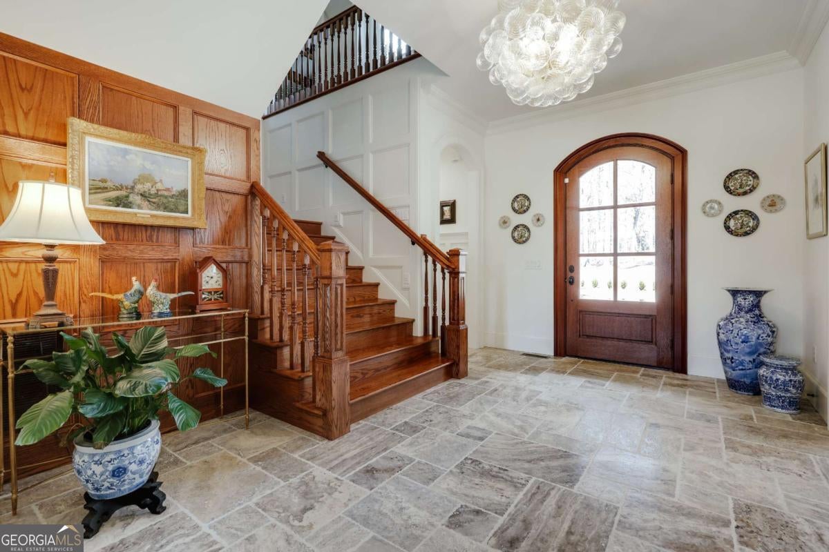 - Interior FeaturesBeamed Ceilings, Bookcases, Double Vanity, High Ceilings, Master On Main Level, Separate Shower, Soaking Tub, Split Foyer, Tile Bath, Two Story Foyer, Vaulted Ceiling(s), Wet Bar