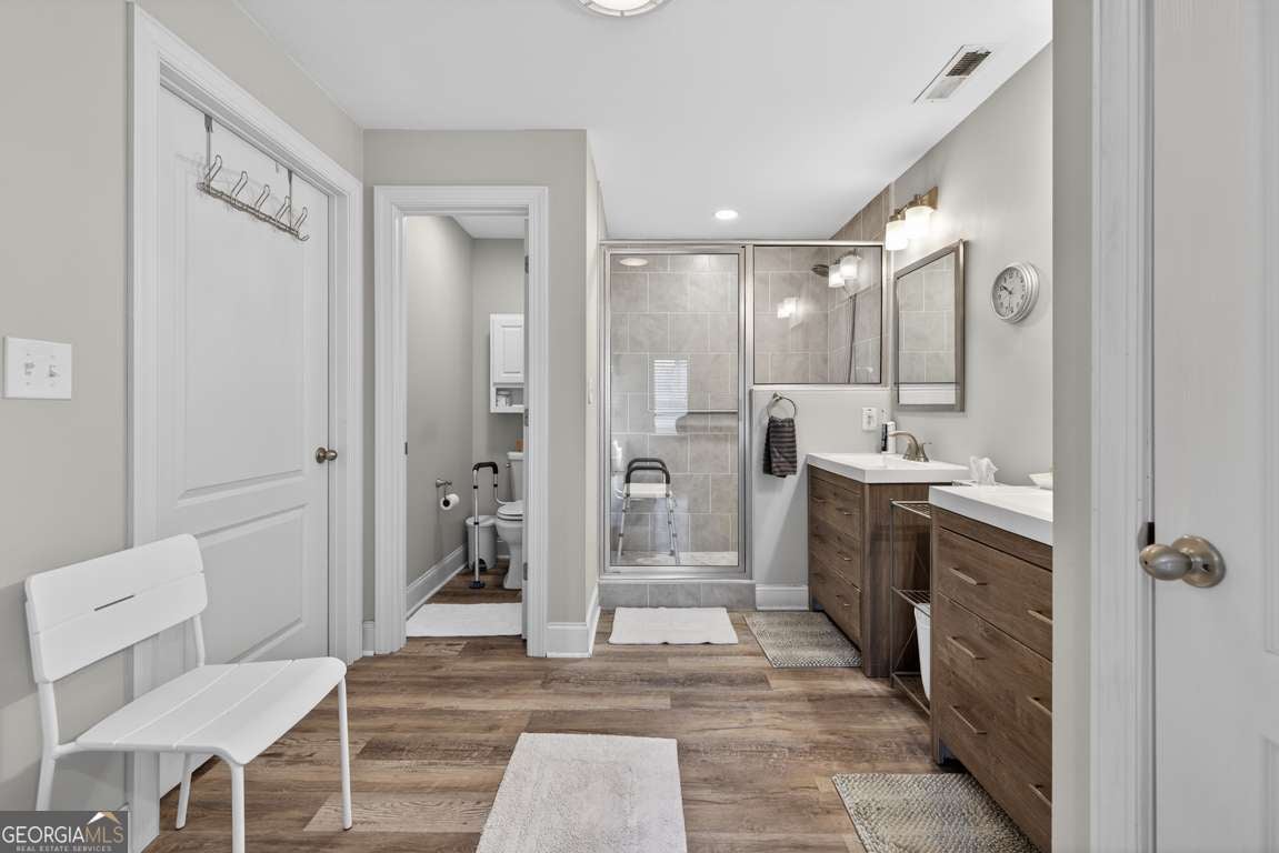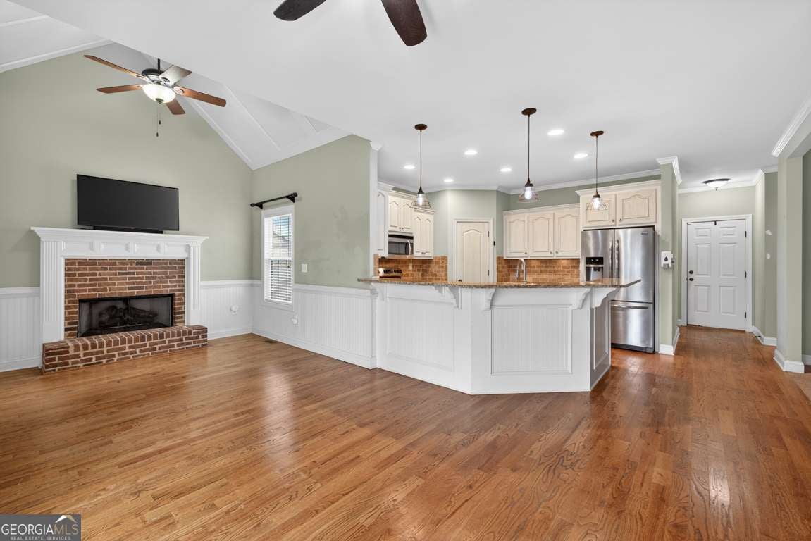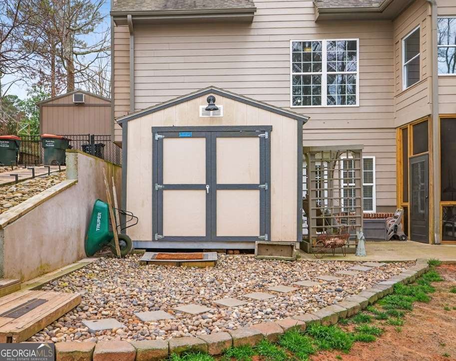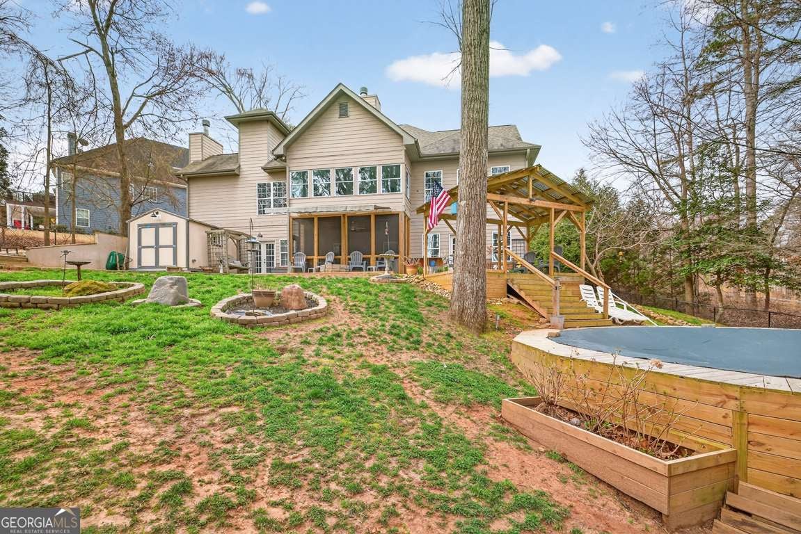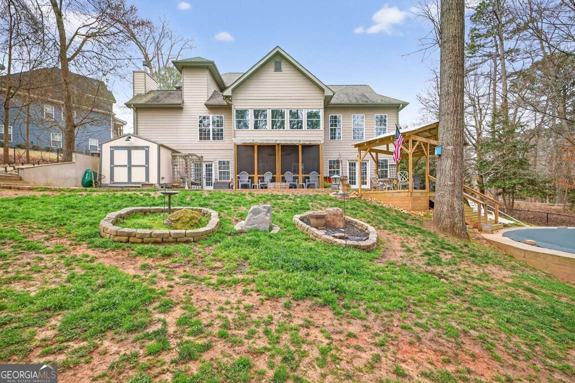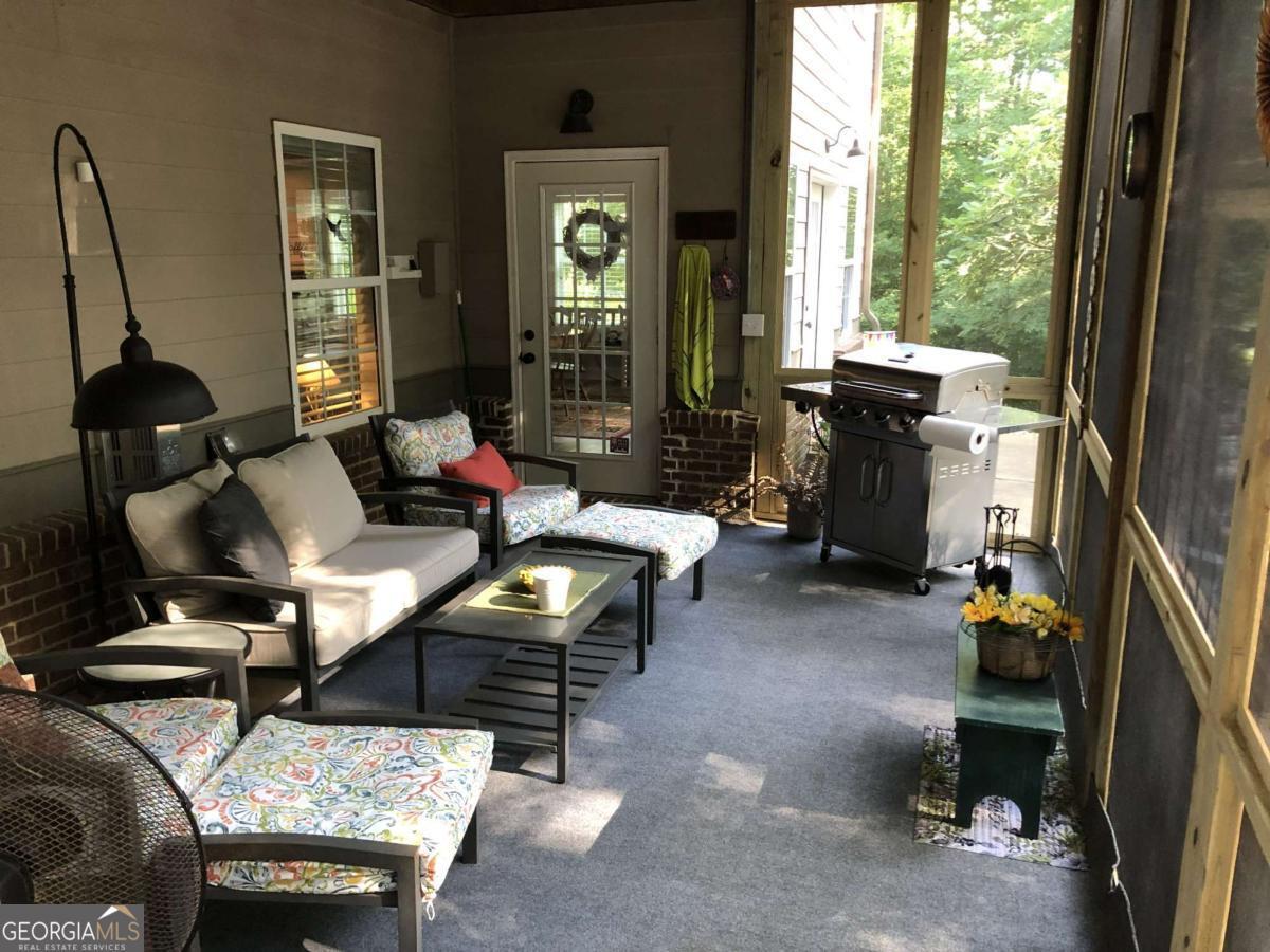 Discover a home that feels like it was made for the way you live -where classic charm meets everyday comfort. This beautiful brick front property sits on a lush, landscaped lot that backs to peaceful green space, giving you extra privacy and room to breathe. A wide, covered front porch welcomes friends and family, setting the tone for the warm, inviting spaces inside. Step into a soaring two-story family room filled with natural light and centered around a gorgeous fireplace. The open layout flows effortlessly into the heart of the home-a bright, modern kitchen with white cabinetry, granite counters, and a spacious keeping room where you can curl up by the fire or chat over coffee. The sunroom is the perfect spot to enjoy year-round views of your serene backyard. The main-level primary suite makes life easy with everything you need close at hand, while upstairs you'll find two comfortable bedrooms and a large bonus room-ideal for an additional bedroom, home office, or play space. Downstairs, the fully finished terrace level offers endless possibilities: a complete in-law suite with its own kitchen, living area, 1.5 baths, second laundry, and fireplace-perfect for guests or multigenerational living. Step outside and it's all about relaxation and connection. Take a dip in the 24-foot pool, unwind under the gazebo, or host backyard gatherings that stretch late into the evening. Two large outbuildings with electricity and air mean there's room for hobbies, workshops, or extra storage. With updates including a 7-year-old roof and a 1.5-year-old water heater, you can move right in and enjoy. This home invites you to slow down, entertain often, and make the most of every season-a place where comfort, privacy, and timeless style come together beautifully.